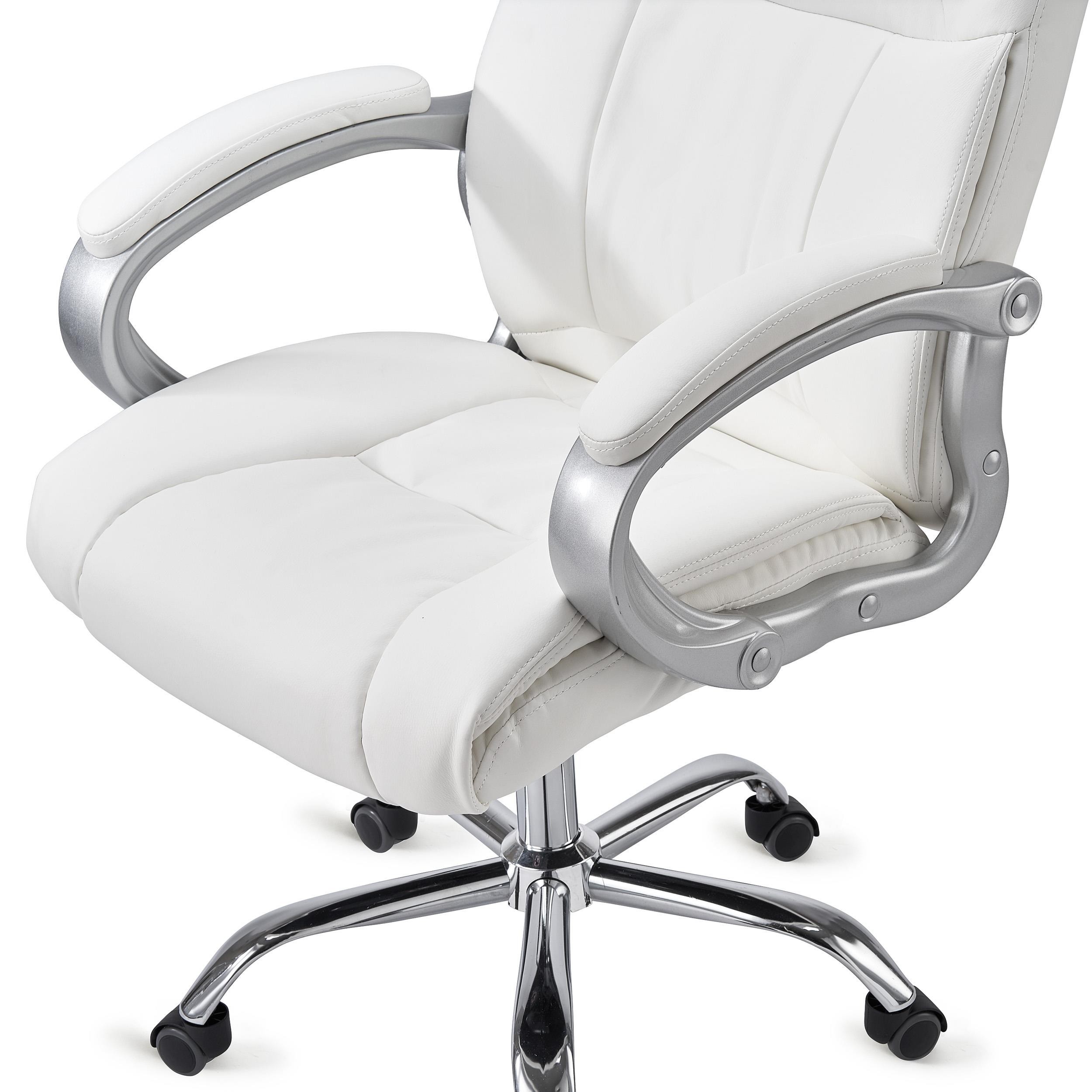 Confortable sillón de oficina resistente hasta 150kg. Grueso acolchado tapizado en piel. Robusta base metálica.