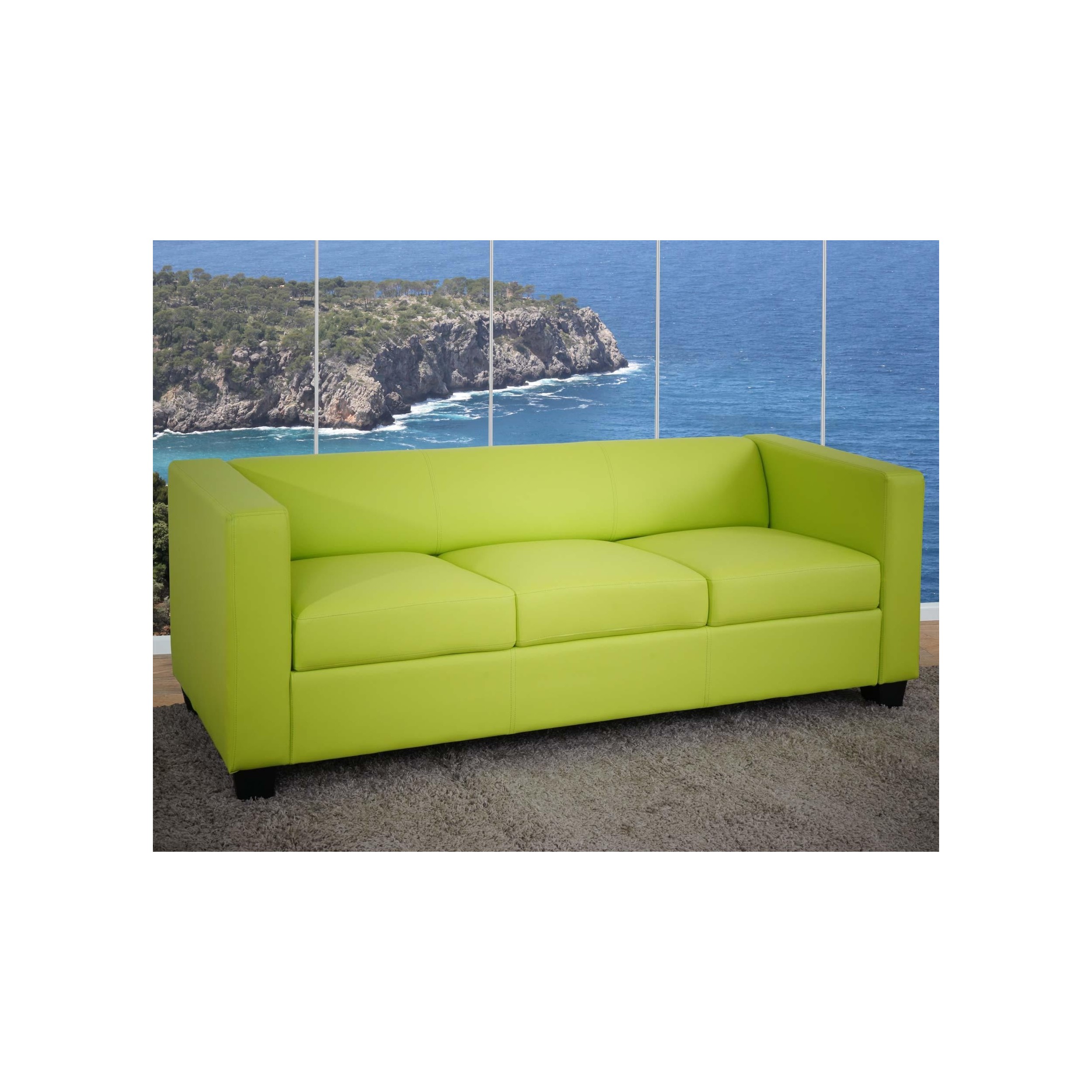 El sofá está tapizado en piel sintética de gran calidad, muy resistente y de agradable tacto y que se limpia muy fácil. Además, su grueso acolchado lo hace muy confortable, ideal para pasar muchas horas sentado cómodamente en él.