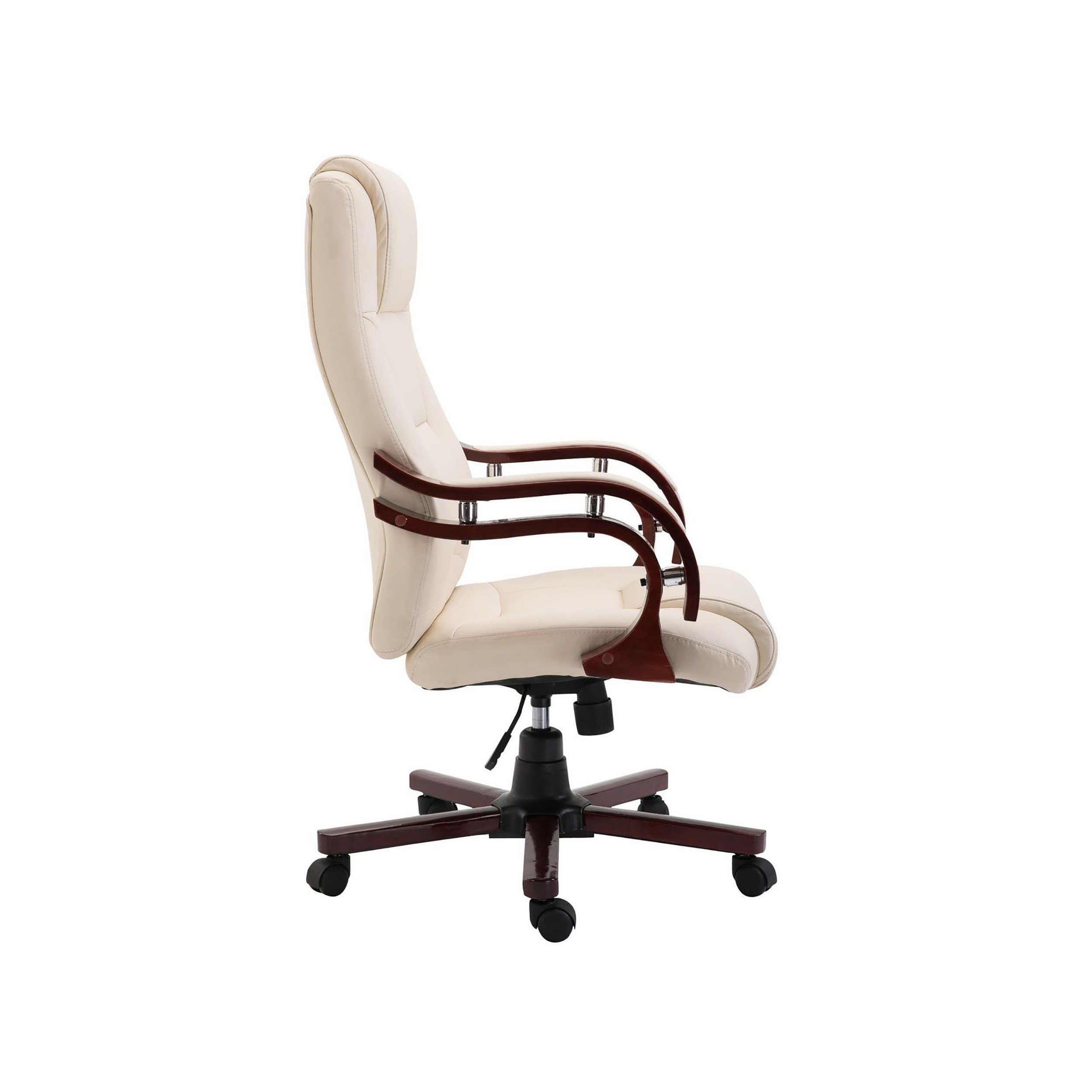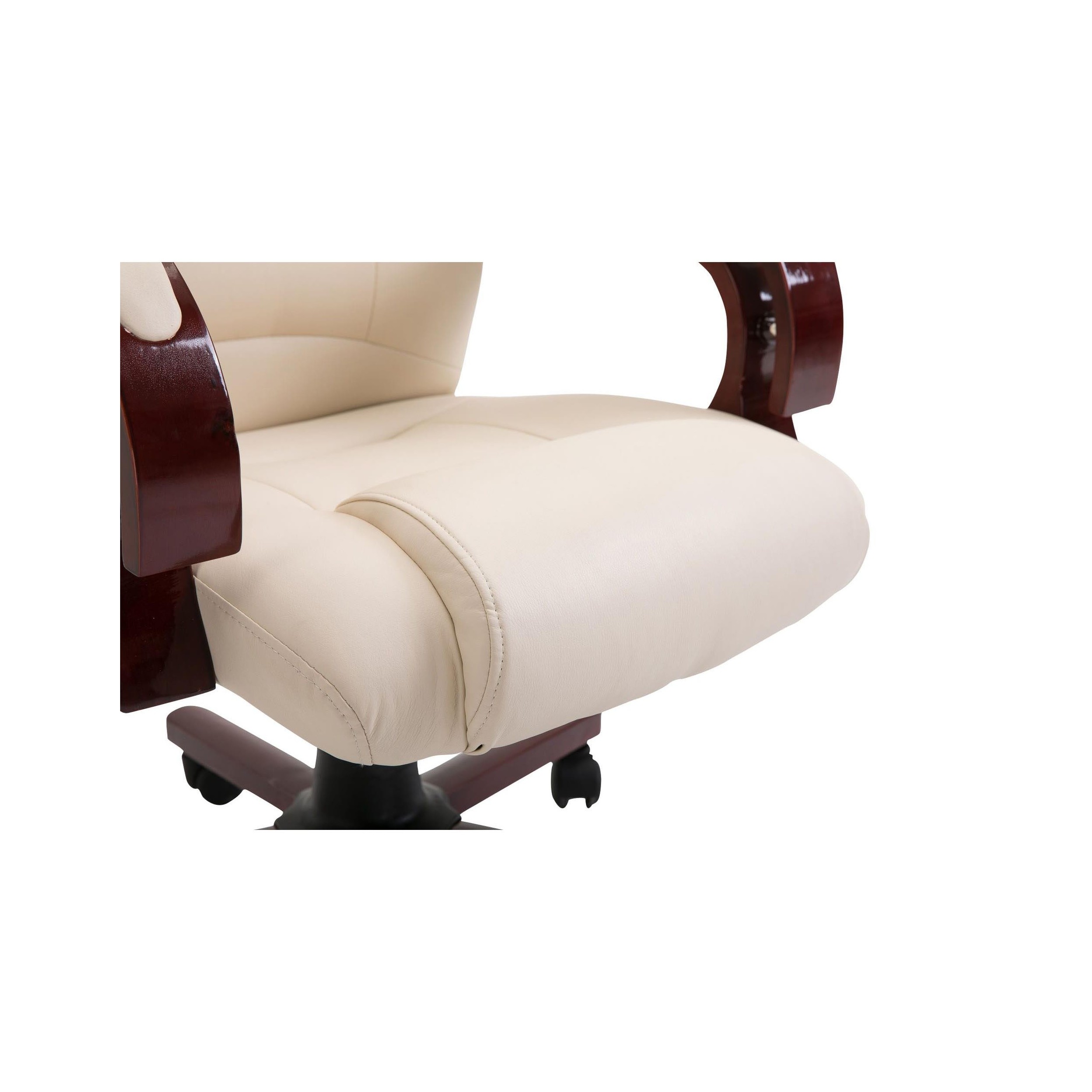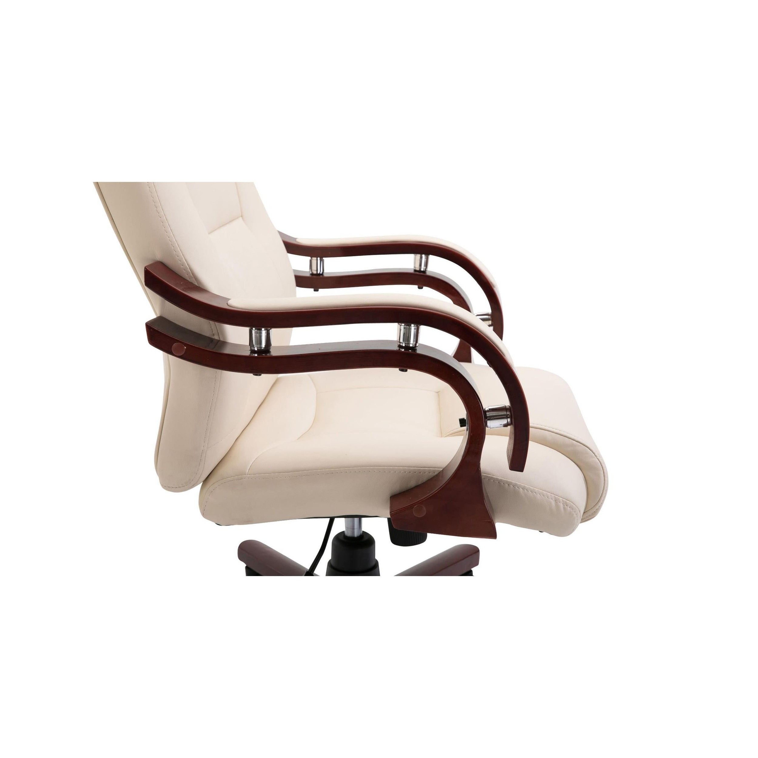 La base y reposabrazos están fabricados en madera maciza. Es sin duda una de las características más destacadas de este imponente modelo, ya que no es habitual encontrar este tipo de material en sillones de oficina. Además, los brazos tienen inserciones acolchadas en piel, algo muy de agradecer.