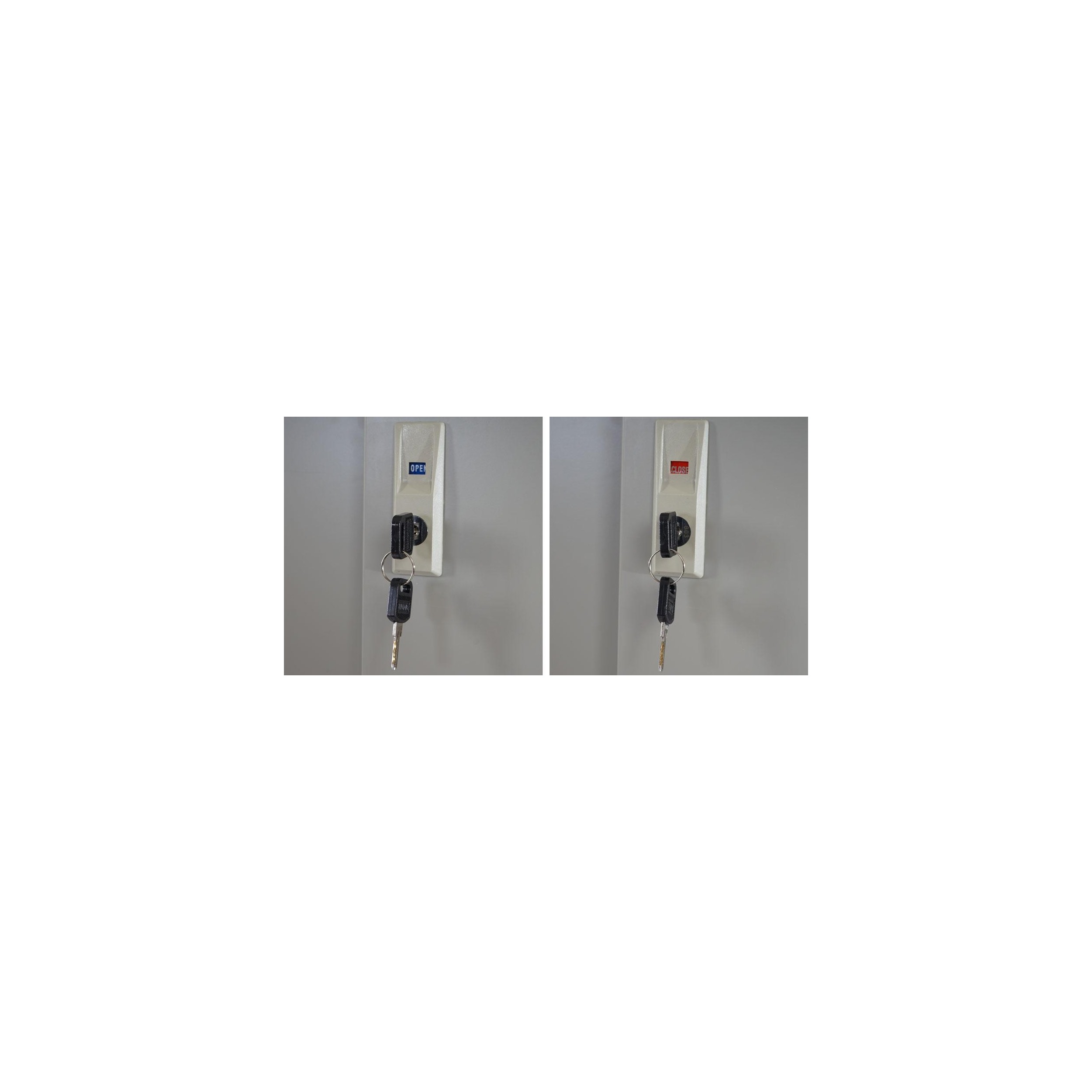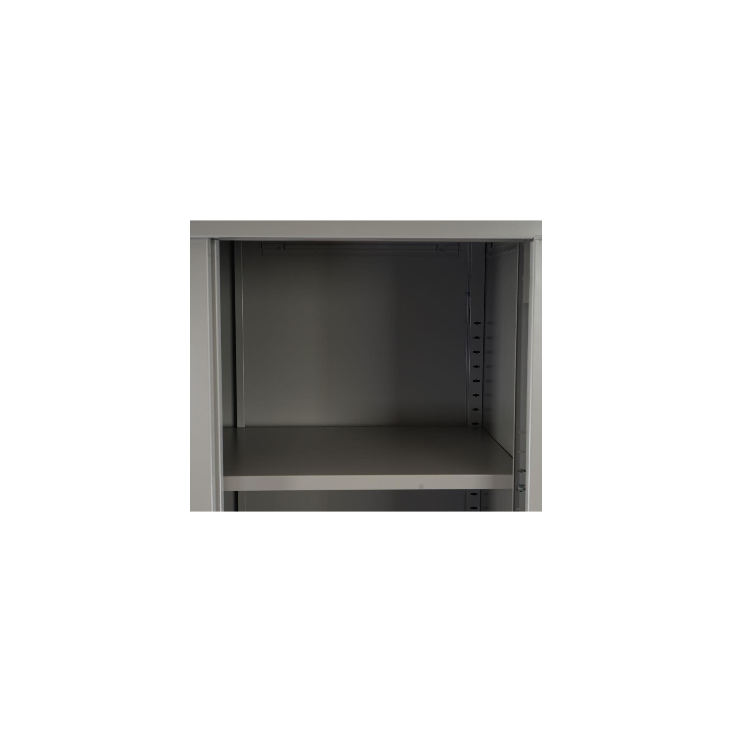 Las puertas, correderas y pintadas en color gris, cuentan con cerradura y dos juegos de llaves. De esta manera podrás guardar documentos, carpetas, archivadores, consumibles, o el contenido que deposites en el armario con total seguridad.