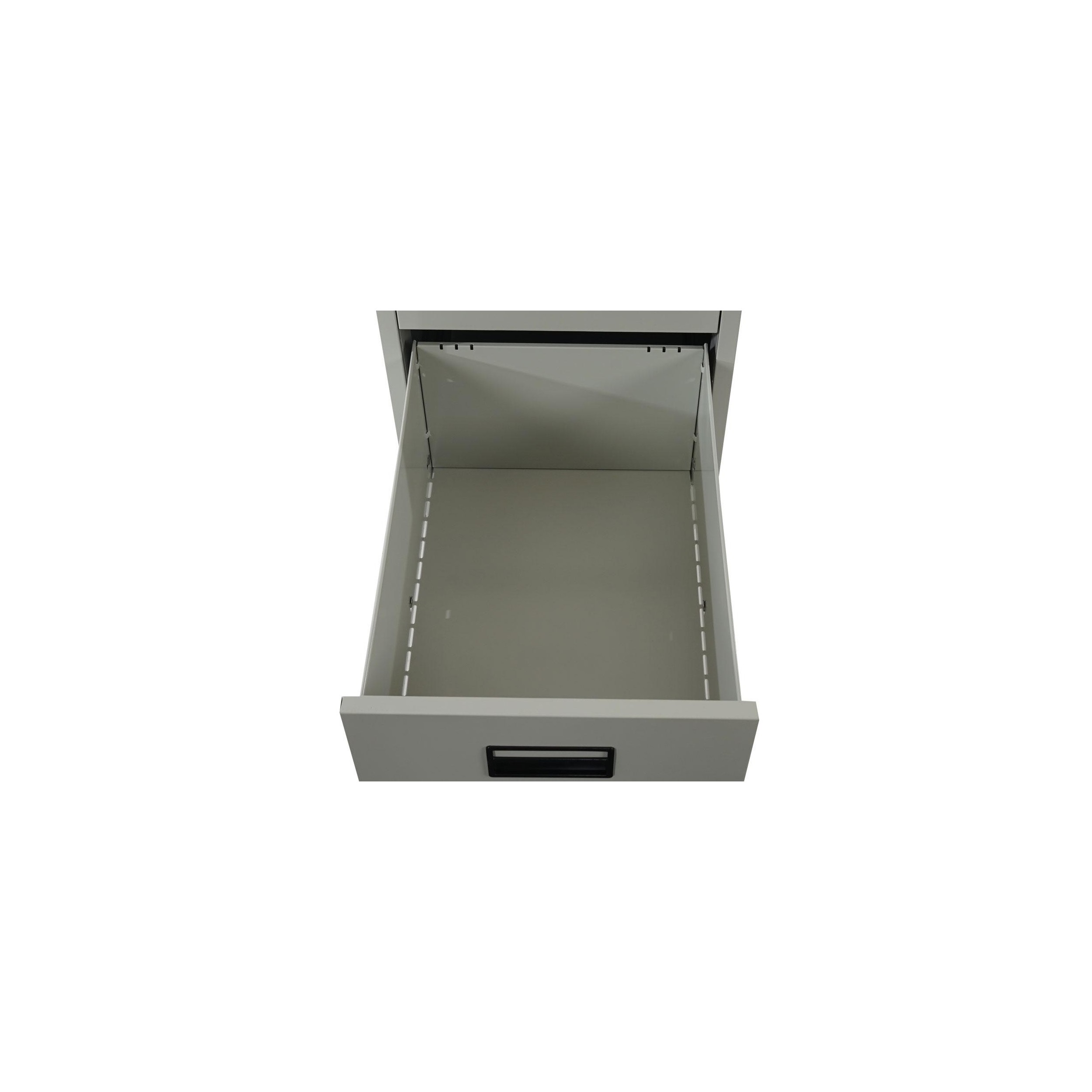 El archivador cuenta con dos espaciosos cajones cerradura. Tienen guías telescópicas y están adaptados para tamaño A4, por lo que podrás guardar archivadores, carpetas y documentos cómodamente.