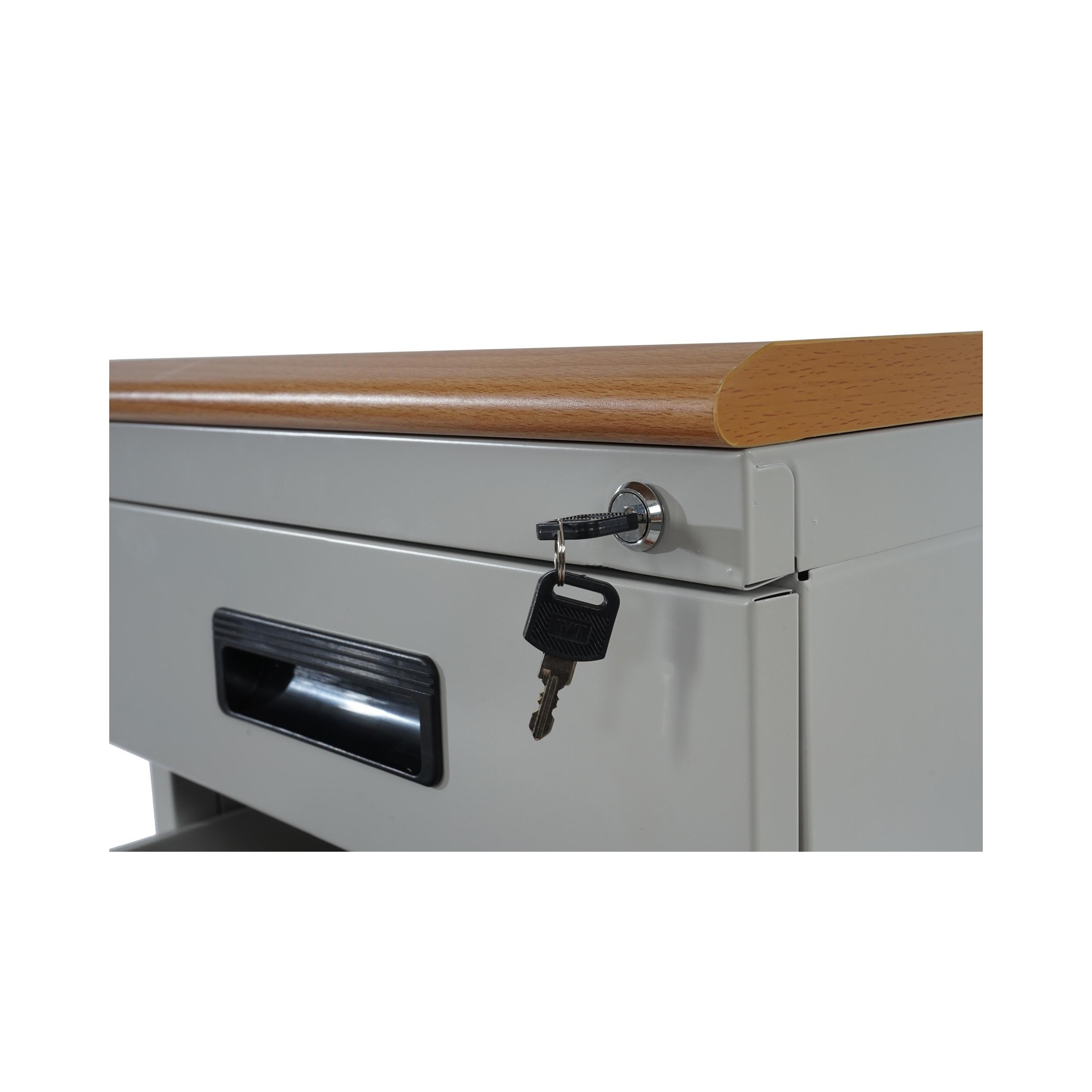 Su encimera acabada en madera aporta un toque de estilo único muy especial. El resto de la estructura está construida en chaa de acero muy resistente, por lo que este archivador durará años en perfecto estado.