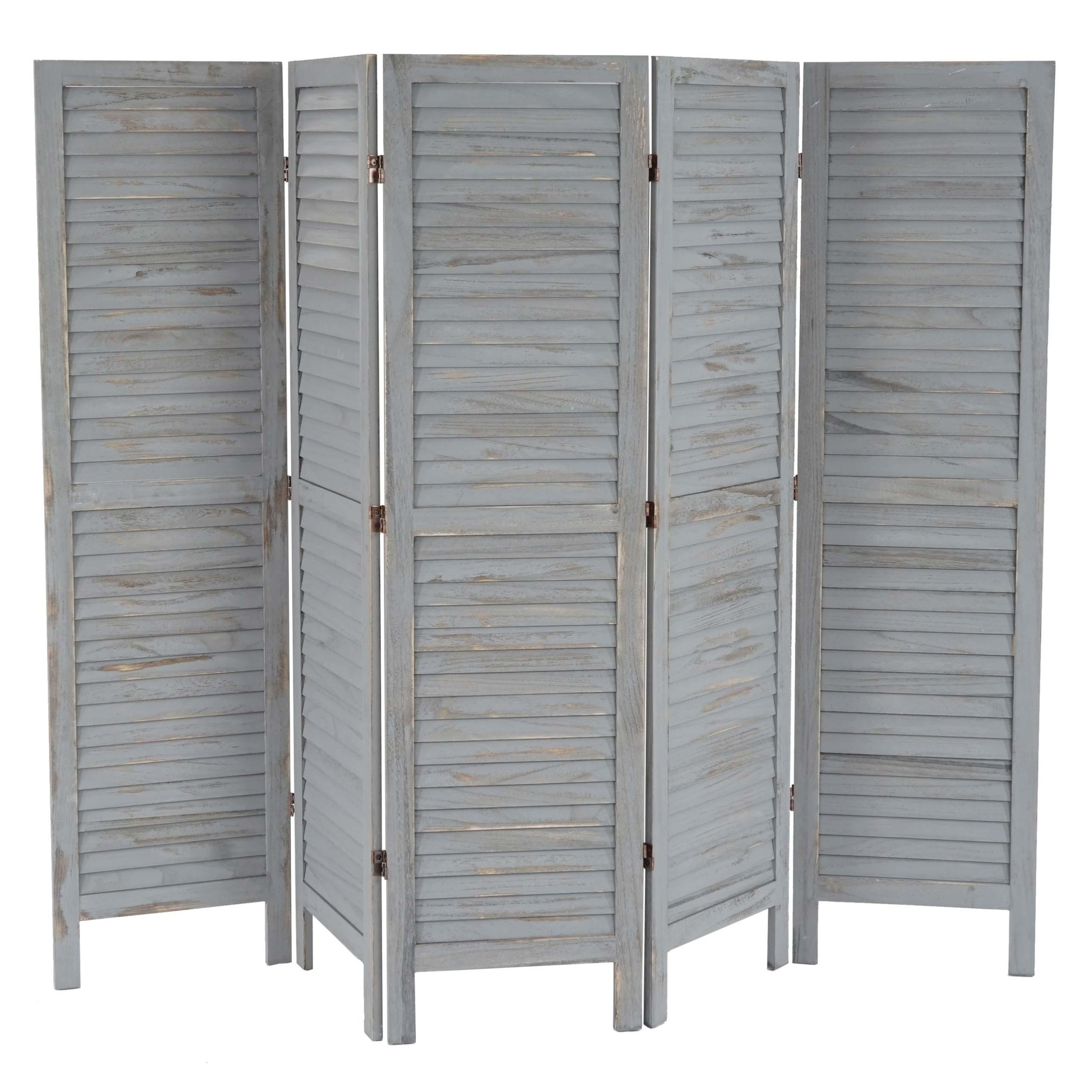 Biombo de Madera LEO, Diseño Vintage Muy Bonito, 170x228x2cm, Color Gris