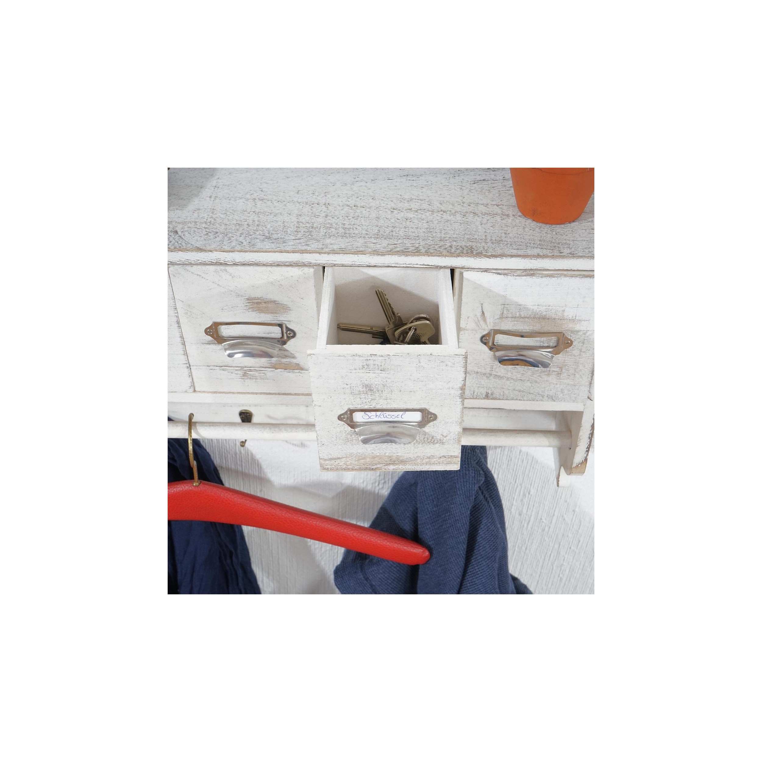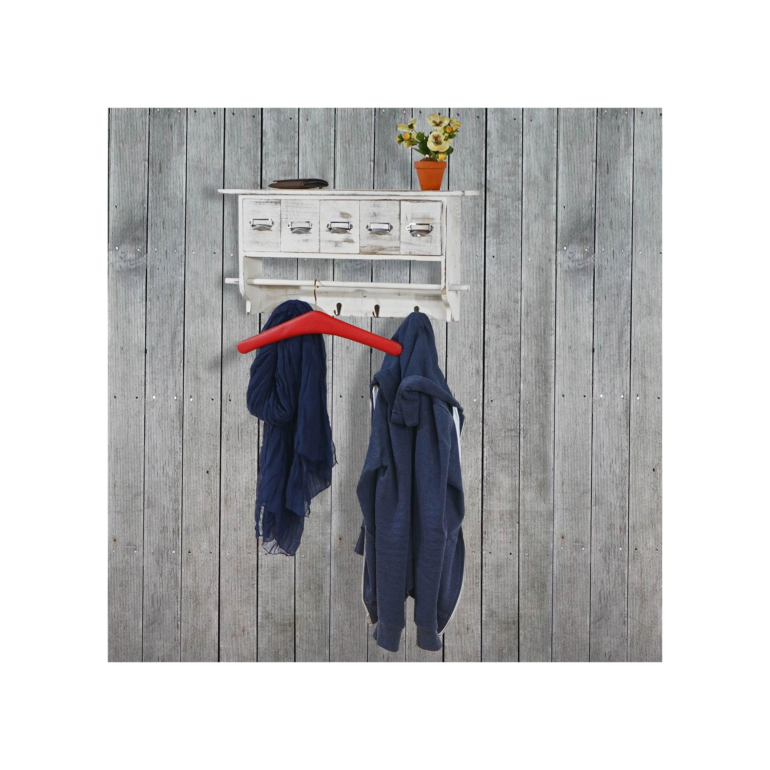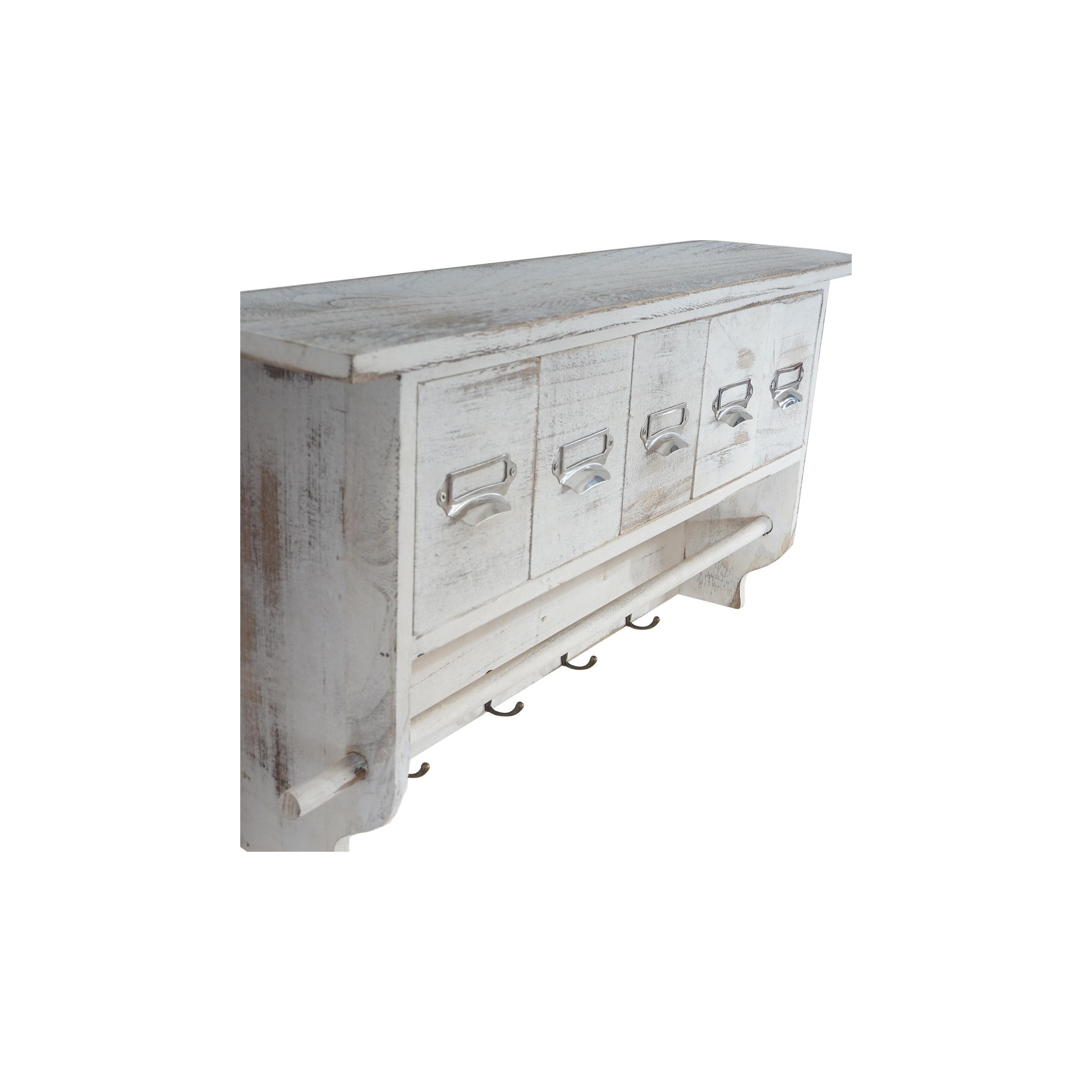 Perchero RITA, En Madera, 5 Cajones, Precioso Diseño Vintage, Color Blanco