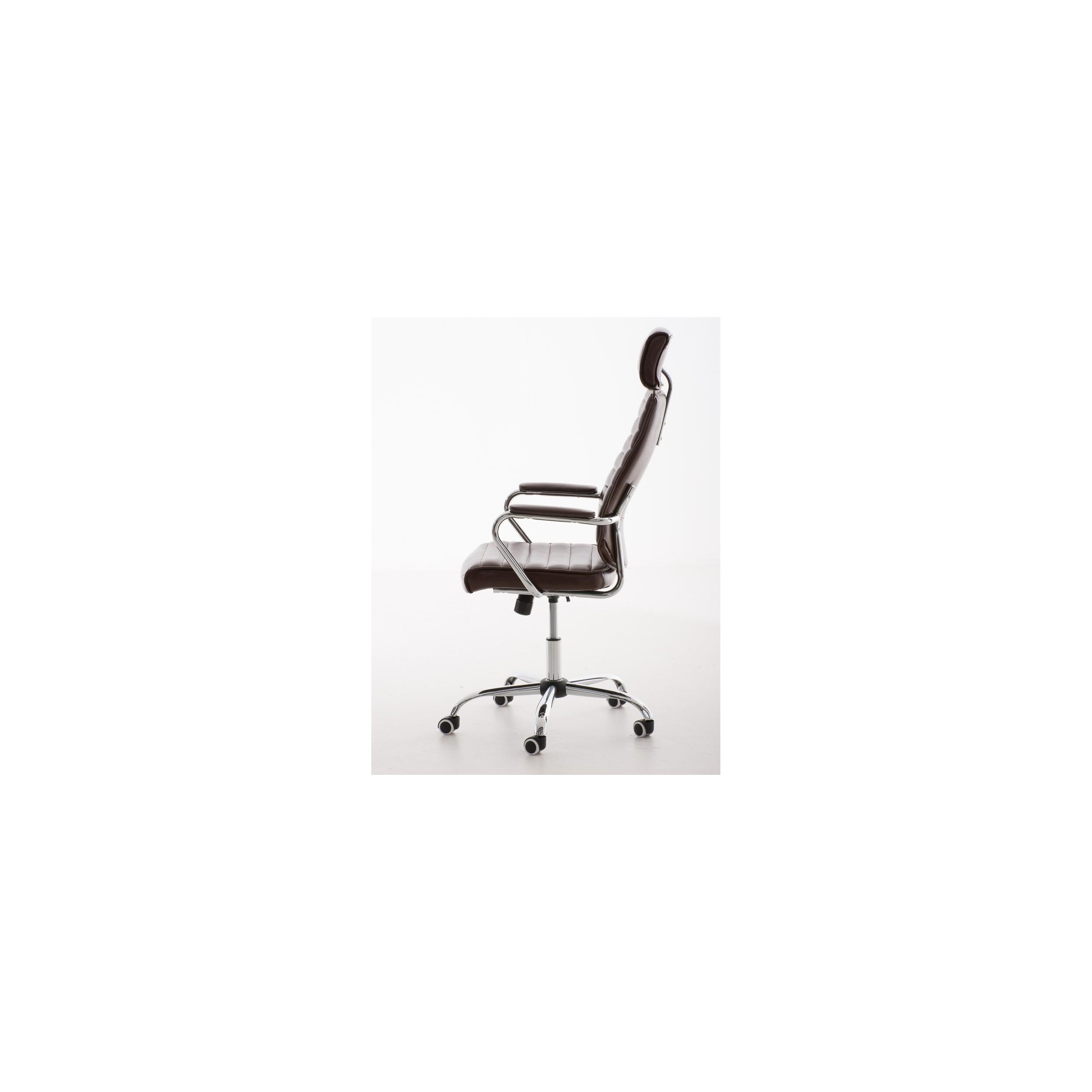 Silla de oficina Ejecutiva modelo RENO. Un modelo fabricado en estructura metálica, con asiento y respaldo acolchados tapizados en piel con costuras. Destacar su gran respaldo y reposabezas integrado.