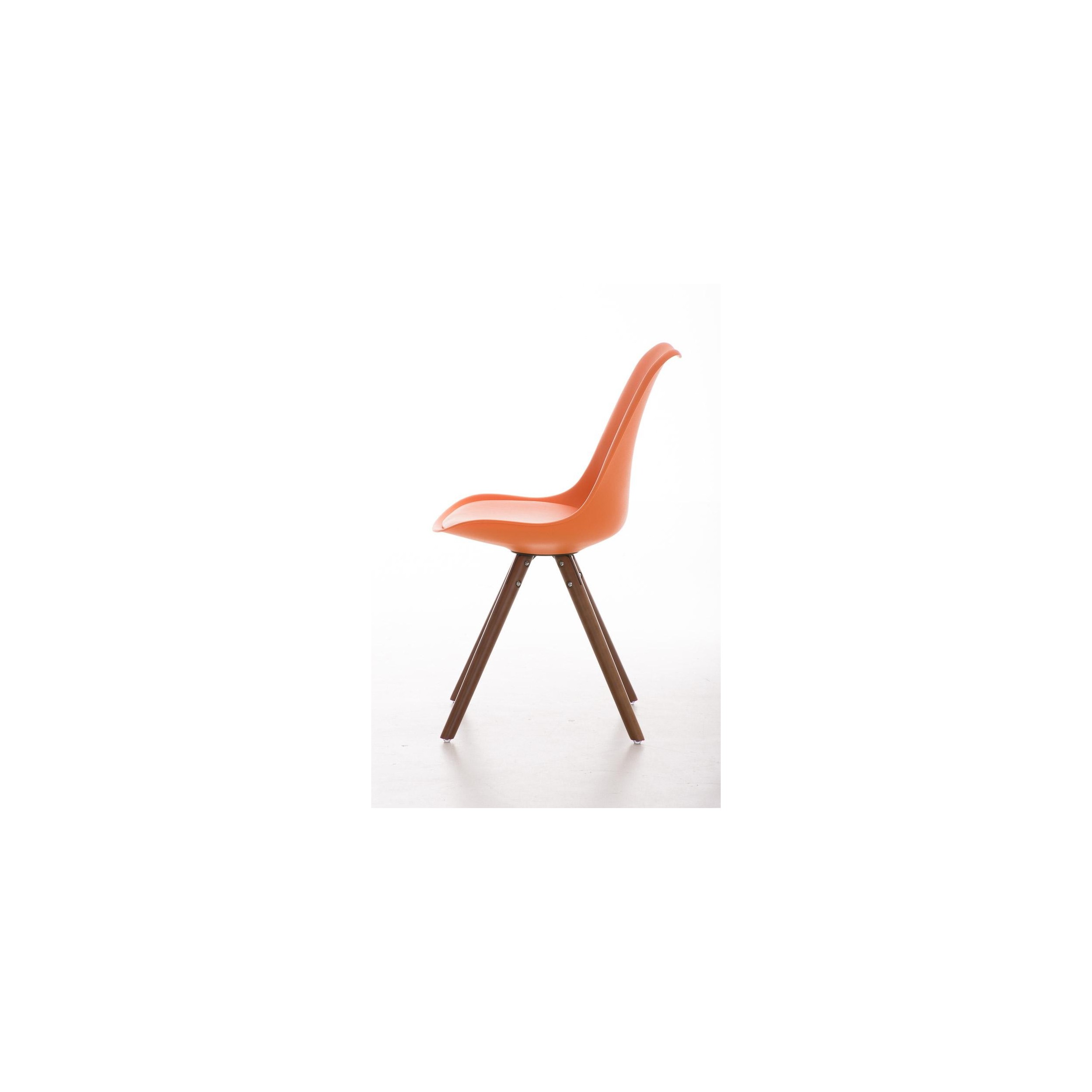 Las patas son de madera maciza en color nogal y del asiento y respaldo en plastico muy resistente formado un robusto armazón. Como podrás ver en las fotografías, el original acabado redondeado de las patas es muy bonito y queda perfectamente integrado en el diseño de la silla.