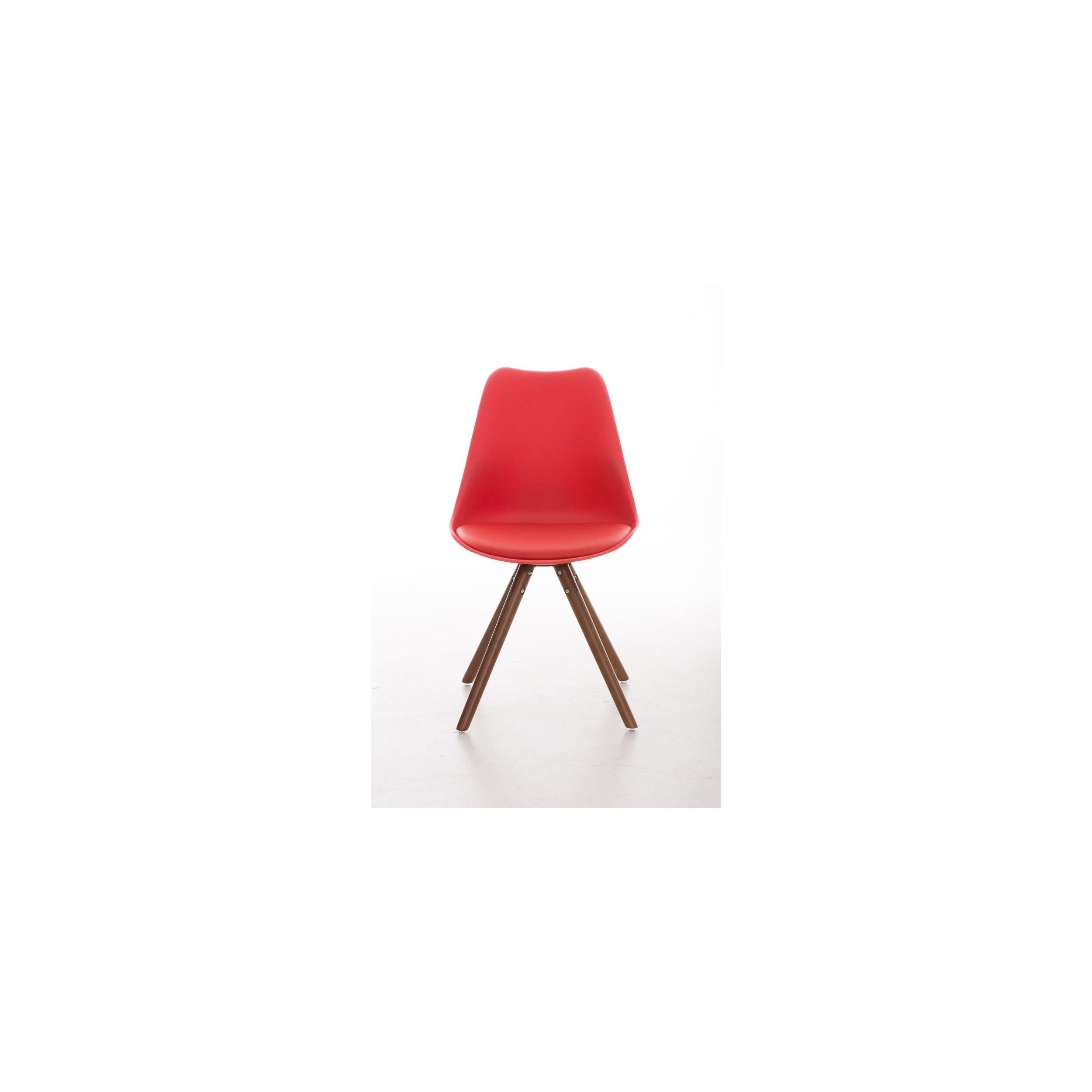 Las patas son de madera maciza en color nogal y del asiento y respaldo en plastico muy resistente formado un robusto armazón. Como podrás ver en las fotografías, el original acabado redondeado de las patas es muy bonito y queda perfectamente integrado en el diseño de la silla.
