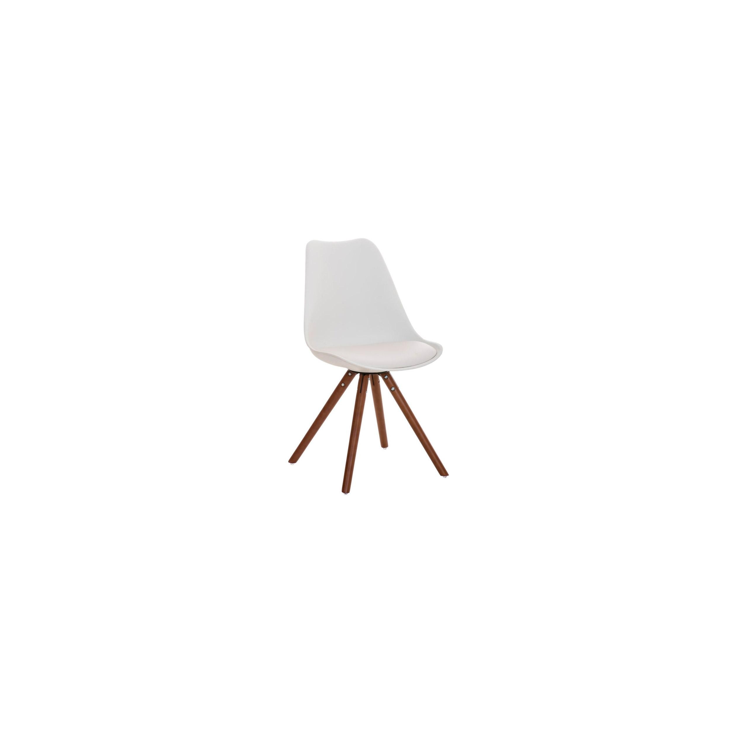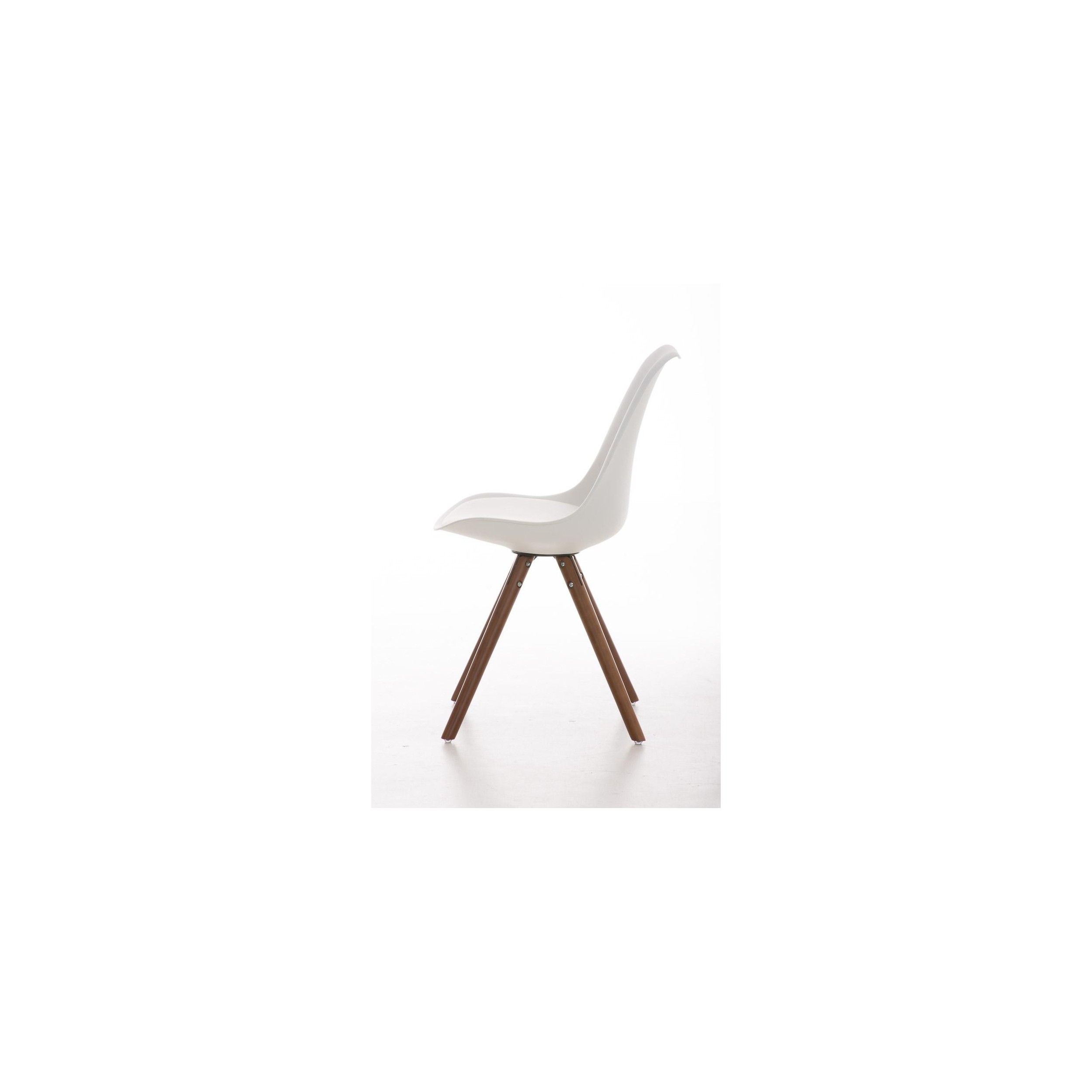 Las patas son de madera maciza en color nogal y del asiento y respaldo en plastico muy resistente formado un robusto armazón. Como podrás ver en las fotografías, el original acabado redondeado de las patas es muy bonito y queda perfectamente integrado en el diseño de la silla.