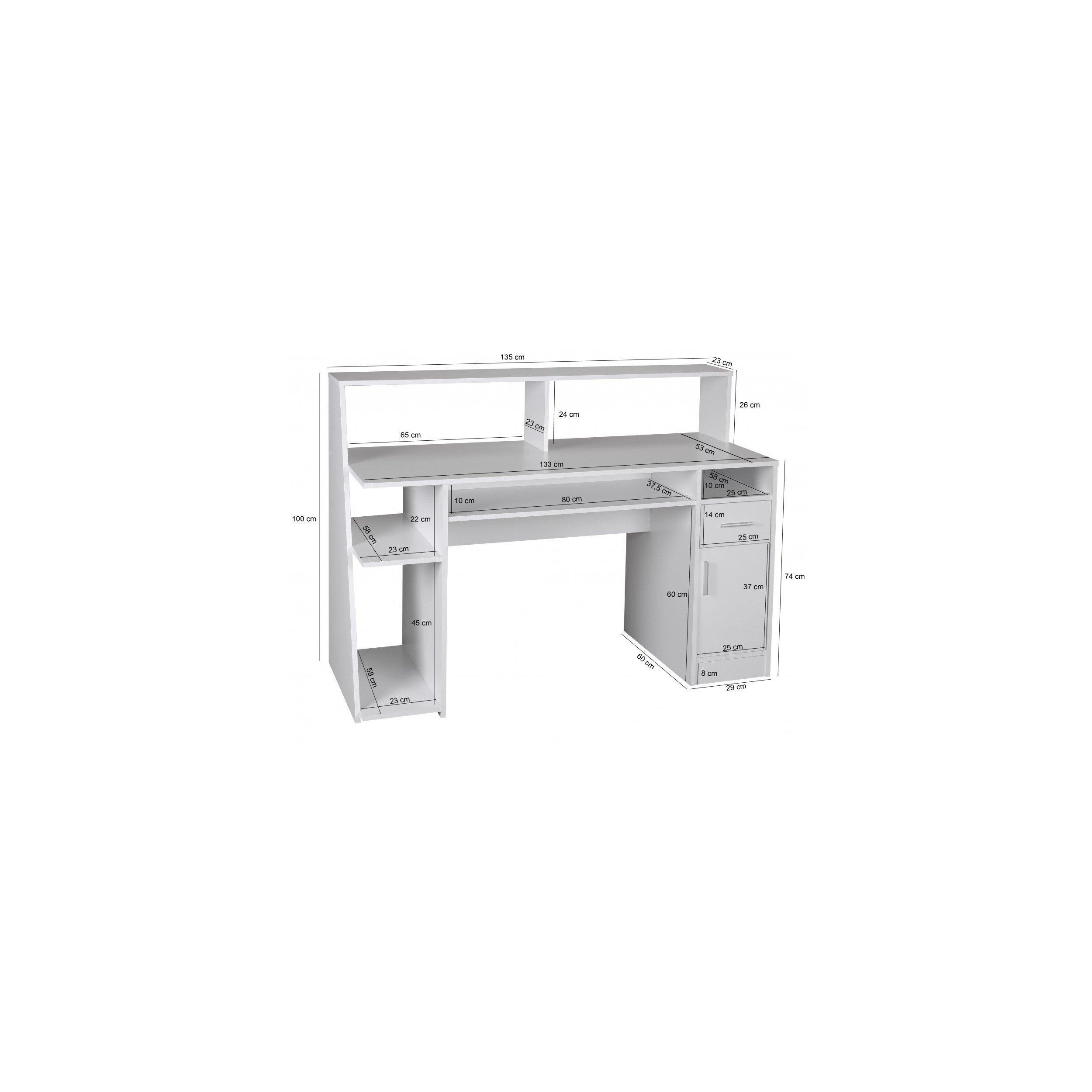 Mesa de Ordenador VIRGINIA, amplio espacio para almacenamiento, dimensiones 135x60cm, en Blanco