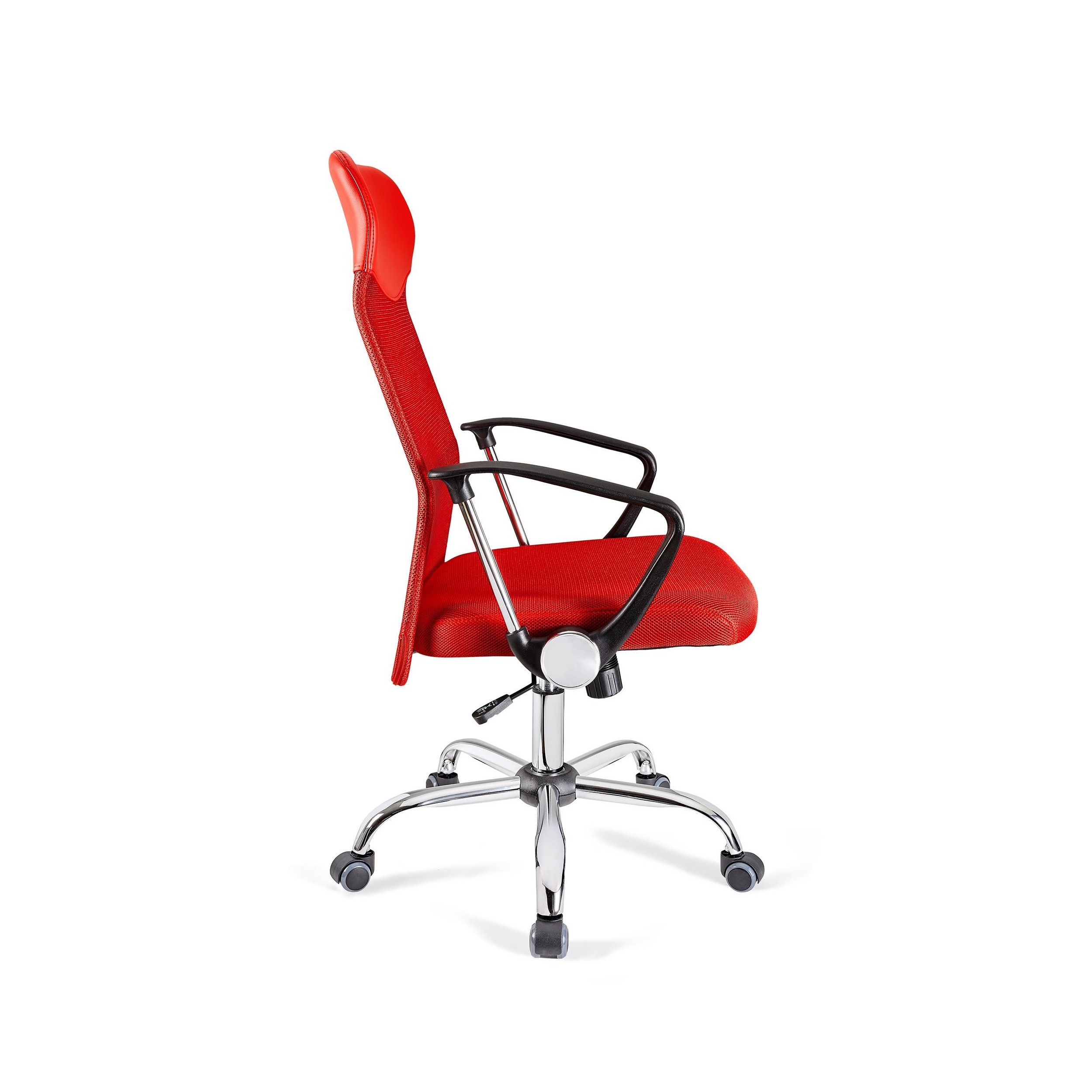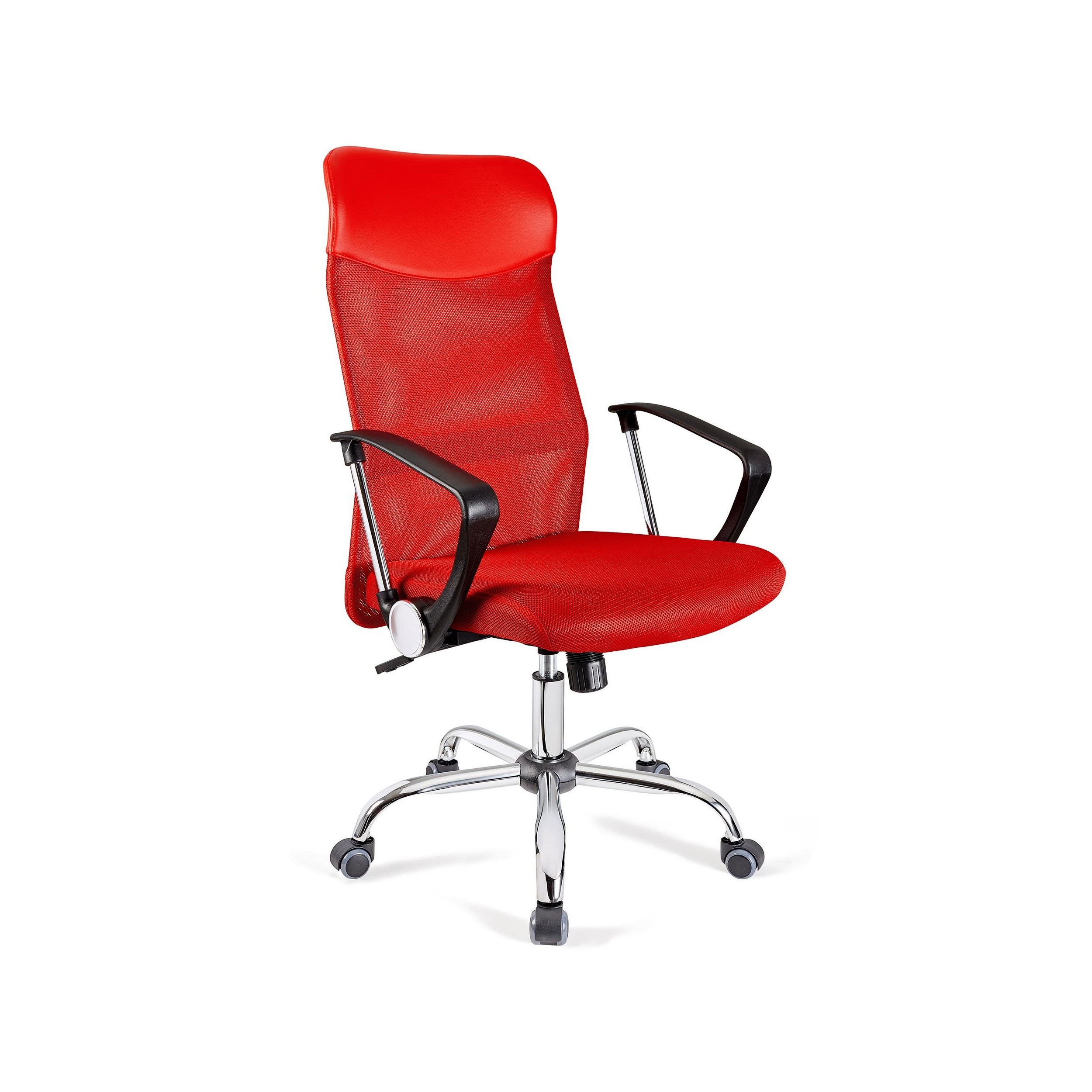 El respaldo tiene diseño ergonómico, es muy alto y está tapizado en malla transpirable, un tejido muy agradable y resistente. Incorpora un soporte lumbar y además cuenta con un exclusivo mecanismo basculante con el que podrás elegir si fijar el respaldo o dejarlo en posición móvil.