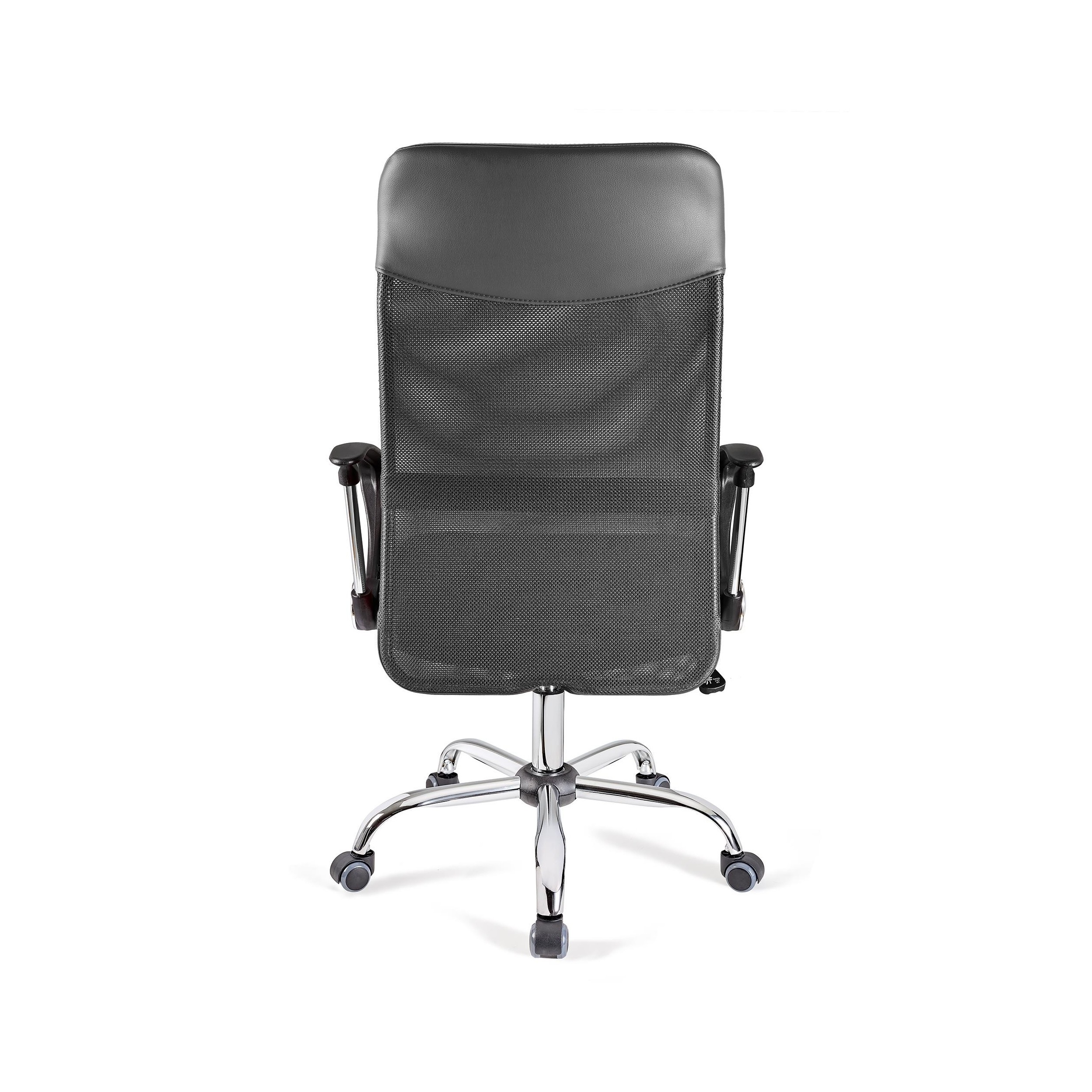 El respaldo tiene diseño ergonómico, es muy alto y está tapizado en malla transpirable, un tejido muy agradable y resistente. Incorpora un soporte lumbar y además cuenta con un exclusivo mecanismo basculante con el que podrás elegir si fijar el respaldo o dejarlo en posición móvil.