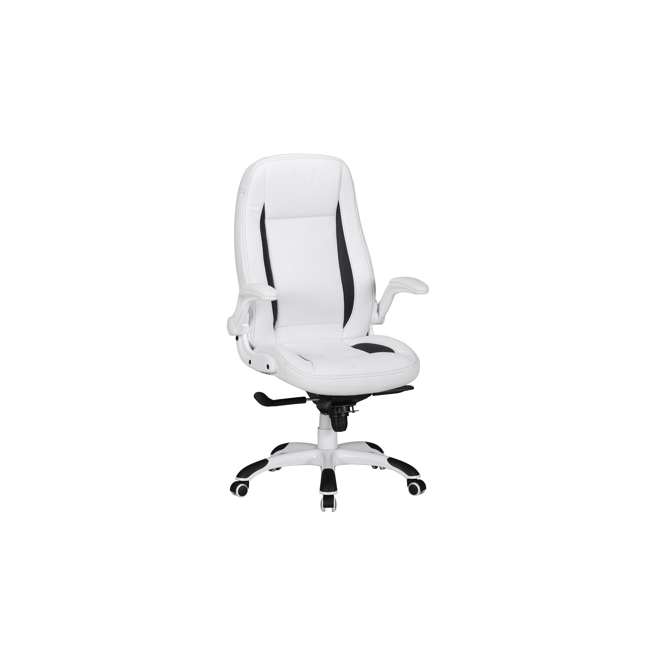 La silla esta tapizada en piel sintética de gran calidad y fácil limpieza. También están tapizados los reposabrazos, que están acolchados y son comodísimos. Además son plegables, puedes bajarlos si los necesitas o subirlos si te molestan. Práctico, ¿verdad?