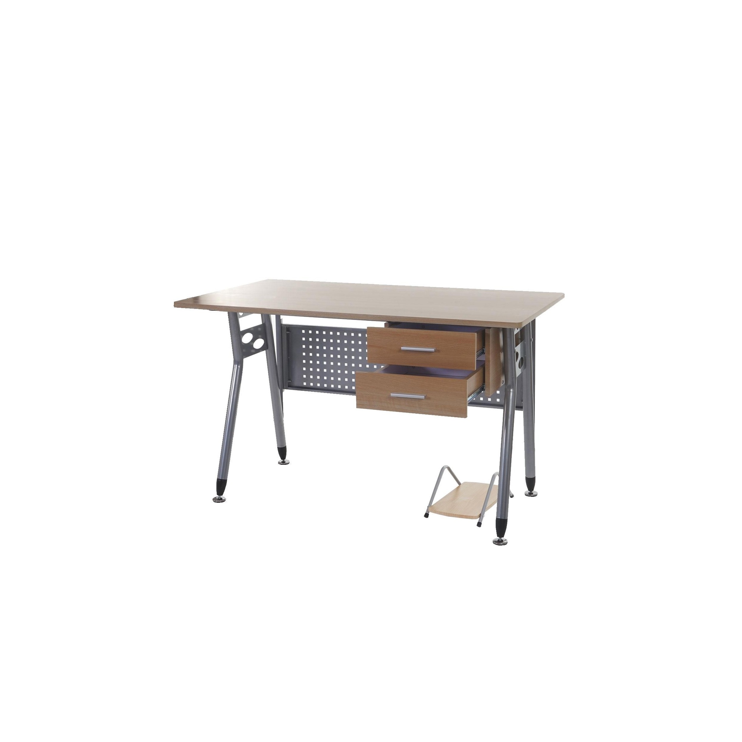 Estamos ante una mesa fabricada con materiales de primera calidad. La estructura es metálica, aportando toda la robustez y estabilidad que una mesa requiere. La superficie de la mesa y los cajones son de madera, material que añade un toque de calidez.