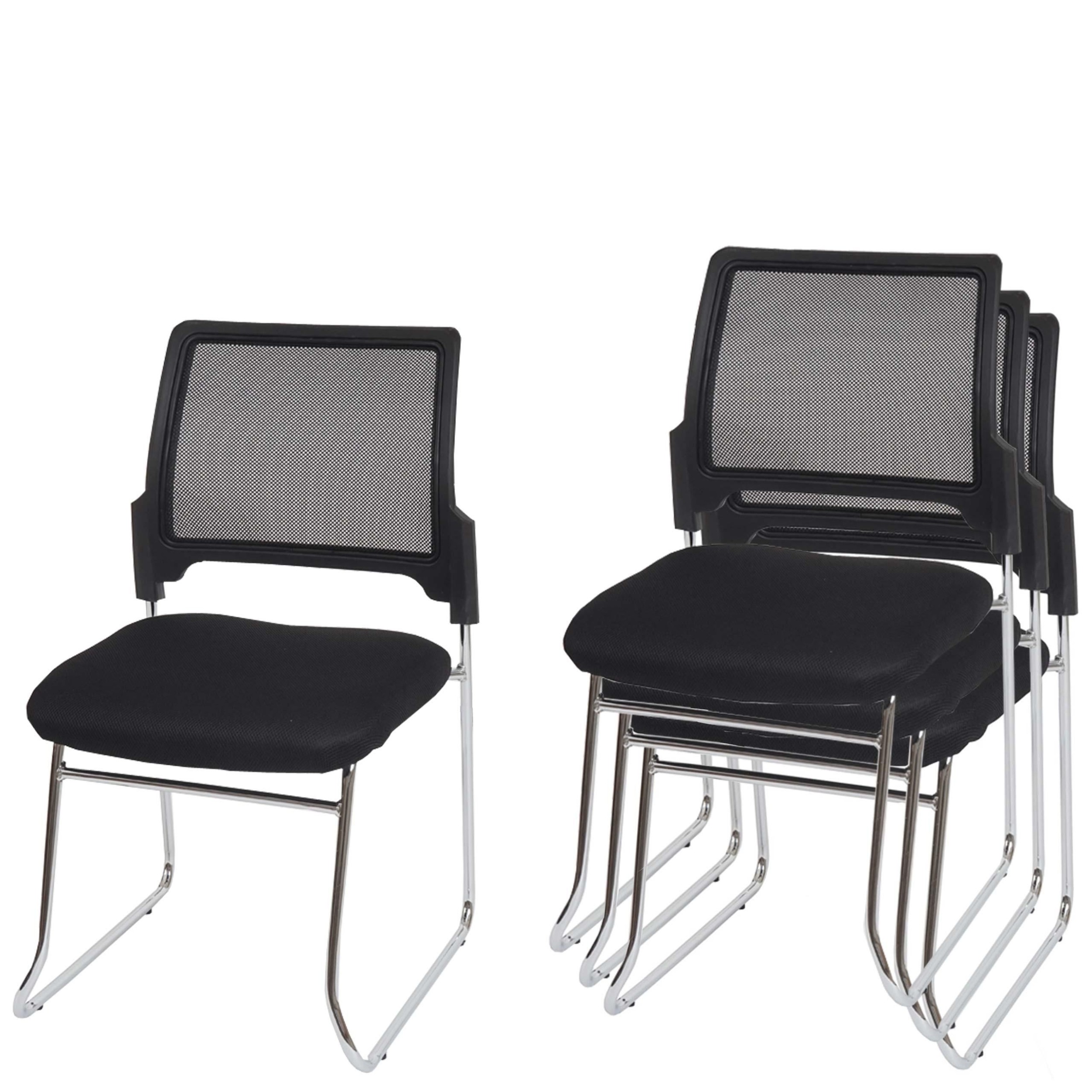 Lote de 4 Sillas de Confidente PISA, Apilables, Ergonómicas y Tapizadas en Malla Transpirable color Negro