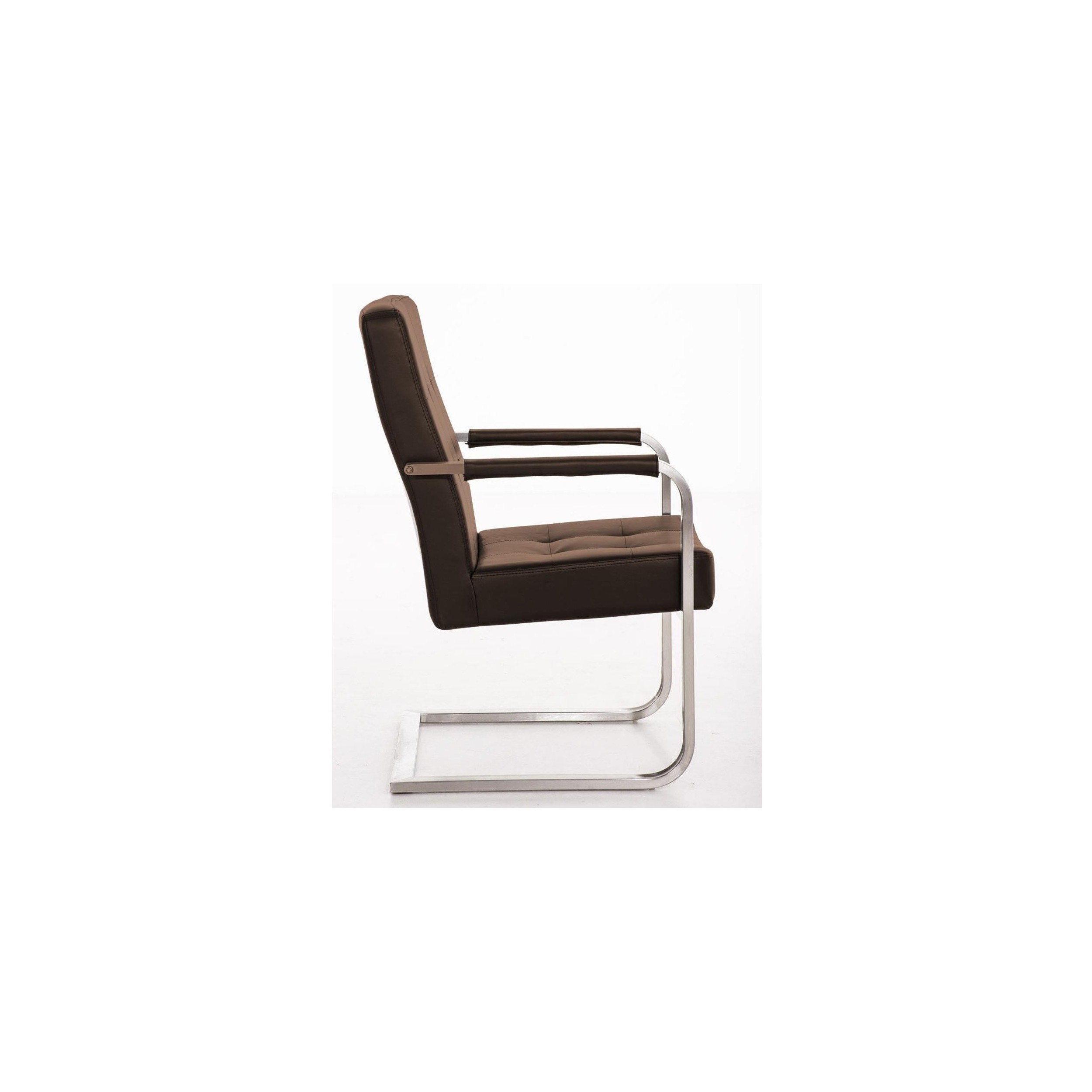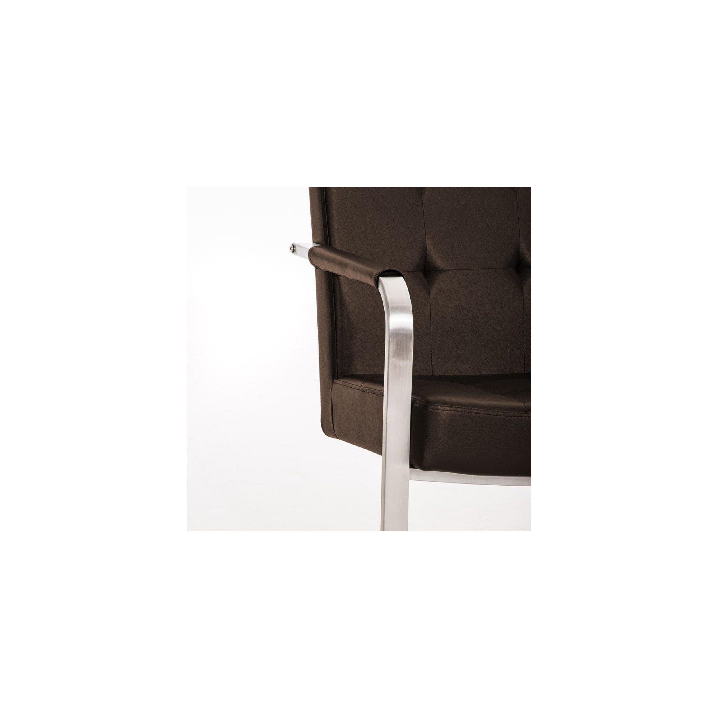 La silla de confidente MORGAN PIEL es tan cómoda como elegante. Precioso diseño y gran acolchado tapizado en piel de gran calidad. Estructura de acero inoxidable.