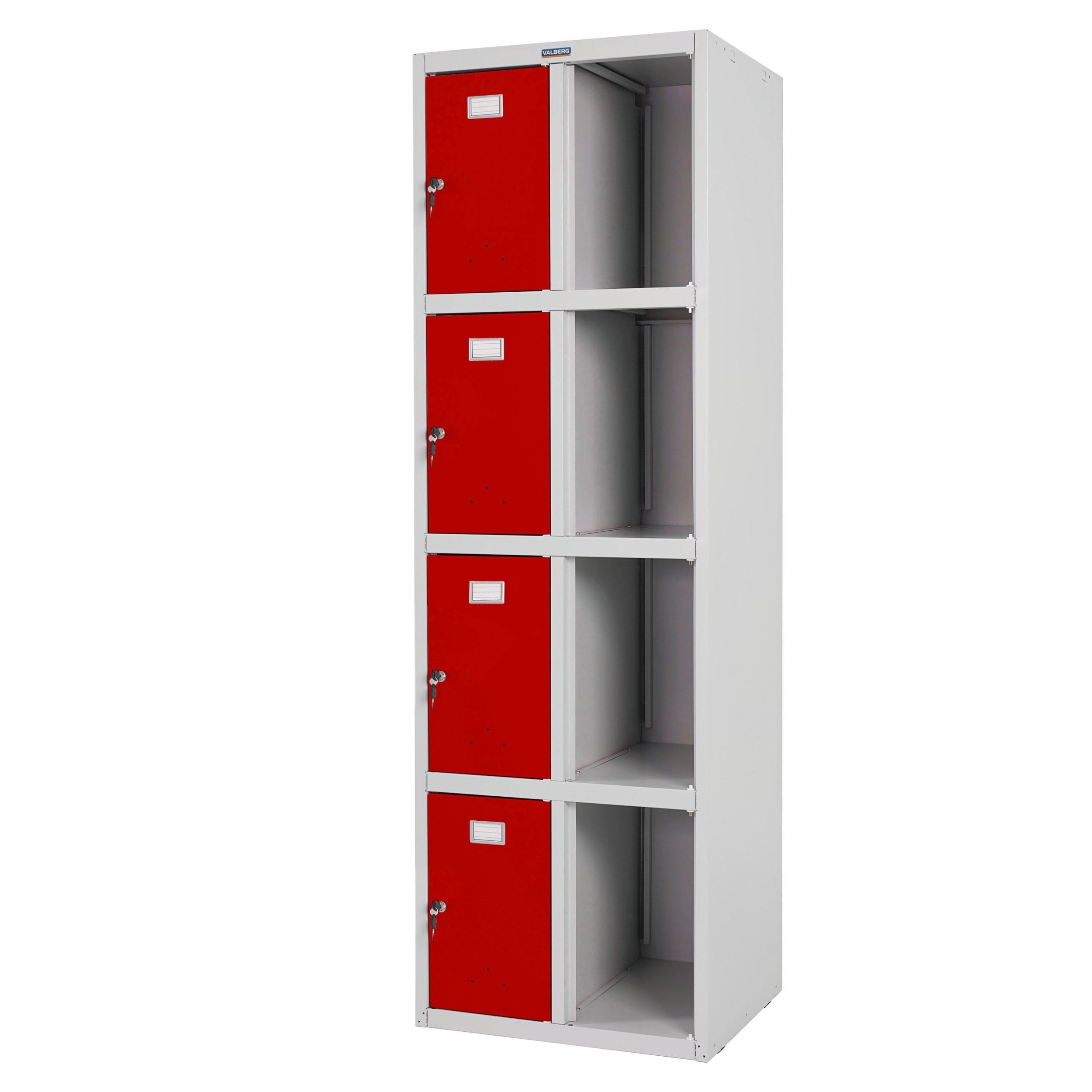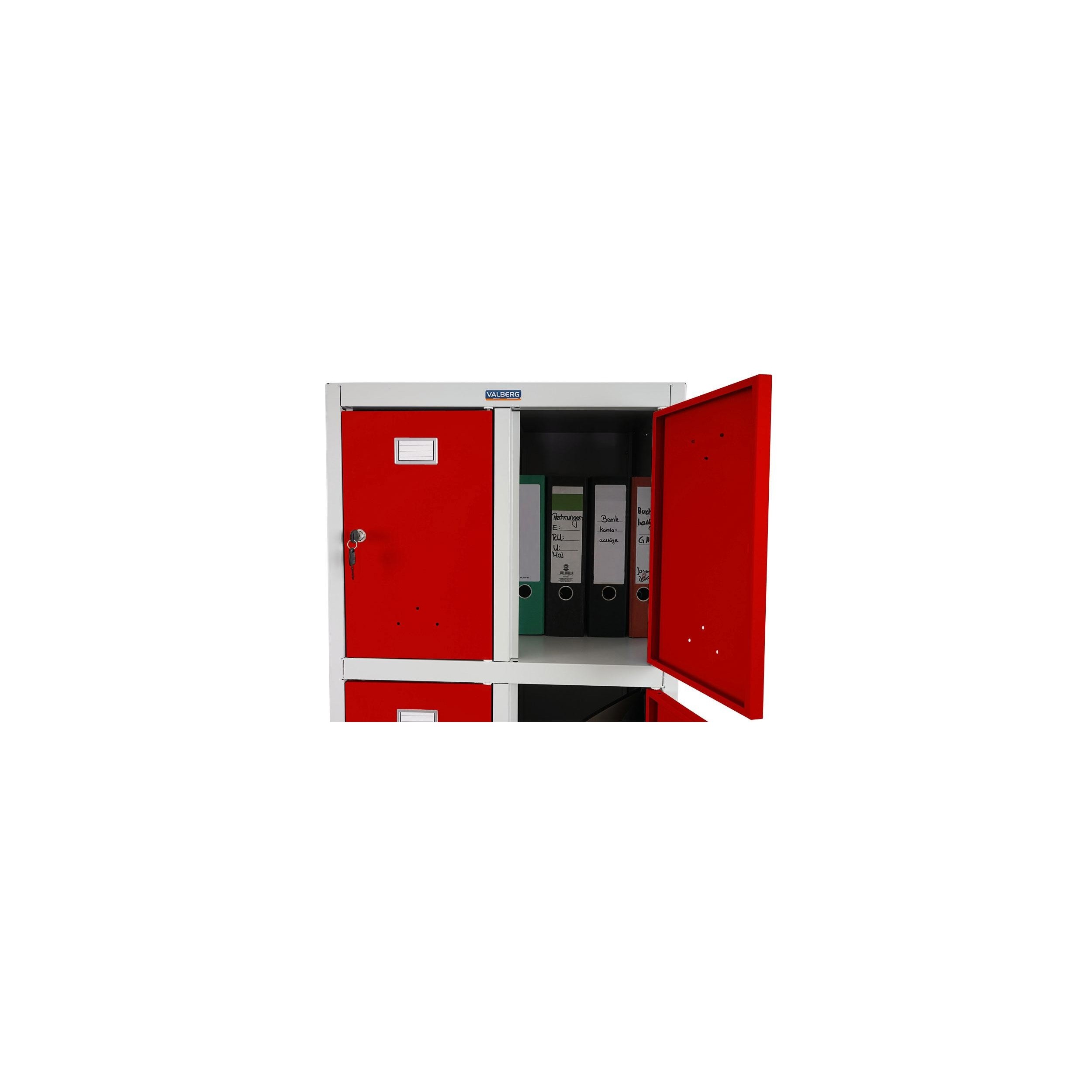 Estamos ante un armario de grandes dimensiones, 183x58x50 cm, por lo que ofrece una considerable capacidad de almacenaje. Cuenta con ocho casilleros totalmente independientes, por lo que cada persona podrá guardar sus enseres o carpetas sin interferir en las del resto, aunque si se desea, los casilleros pueden ser conectados entre sí.