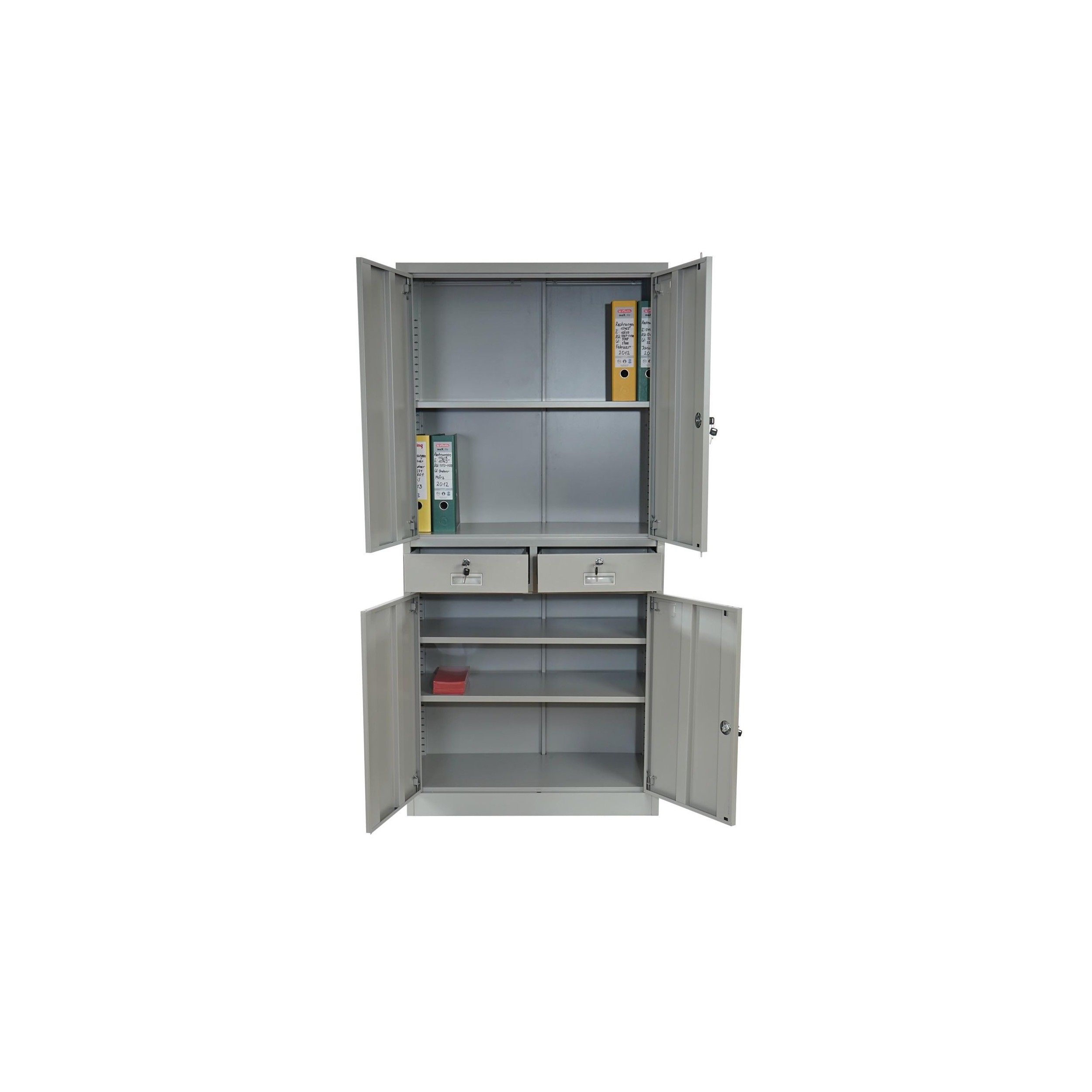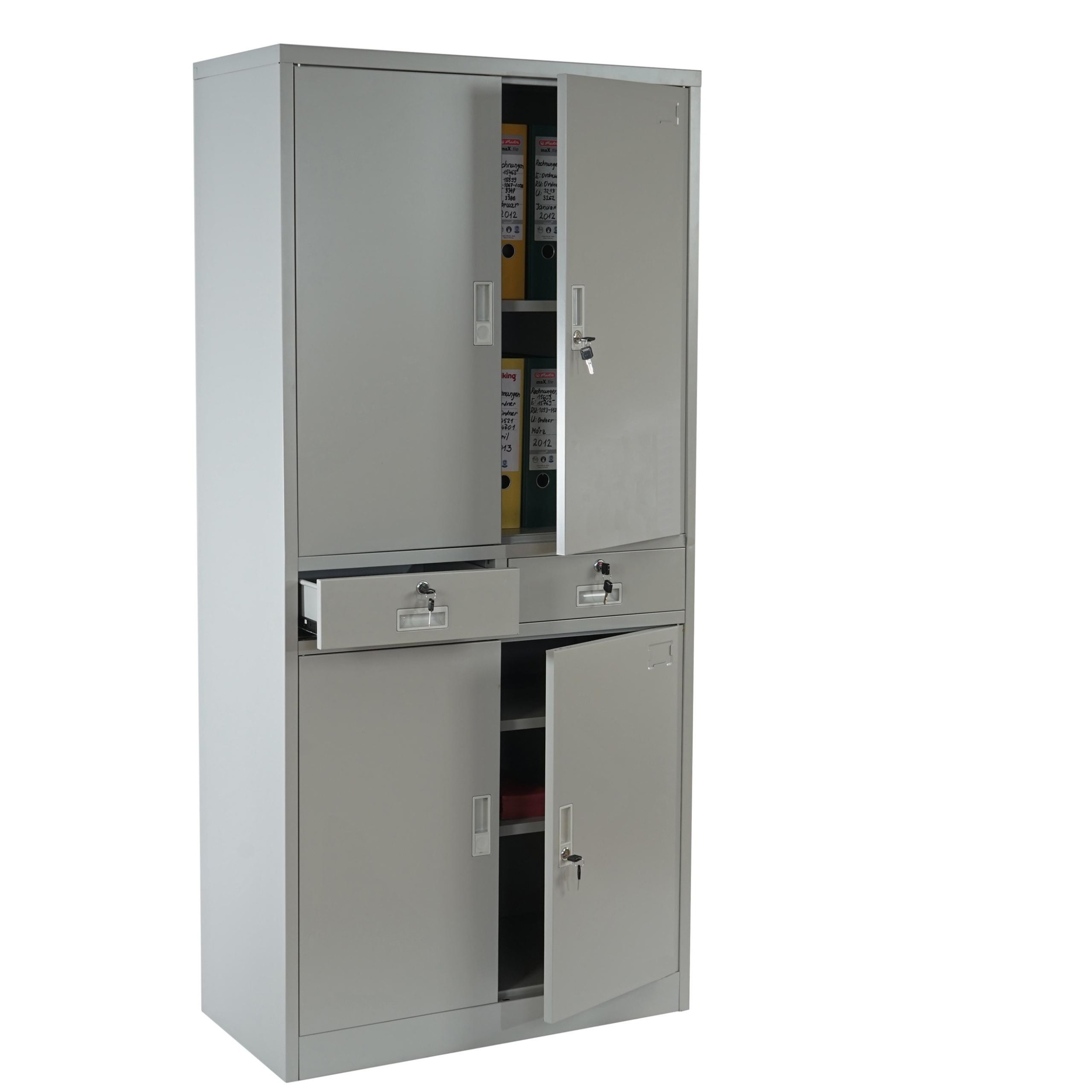 Armario archivador metálico EDIT de 180x85x40. 4 puertas batientes y 2 cajones, gran capacidad de almacenaje y máxima robustez,