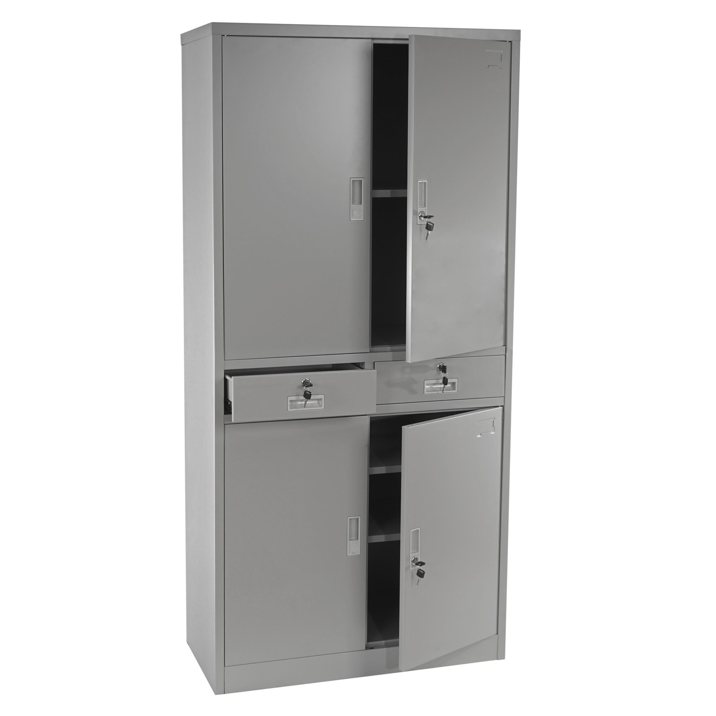 Archivador Metálico EDIT, 4 puertas batientes y 2 cajones, 180x85x40 cm, en Acero, Color Gris