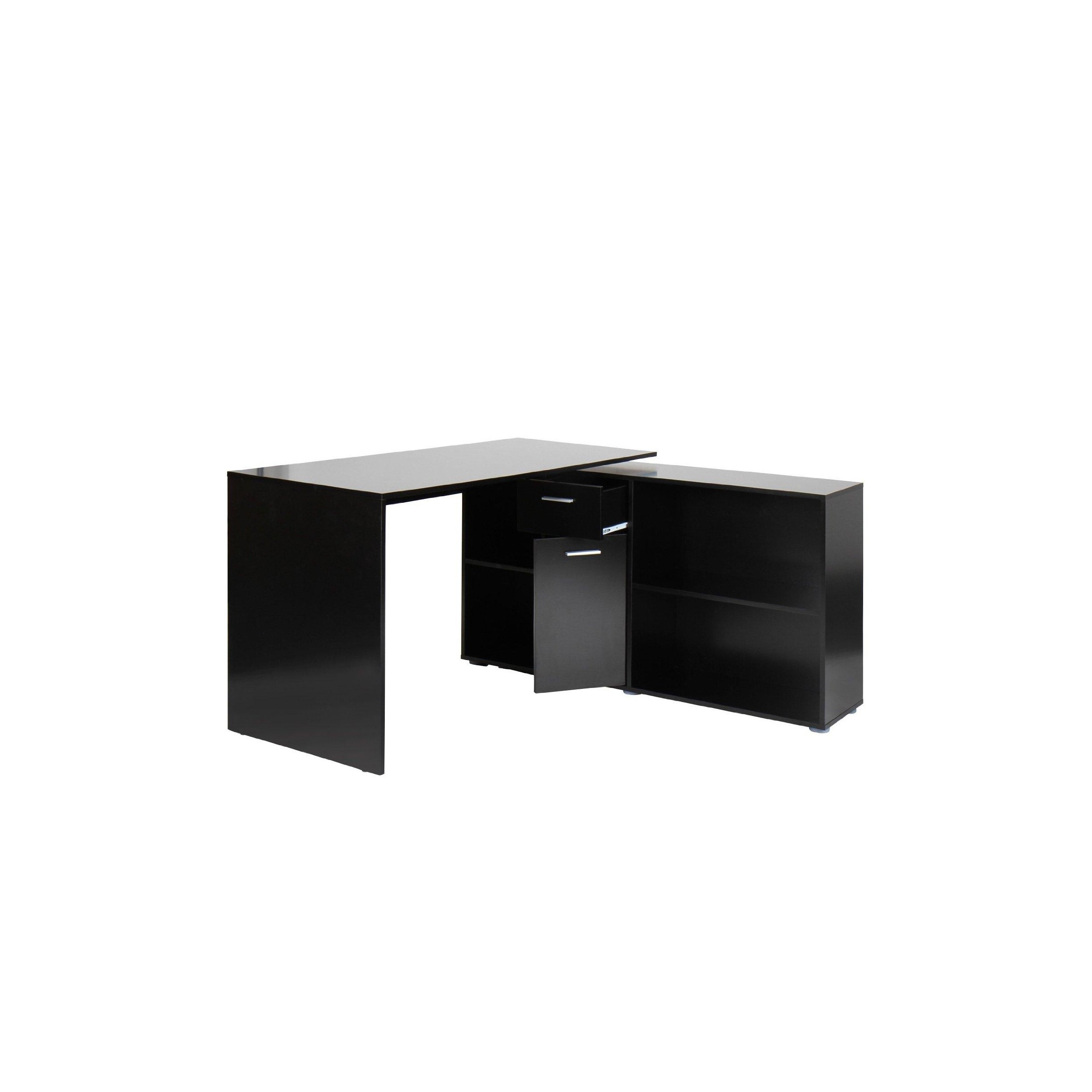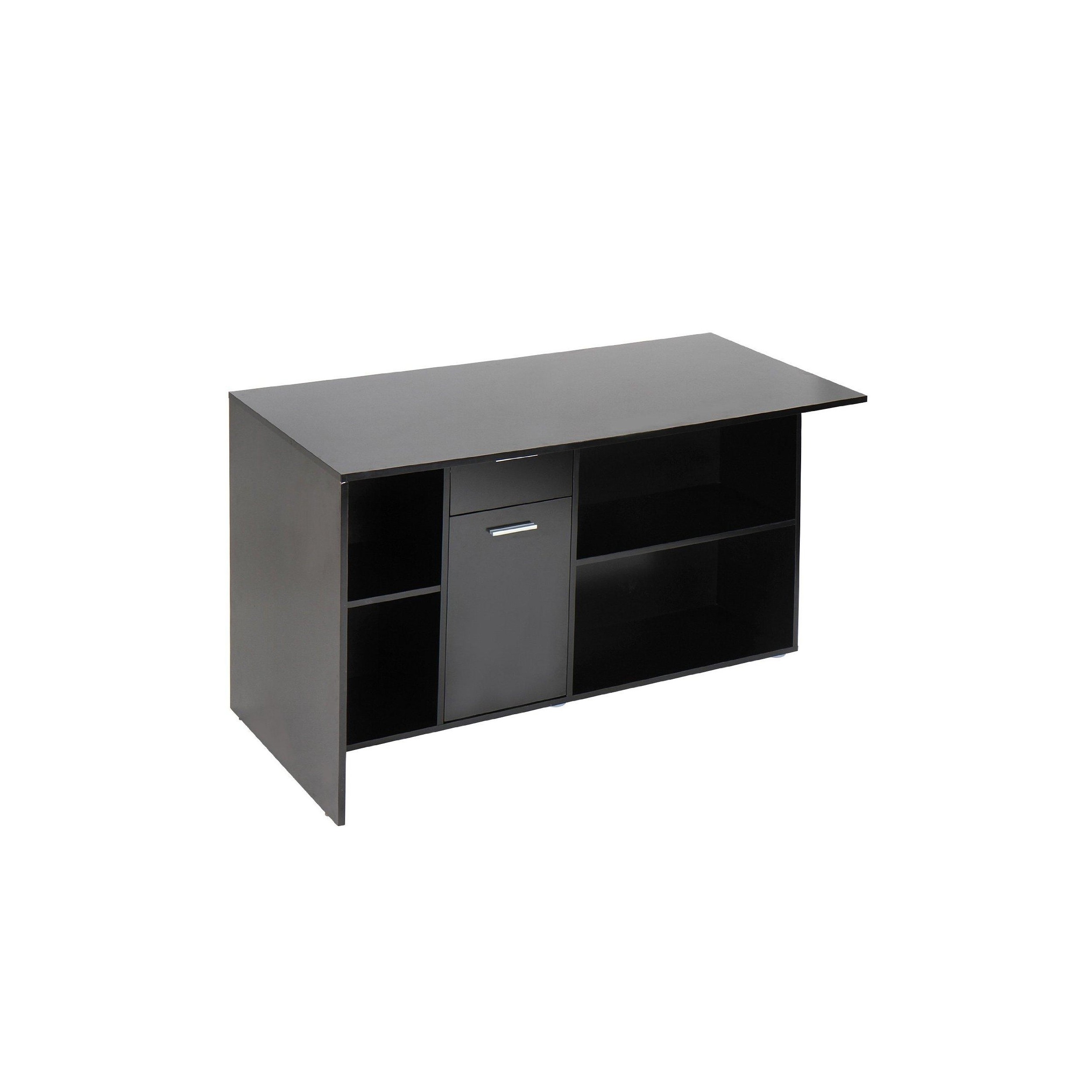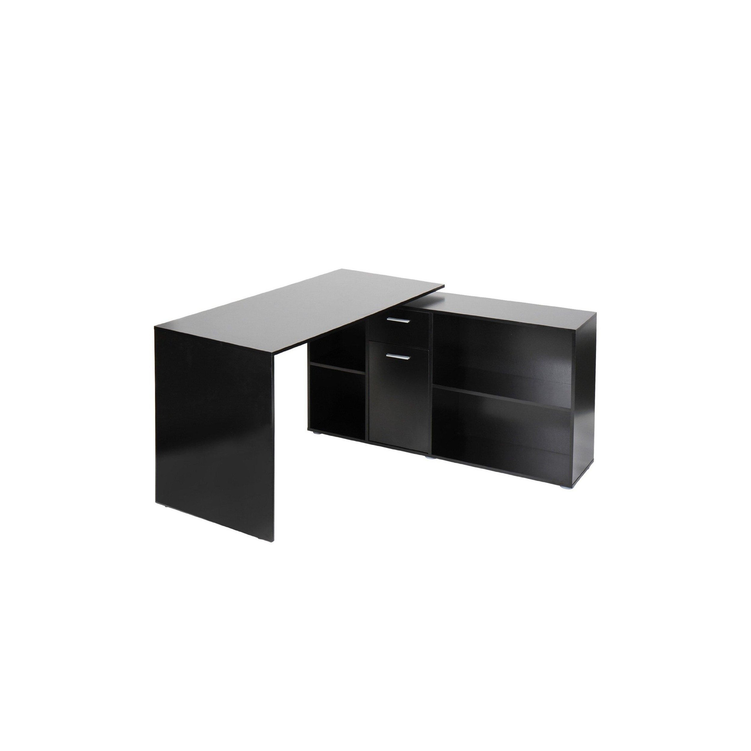 Mesa de Despacho Regulable FUJI, Estantes para Almacenaje, Amplia Superficie en Madera color Negro