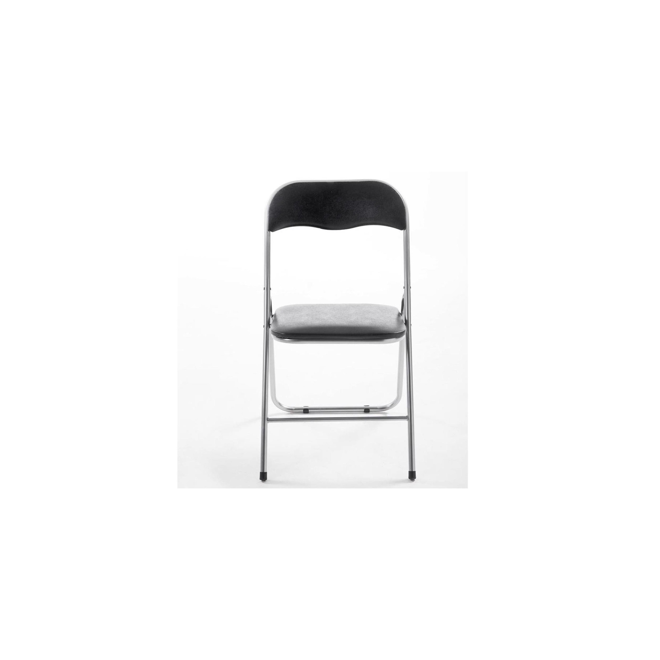 Silla Plegable VINSON, Estructura Metálica en Gris, Tapizada en Piel color Negro