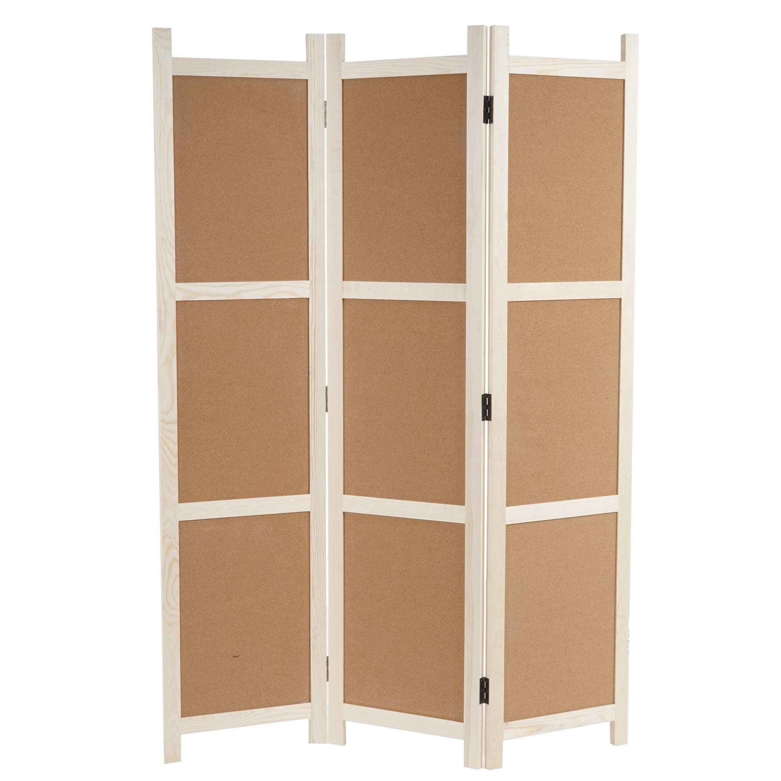 Biombo de Madera y Corcho ALRIK, 166x120x2cm, Muy Práctico, Acabado Natural
