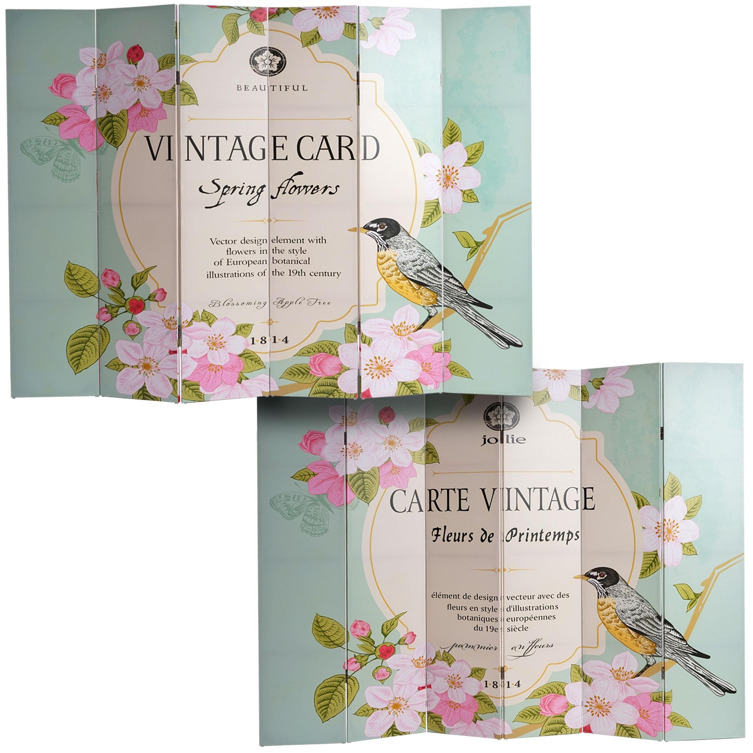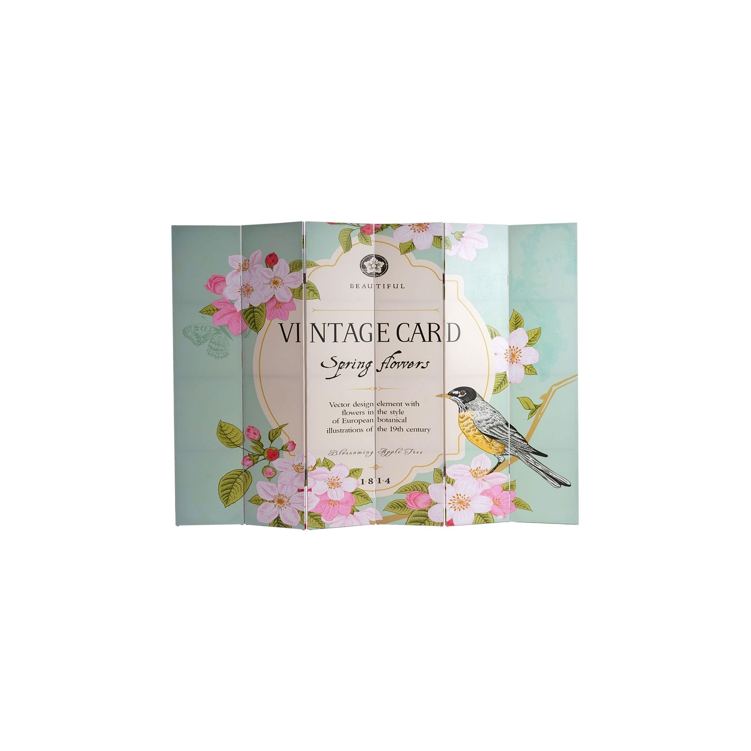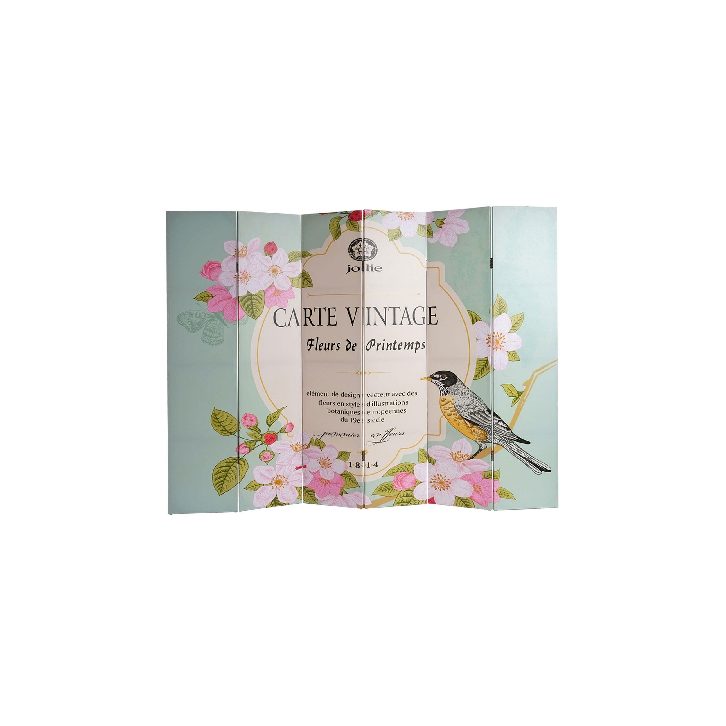 Biombo 6 paneles VINTAGE PAJAROS, 180x240x2,5cm, Estructura de Madera