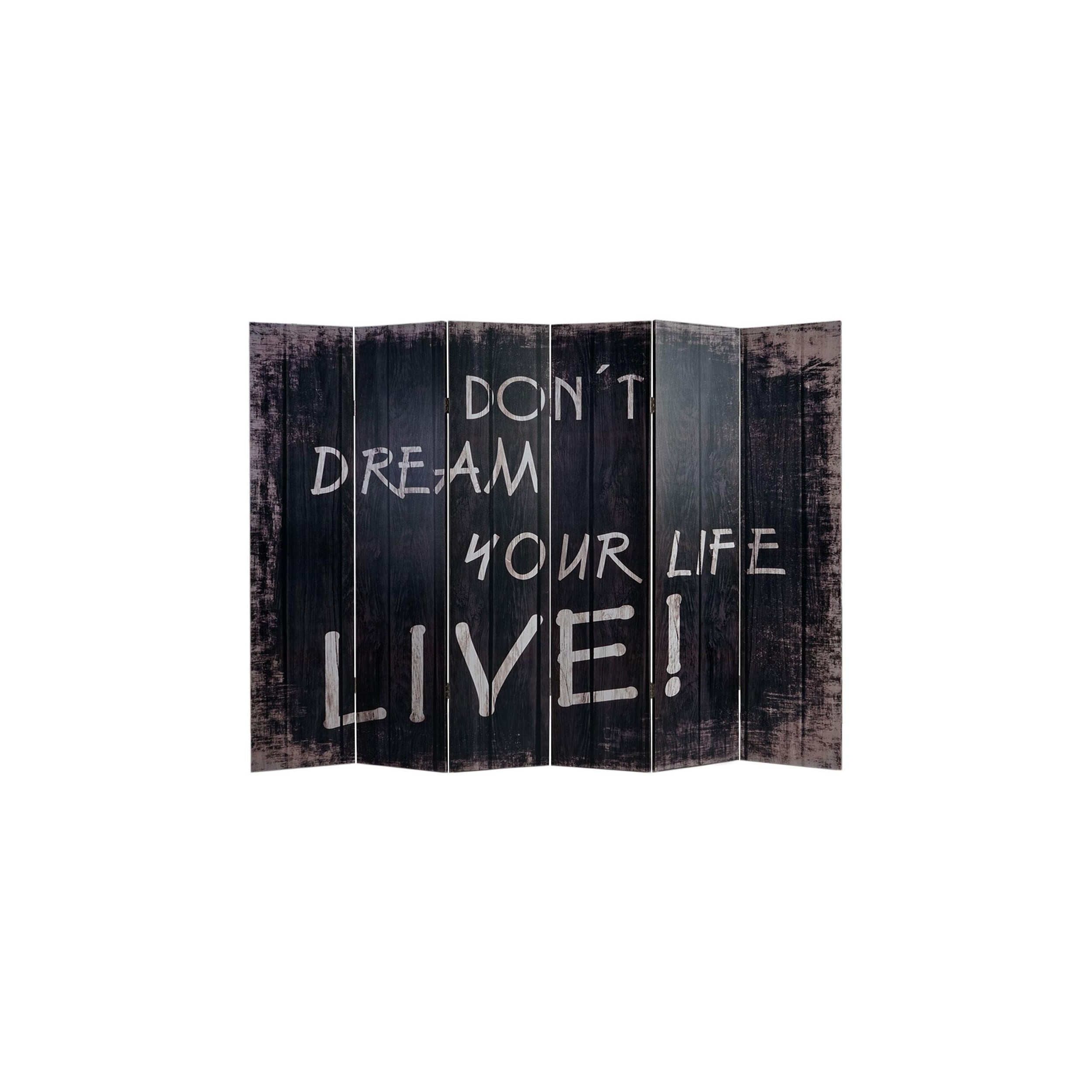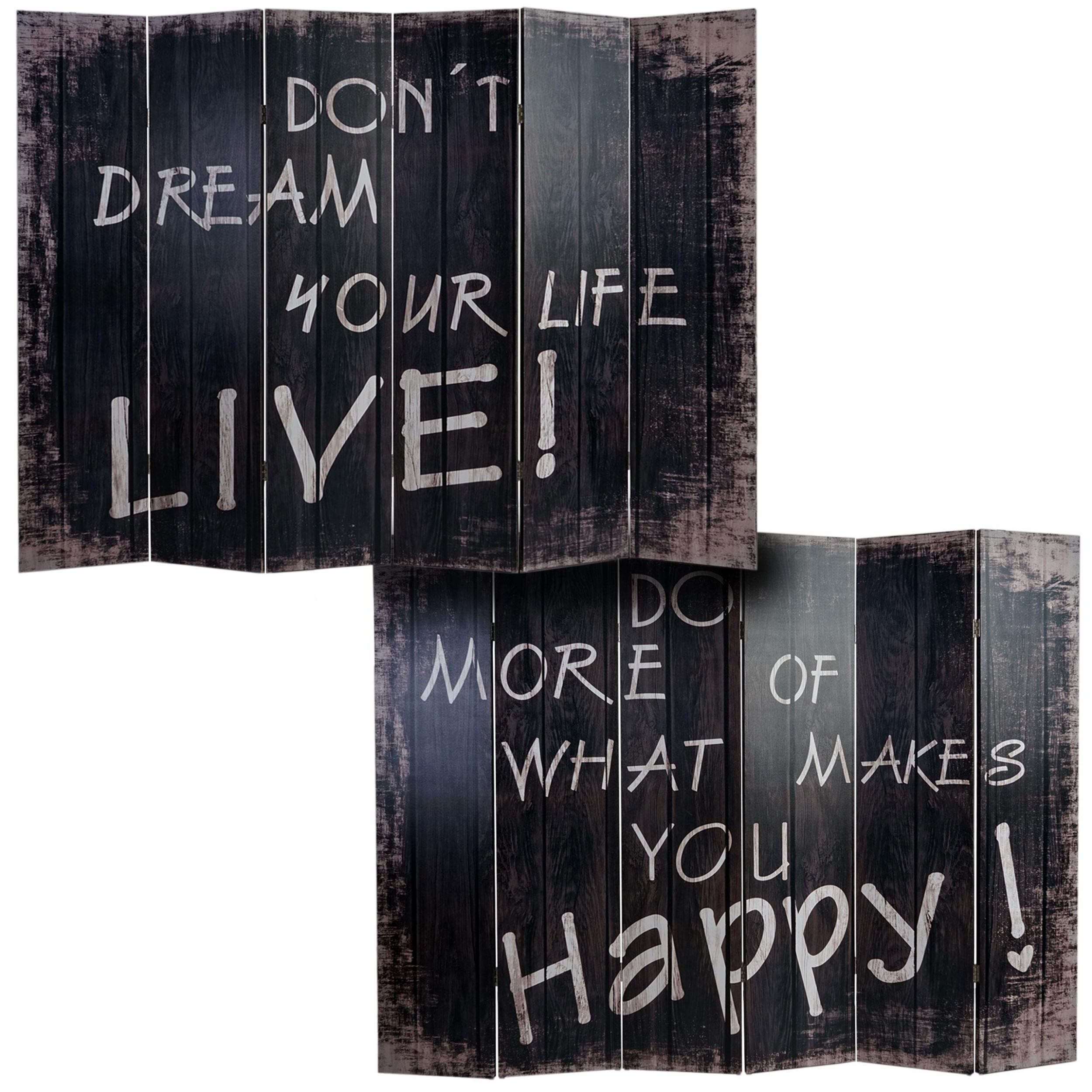 Este biombo decorativo de 6 paneles destaca por su diseño, que cuenta con diferentes motivos en sus dos caras, distintas frases que te inspirarán cada vez que las leas. Además, está disponible en diferentes tamaños, por lo que podrás optar por el que más se ajuste a tus necesidades.