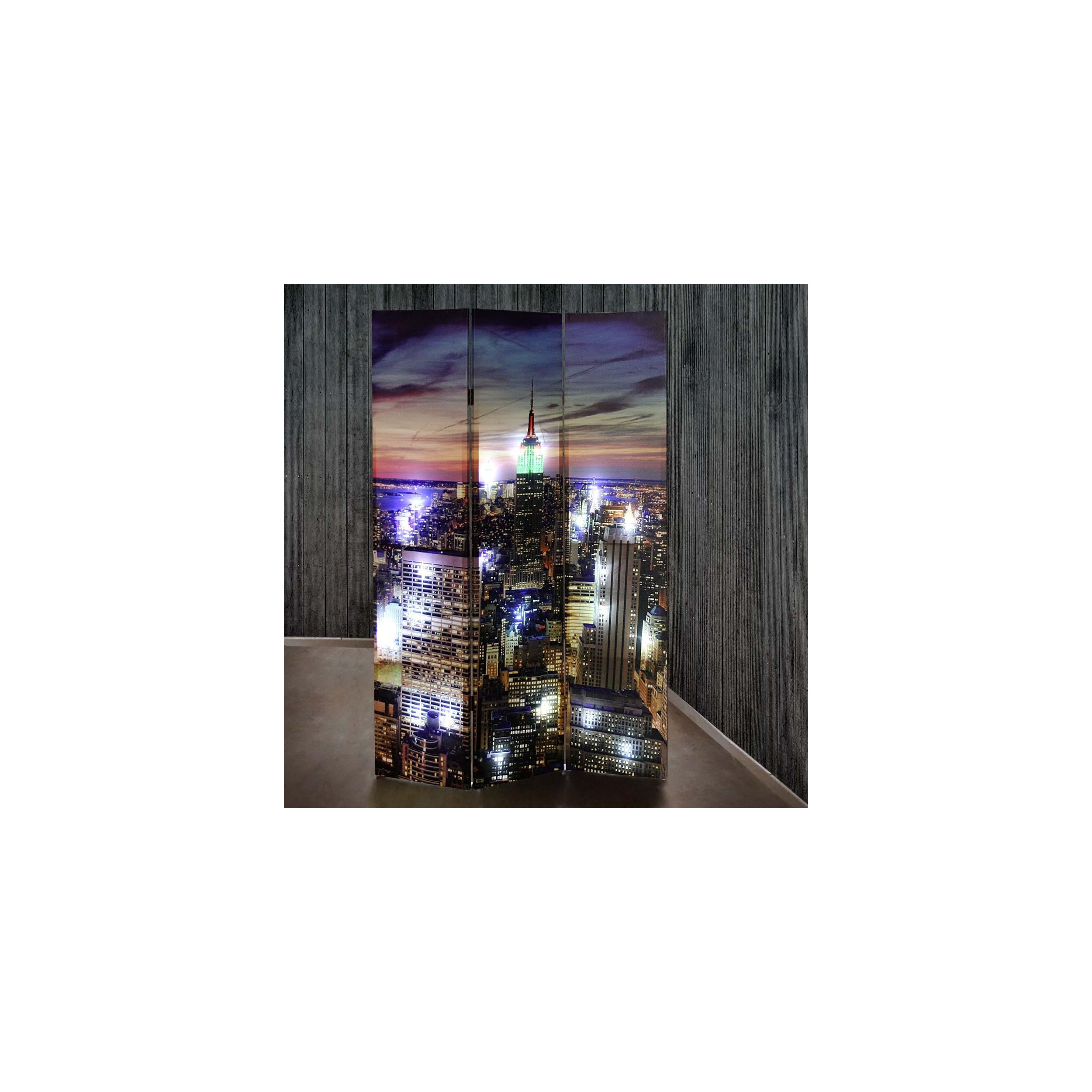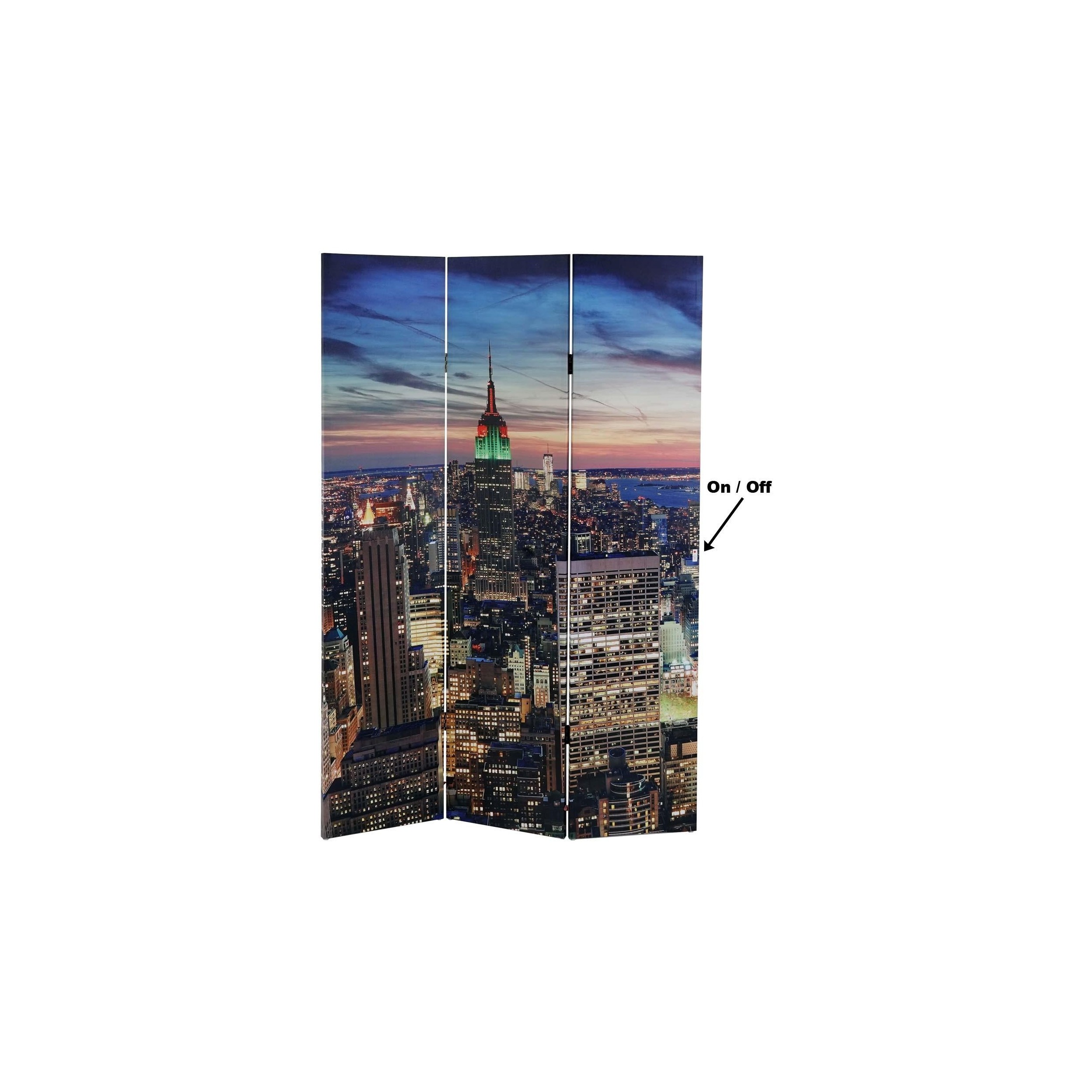 Este biombo decorativo de 3 paneles destaca por su diseño. Por un lado, por su tela impresa con el skyline de Nueva York. Por otro, por las 24 luces led que animan la imagen y le dan esplendor. ¡Este biombo te hará viajar hasta la ciudad de los rascacielos!