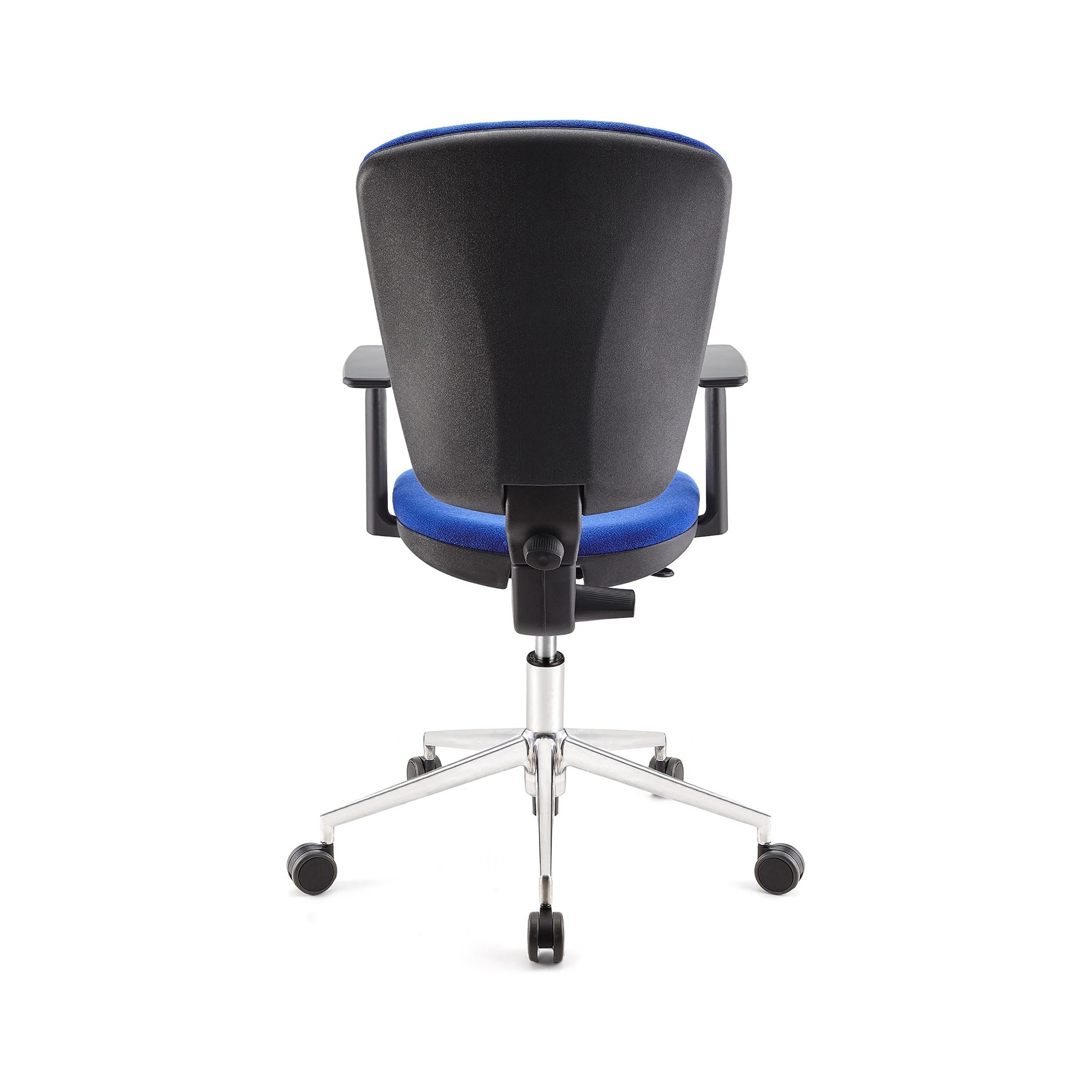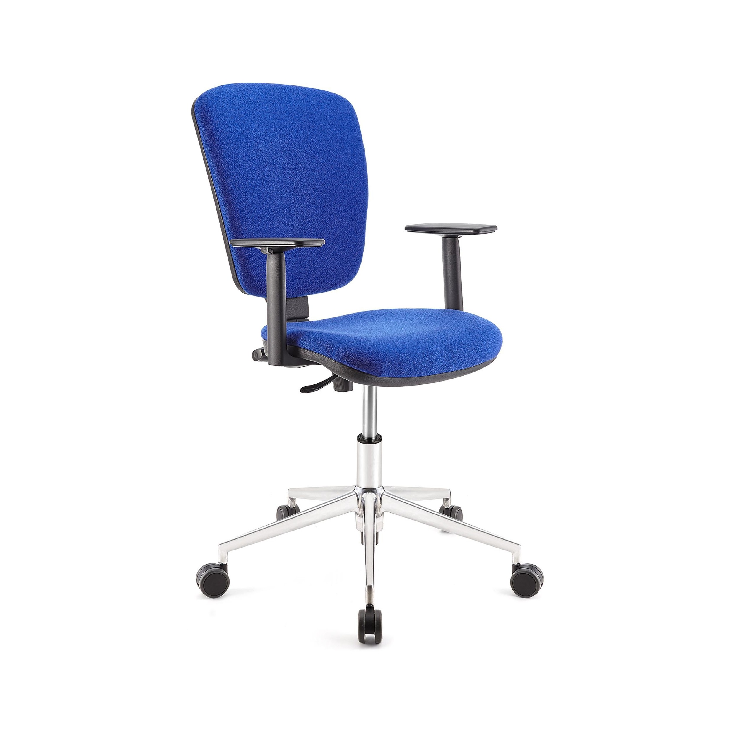 Silla UDINE, respaldo y asiento tela azul, brazos ajustables, base metal
