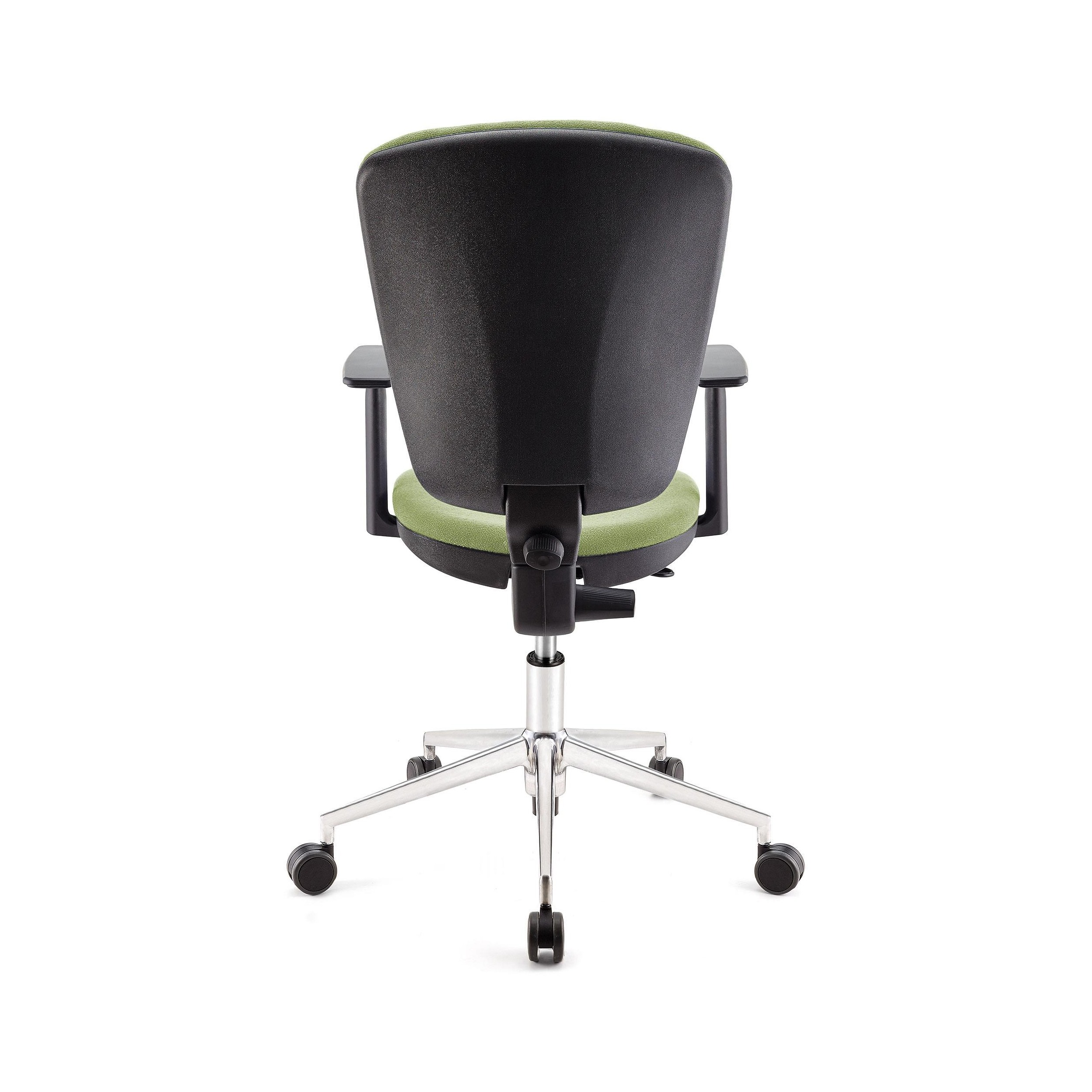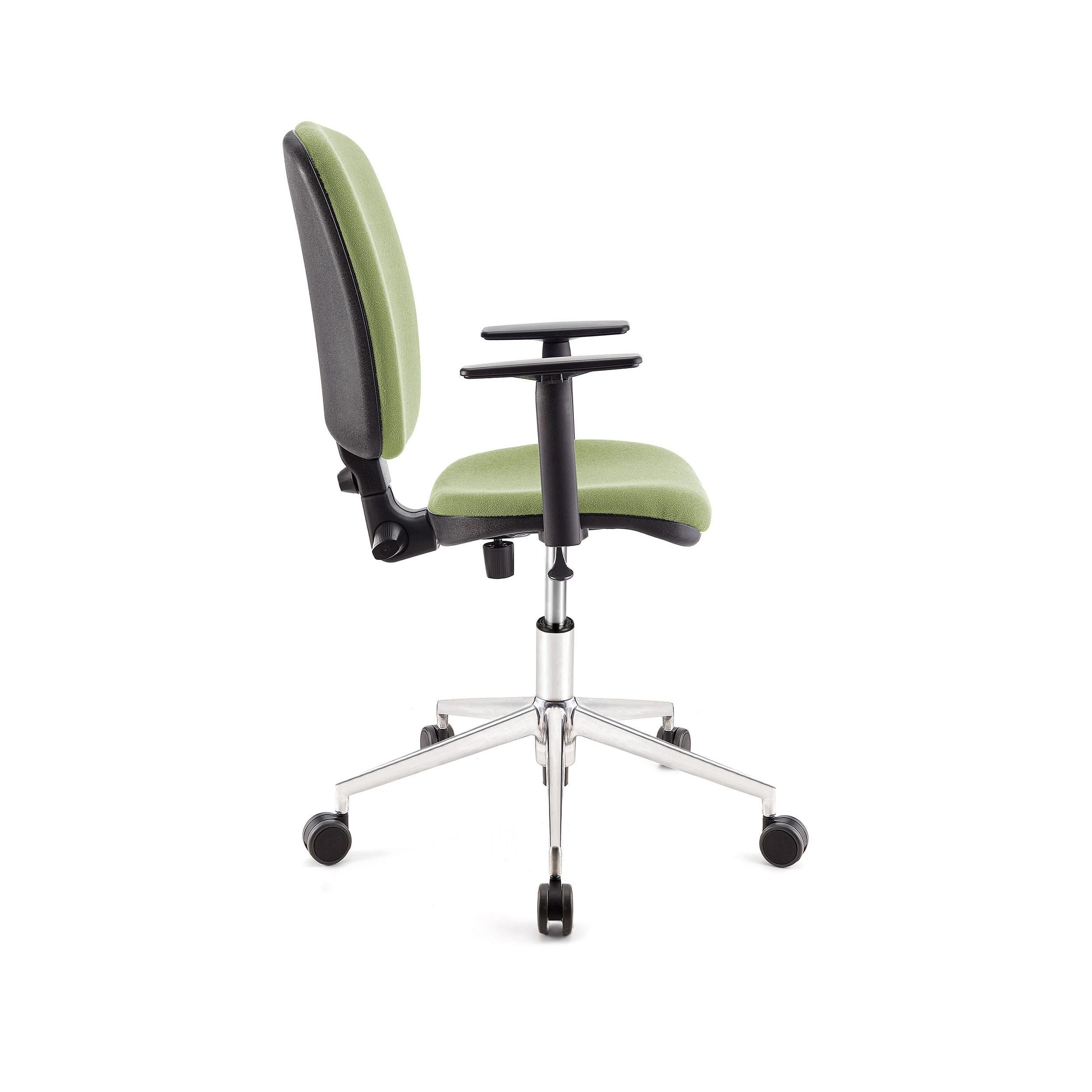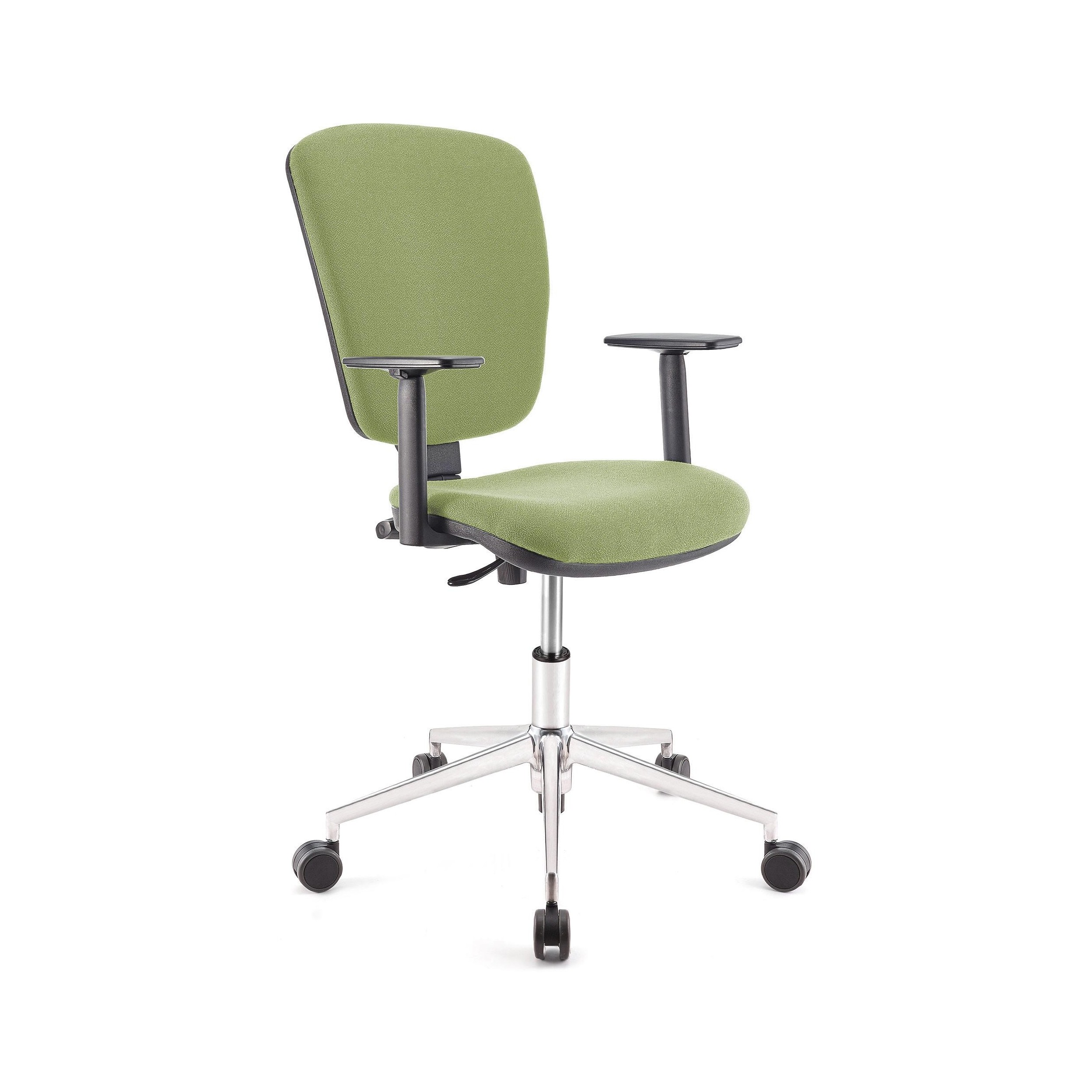 Silla UDINE, respaldo y asiento tela BALI verde, brazos ajustables, base metal