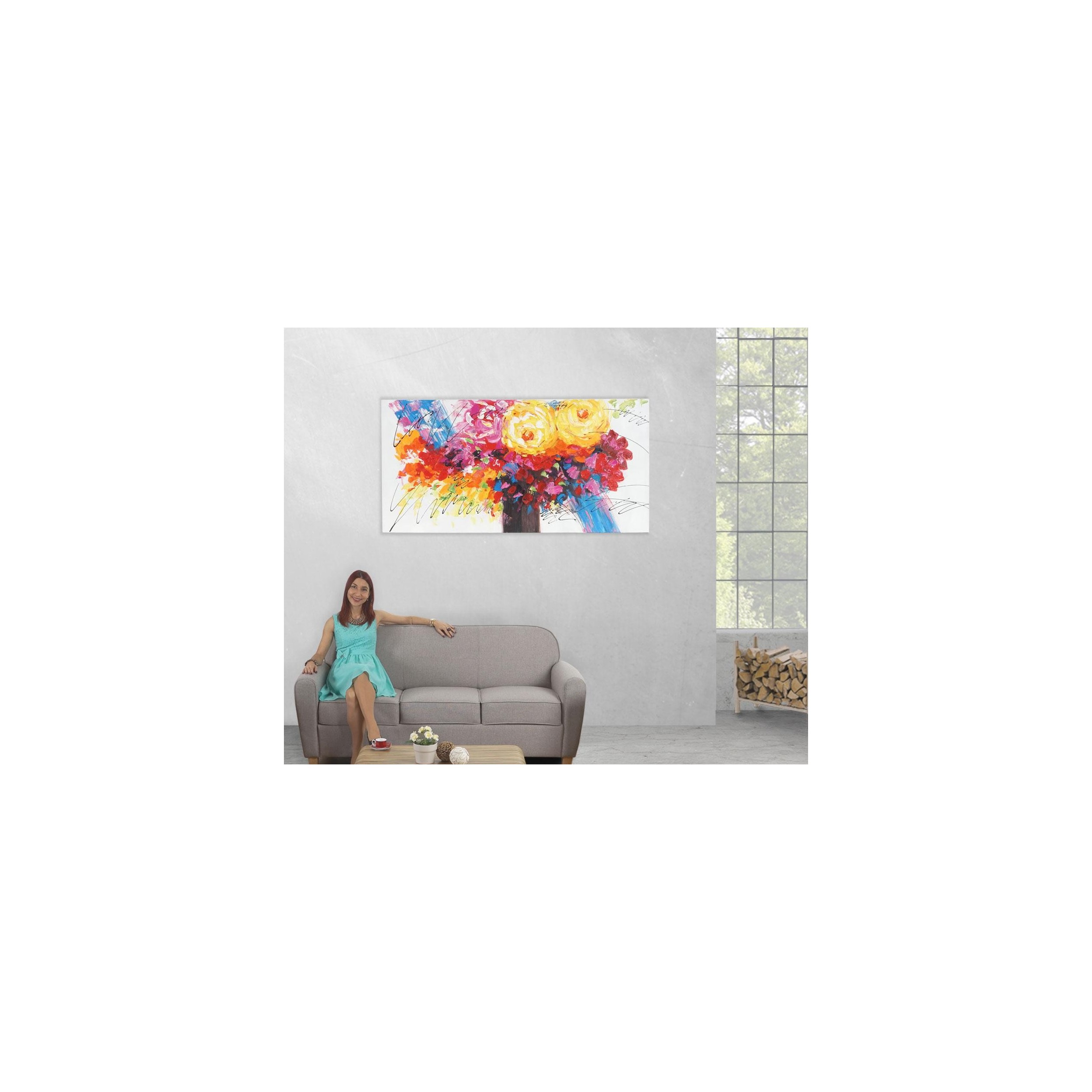 Cuadro al óleo FLORES, pintado a mano, 70x140 cm