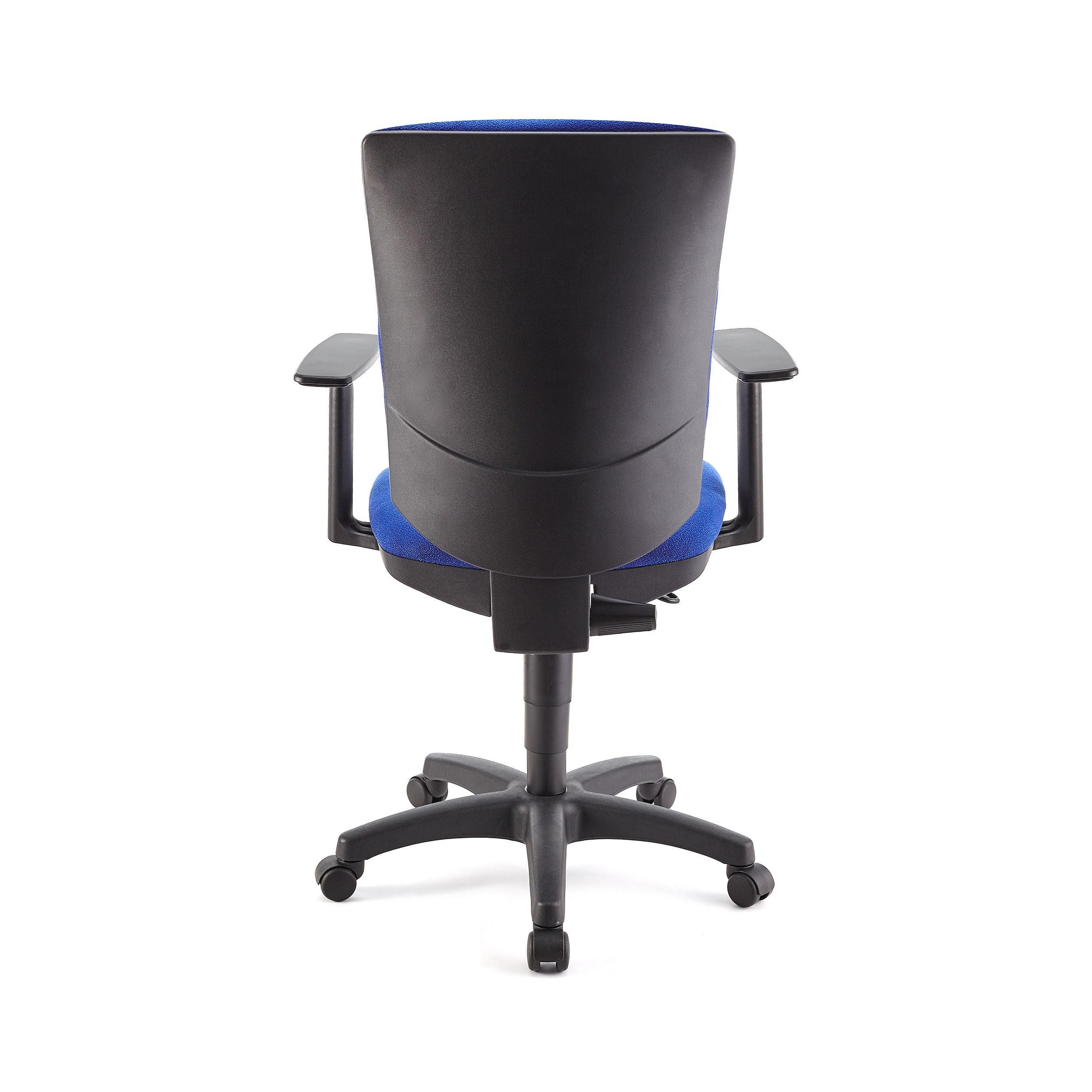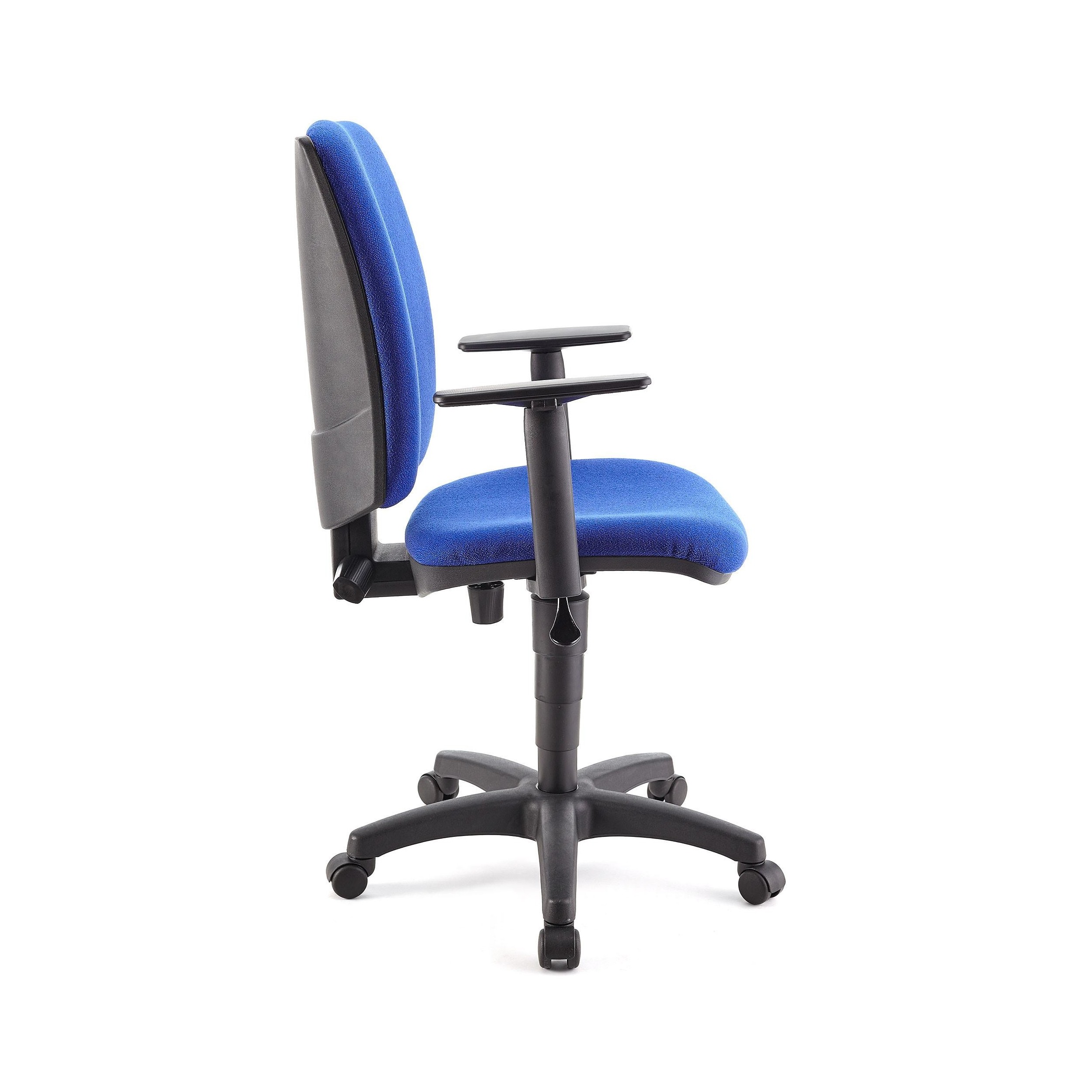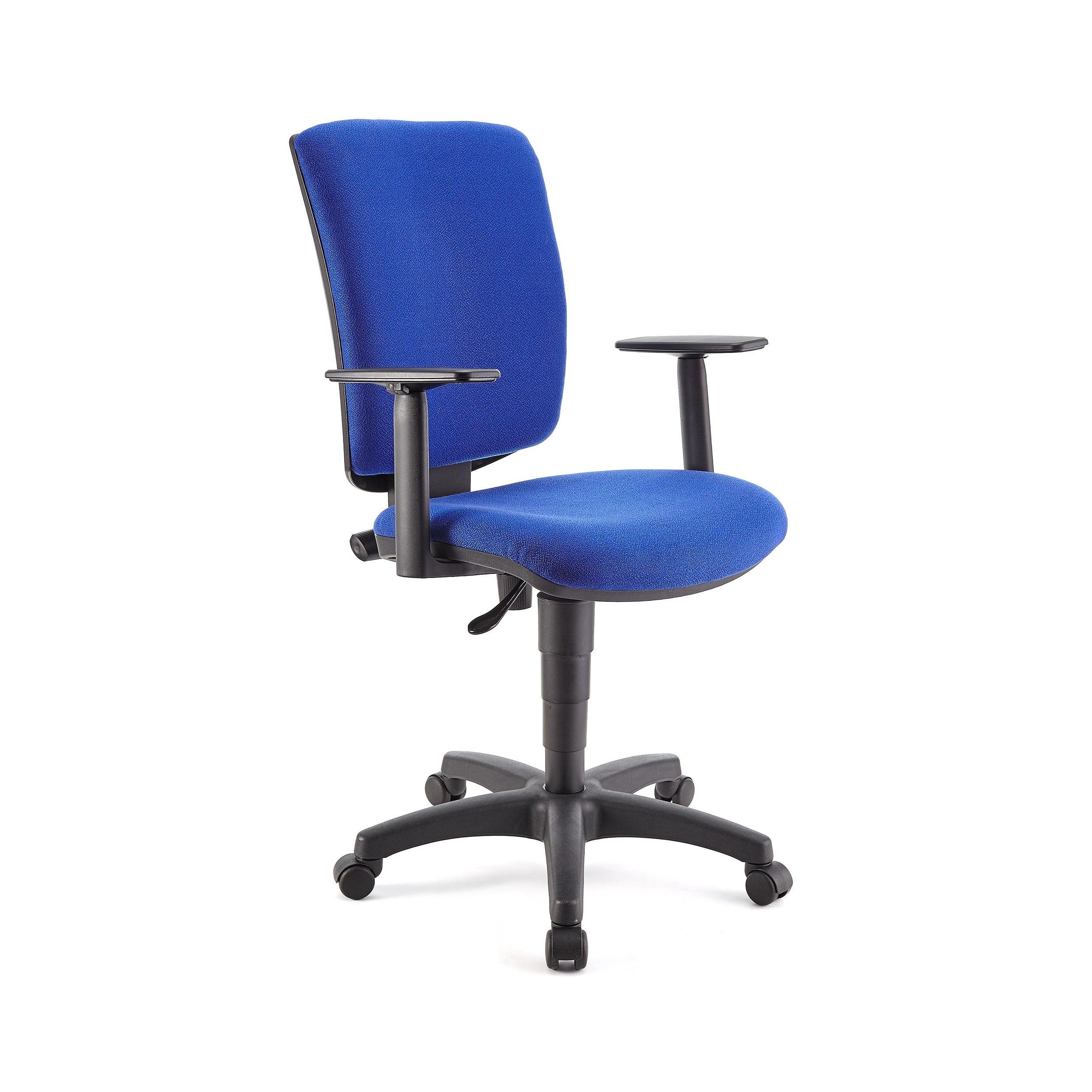Silla FLASH, respaldo y asiento tela azul, brazos ajustables, base plástico