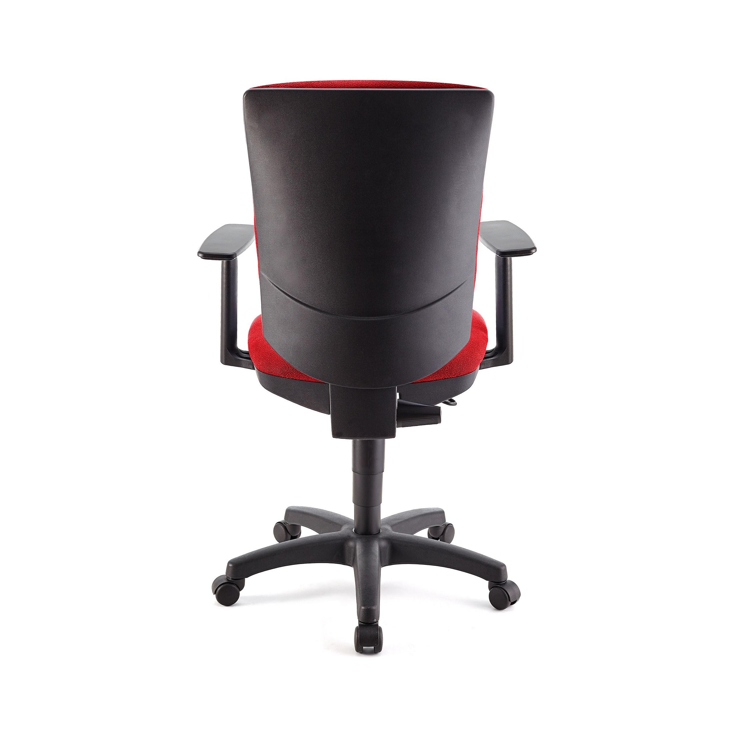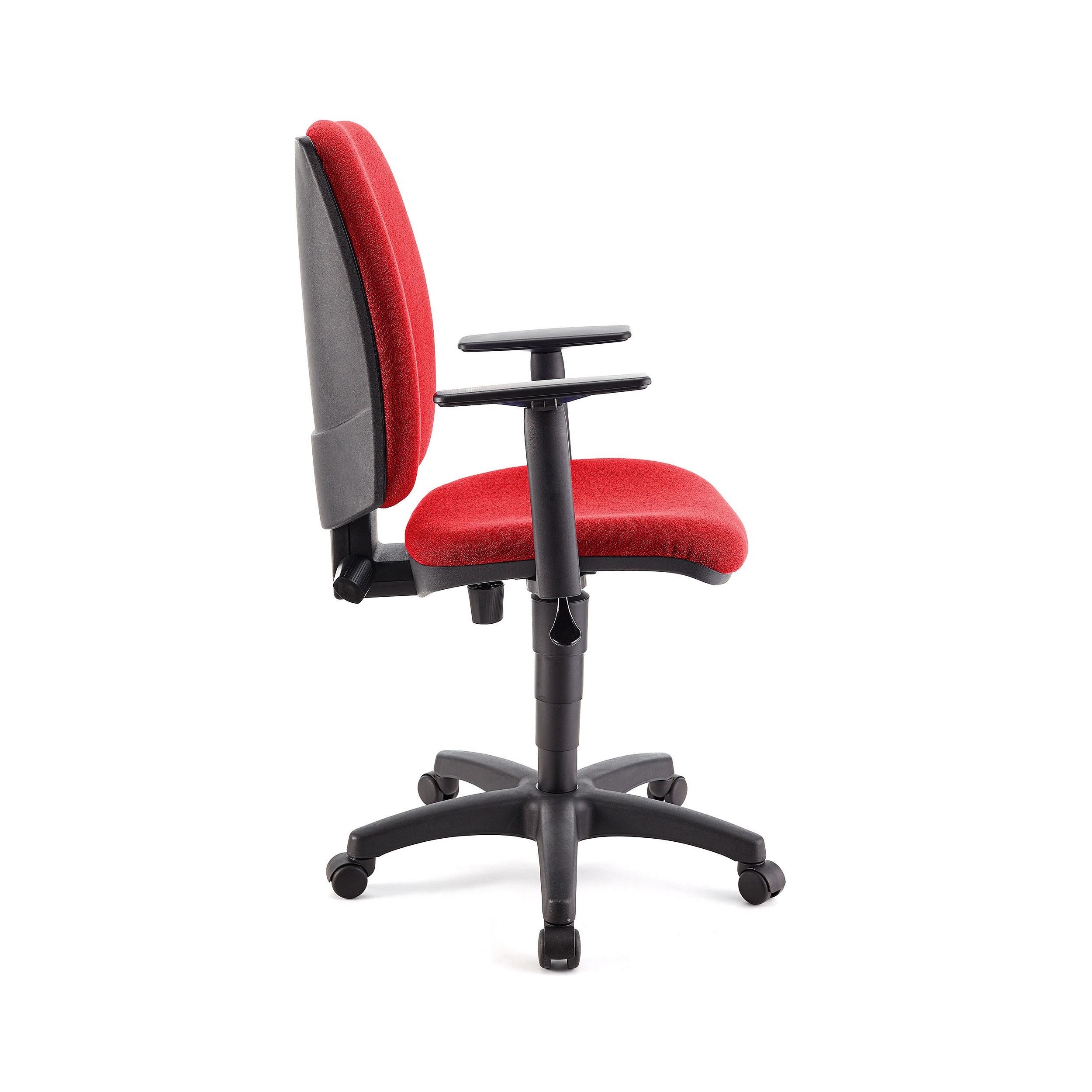 Silla FLASH, respaldo y asiento tela roja, brazos ajustables, base plástico