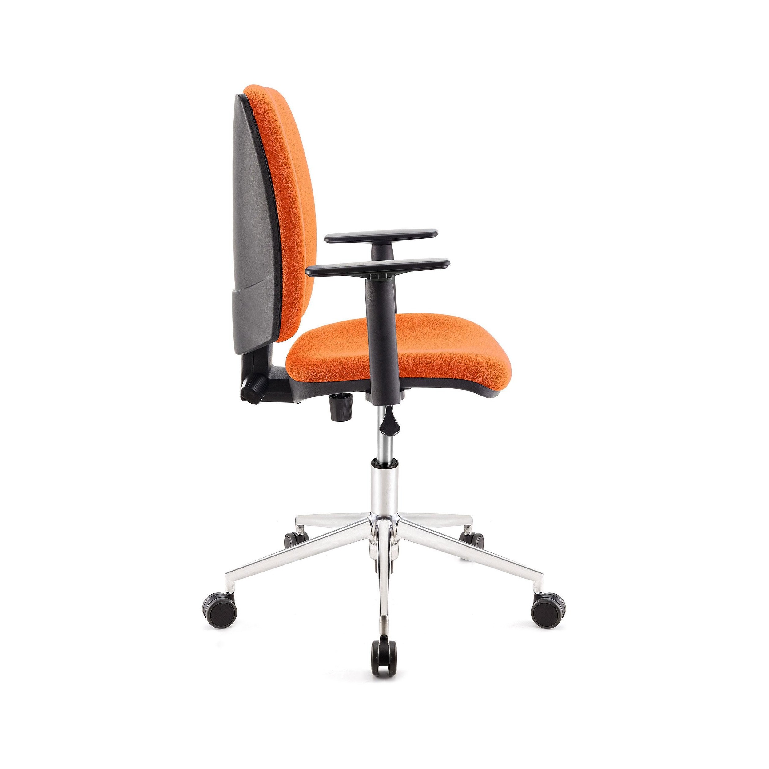Silla FLASH, respaldo y asiento tela naranja, brazos ajustables, base metal