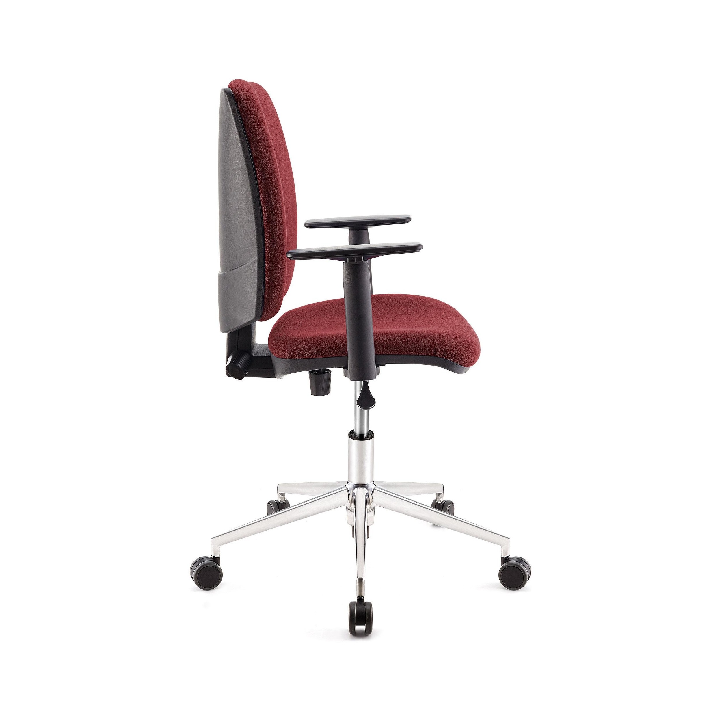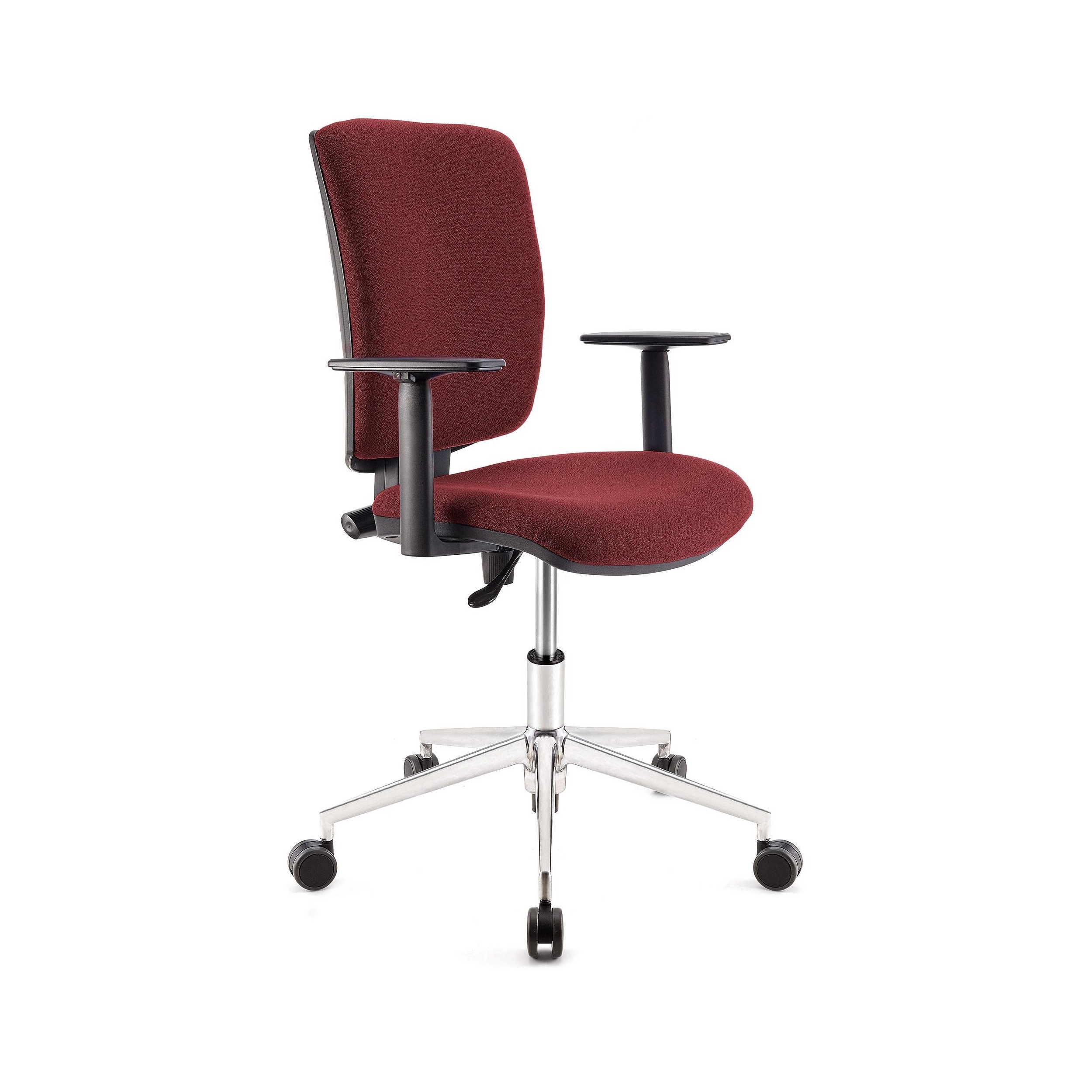 Silla FLASH, respaldo y asiento tela burdeos, brazos ajustables, base metal