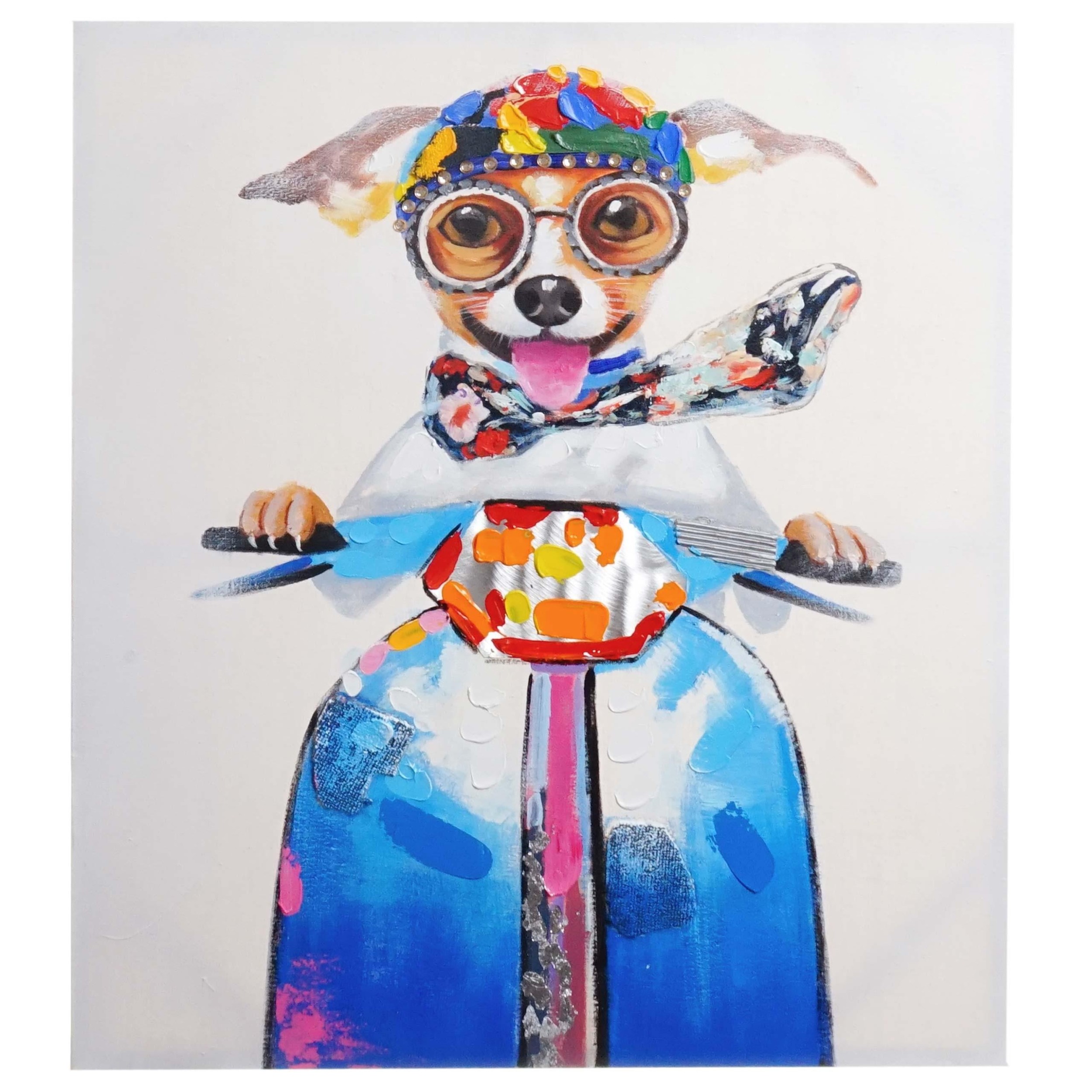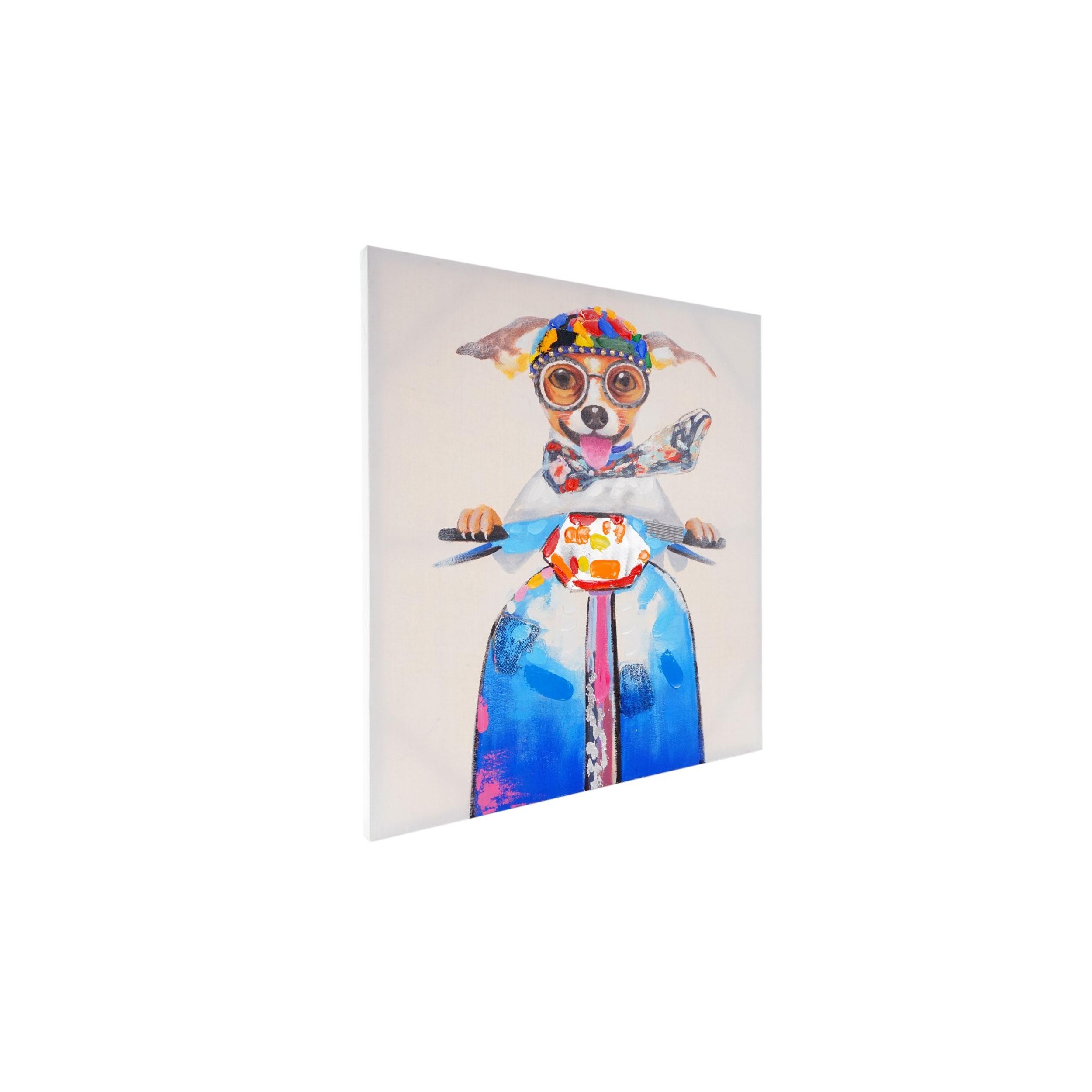 Cuadro al óleo PERRO MOTORISTA, pintado a mano, 100x90 cm