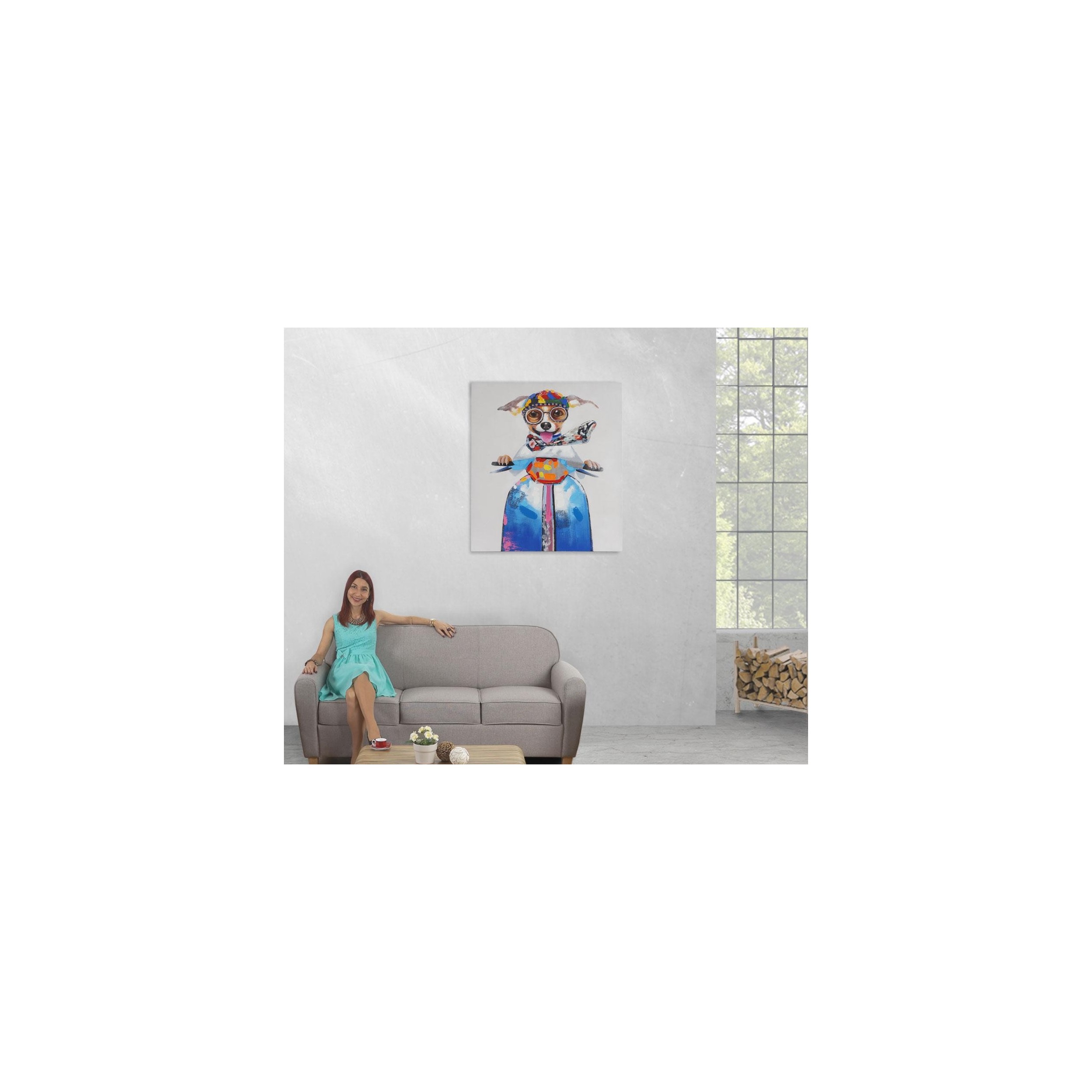 ¿Quieres aportar un toque singular y diferente a la estancia que quieres decorar? Si este es tu propósito, lo conseguirás con el cuadro modelo PERRO MOTORISTA, que aúna de una manera divertida el mundo animal con el motor. ¿Perro corredor, poco mordedor? Con el buen rollo que transmite, parece un can adorable.