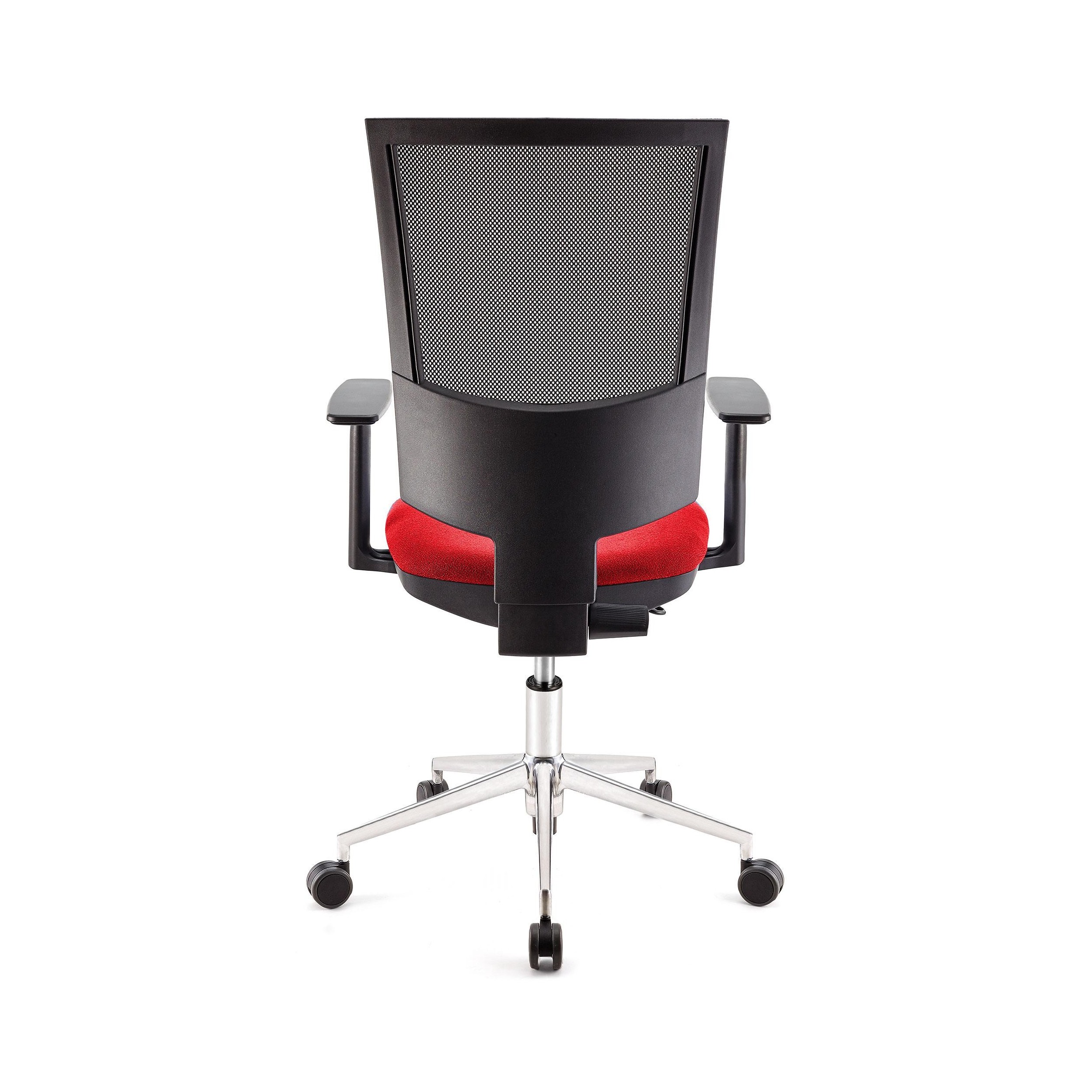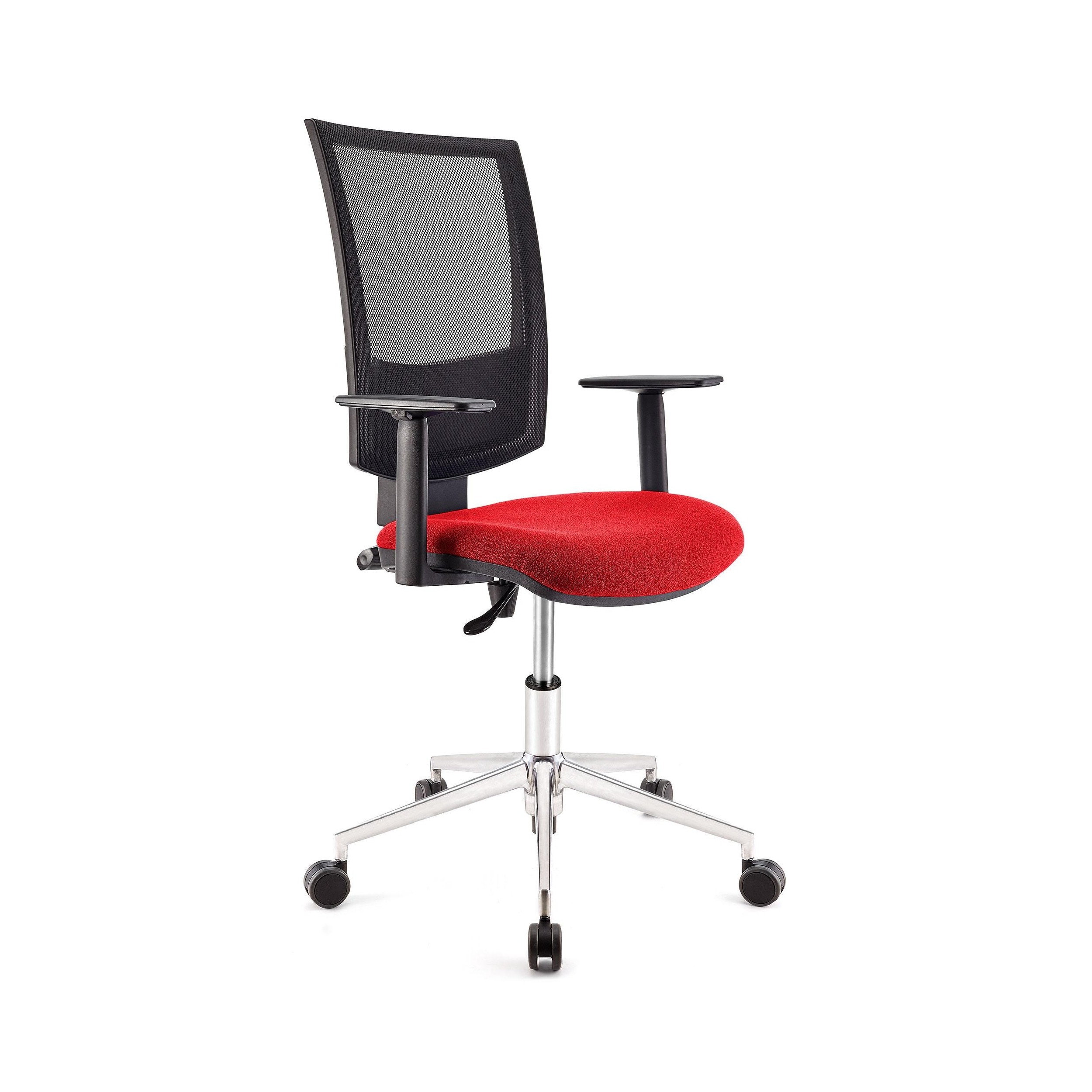 Silla FLASH, respaldo MALLA, asiento tela roja, brazos ajustables, base metal
