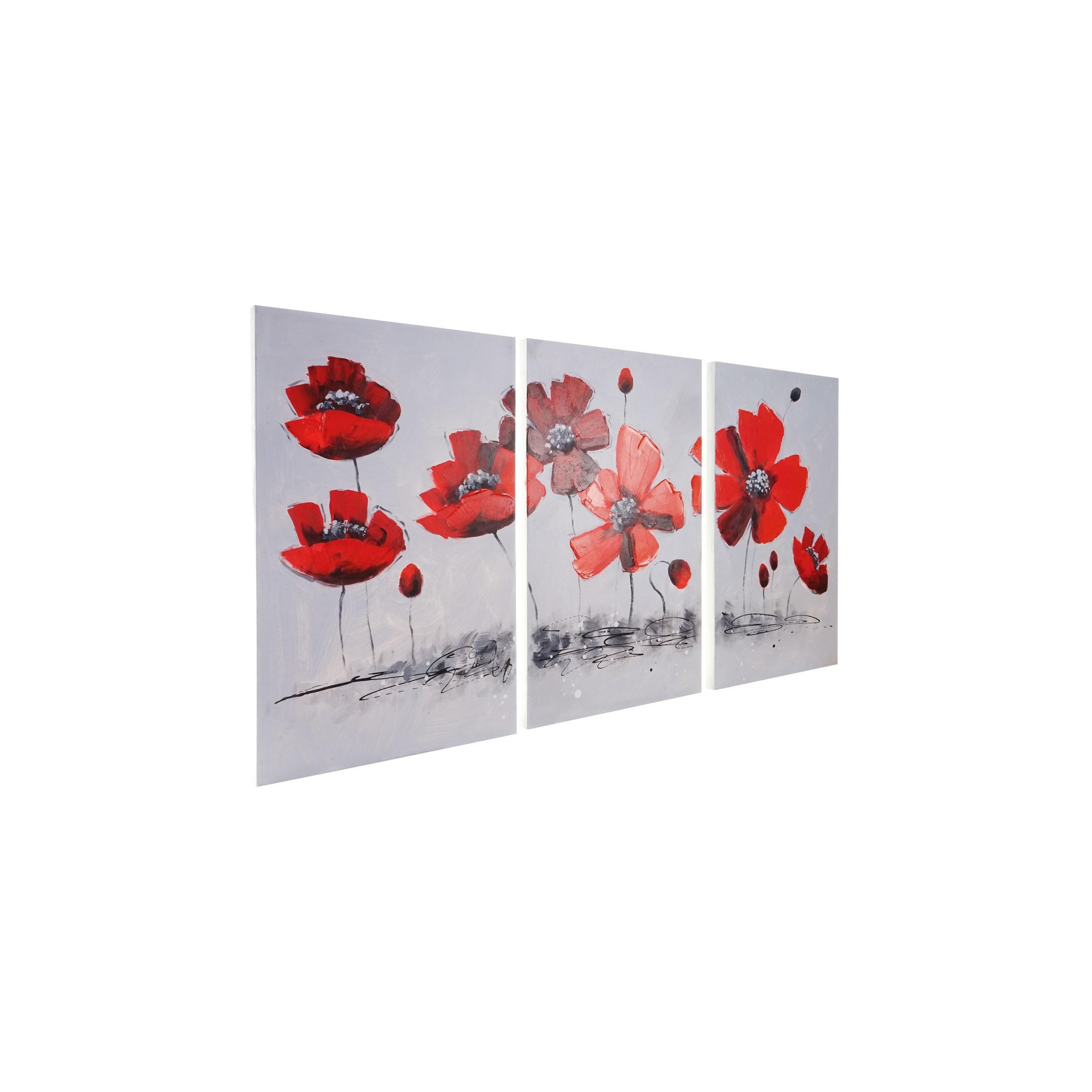 Cuadro tríptico al óleo FLORES ROJAS, pintado a mano, 90x165 cm