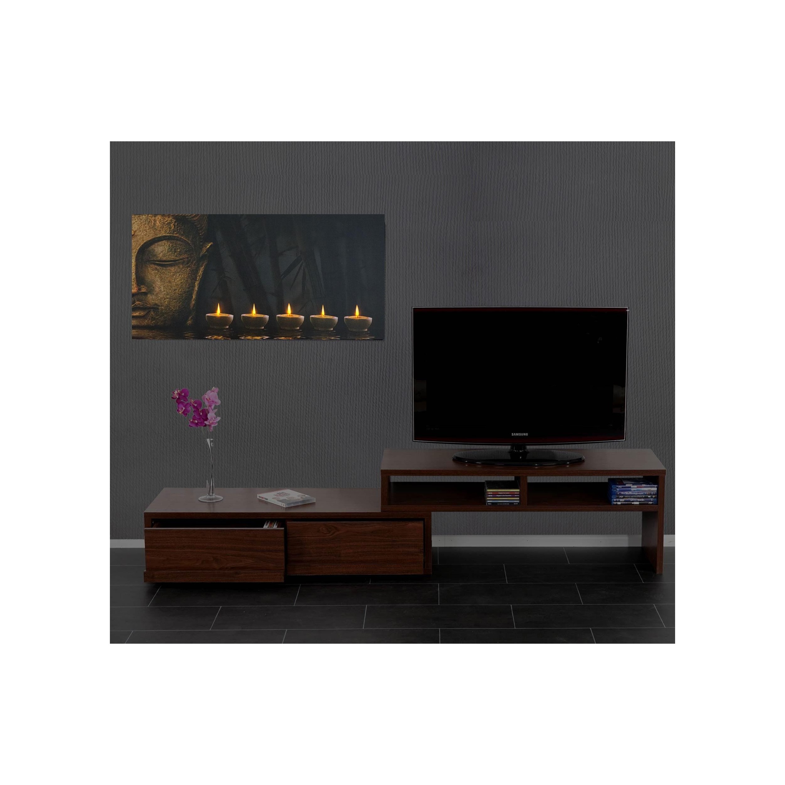 Calma, sosiego y un clima apropiado para la meditación es lo que ofrece el cuadro modelo LED BUDDHA, con esas 5 velas que cobran vida al iluminarse.