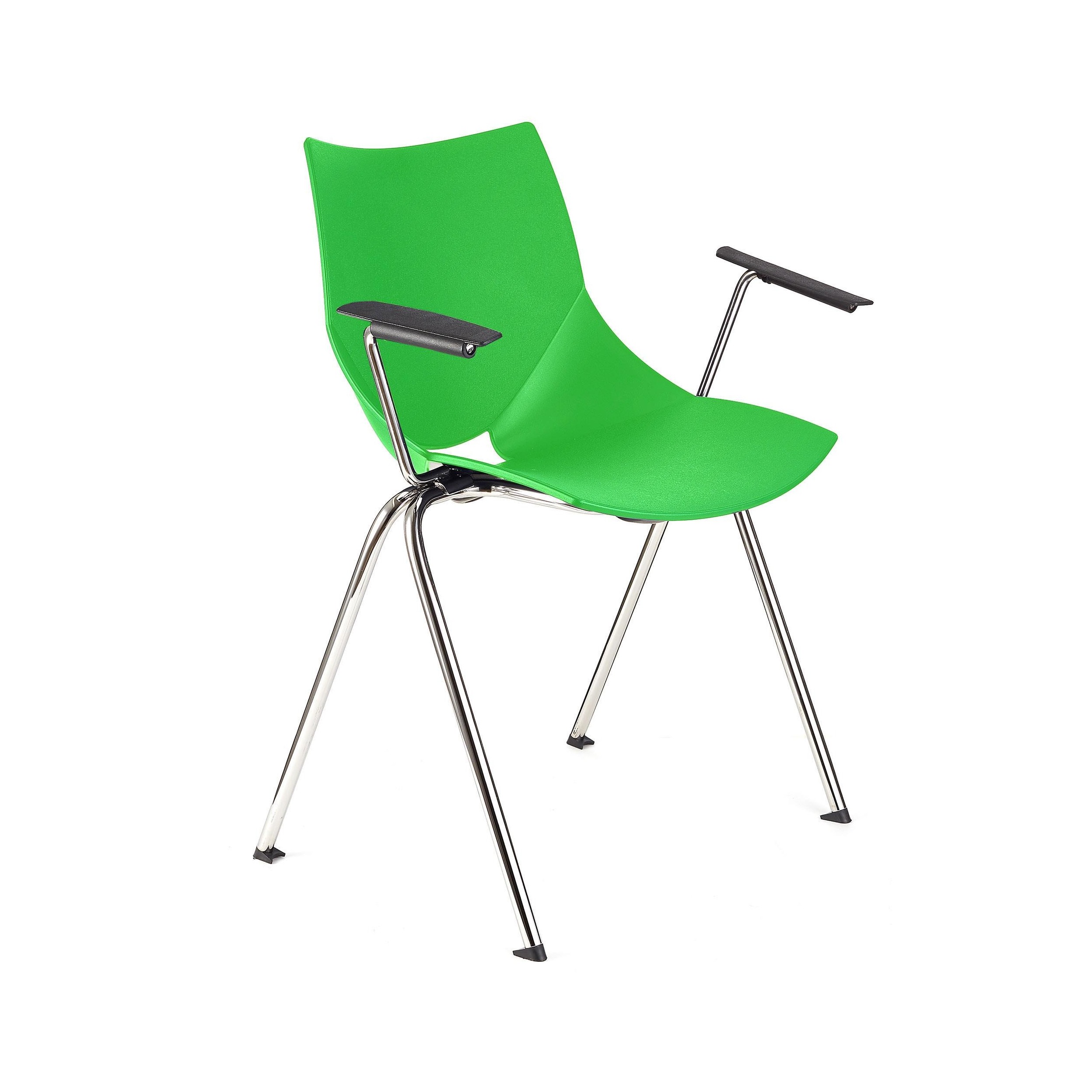(x5) Confidente SHELL, CON BRAZOS, plástico verde, patas cromadas