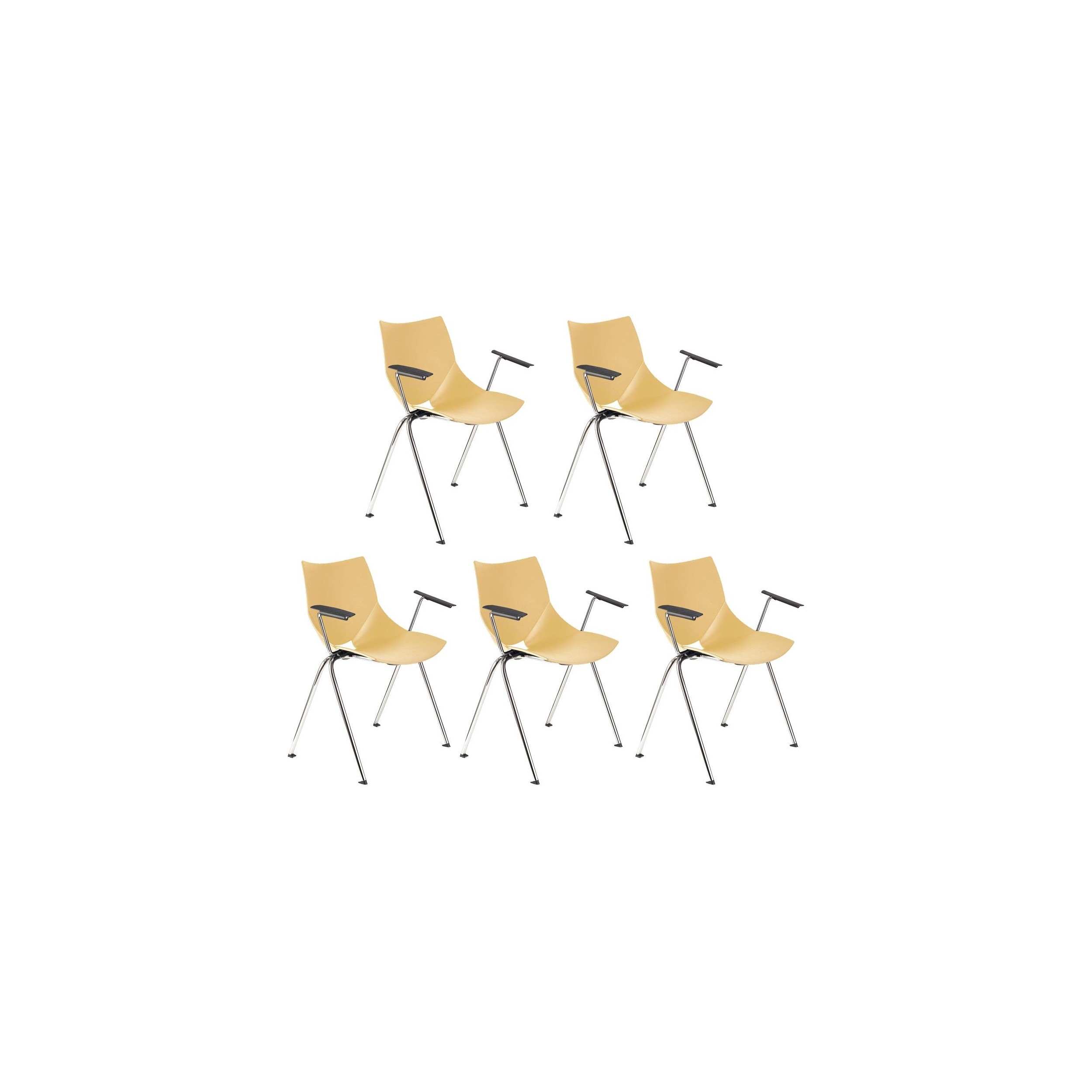 (x5) Confidente SHELL, CON BRAZOS, plástico beige, patas cromadas