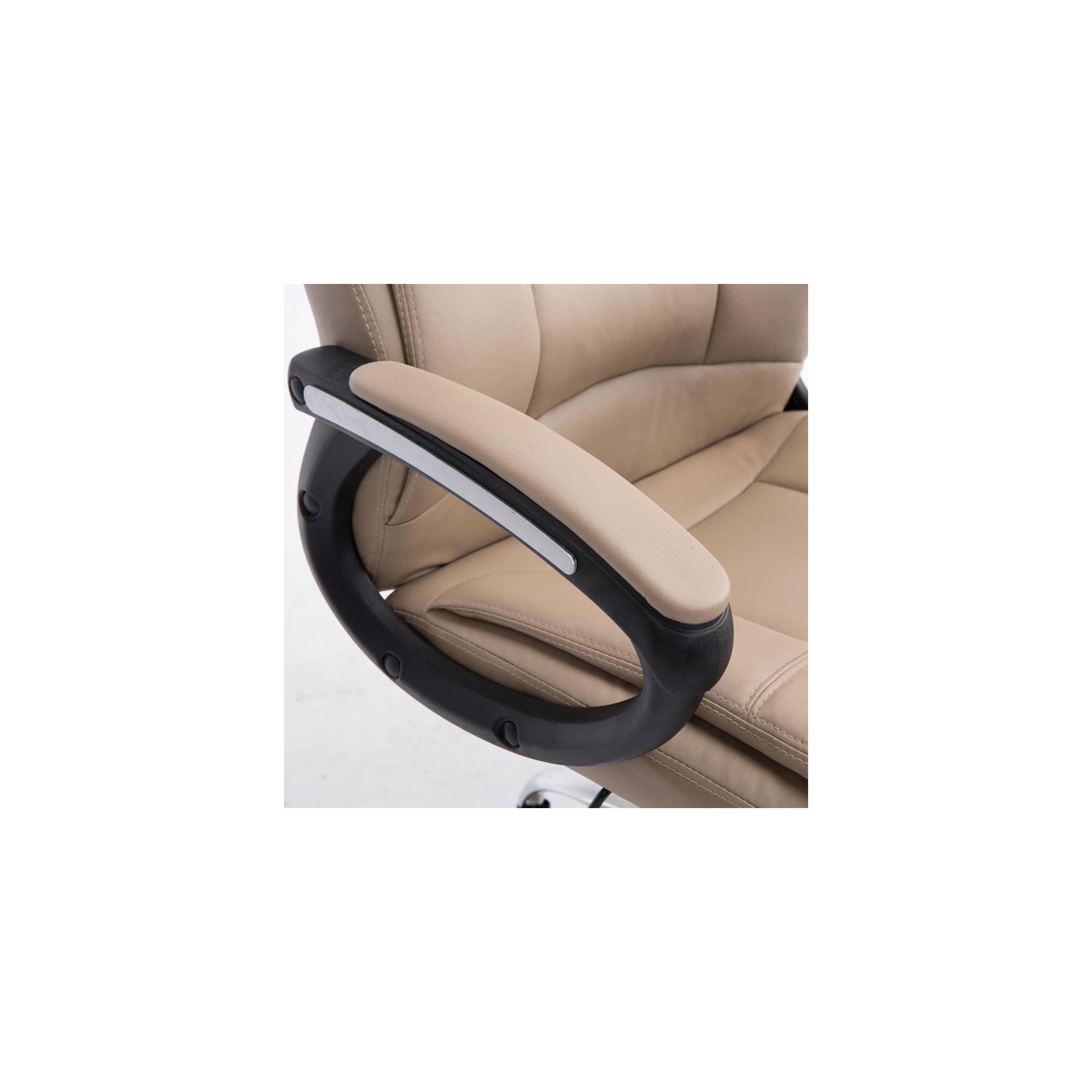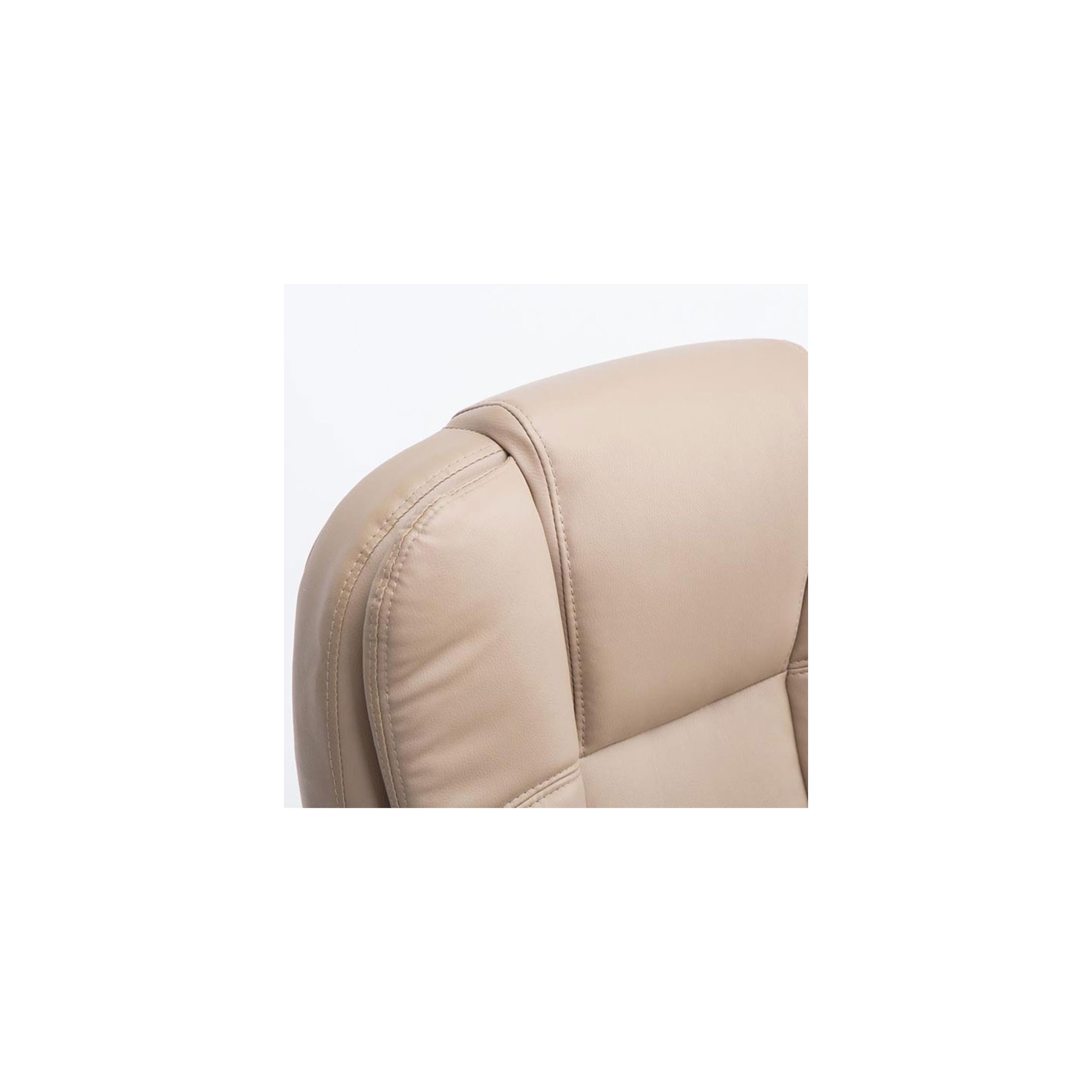 Está tapizado en piel sintética de gran calidad y acabado, destacando por su resistencia y fácil limpieza. Además las costuras dan un toque de distinción que hacen de este modelo aún más especial. Los reposabrazos están también tapizados en piel y cuentan con exclusivos detalles de acabado.
