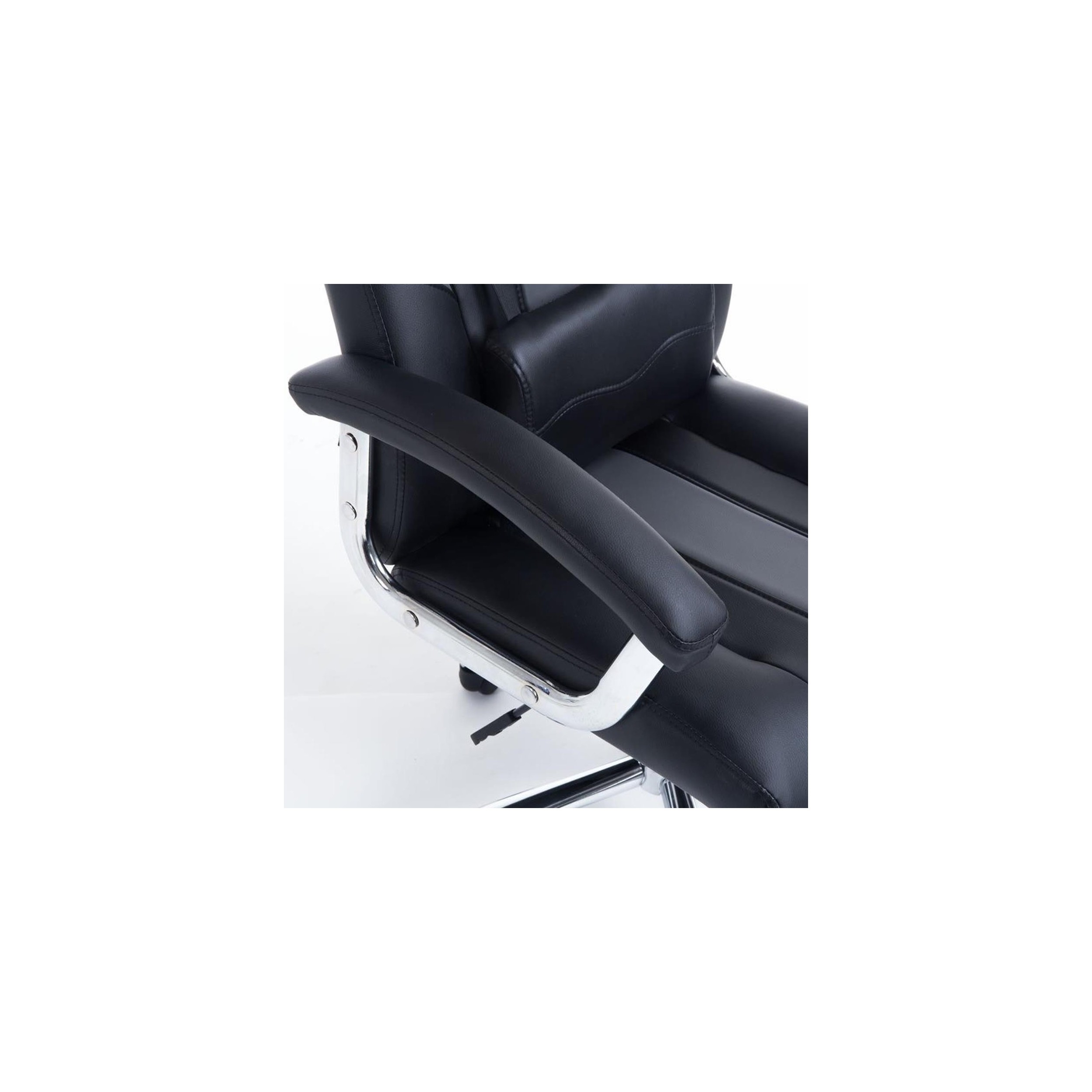 La silla está tapizada en piel sintética de gran calidad y muy resistente. Se trata de un tapizado muy agradable al tacto y con un atractivo color en contraste y elegantes costuras. Además la limpieza y cuidado es muy sencillo ya que se limpia fácilmente con un paño húmedo.
