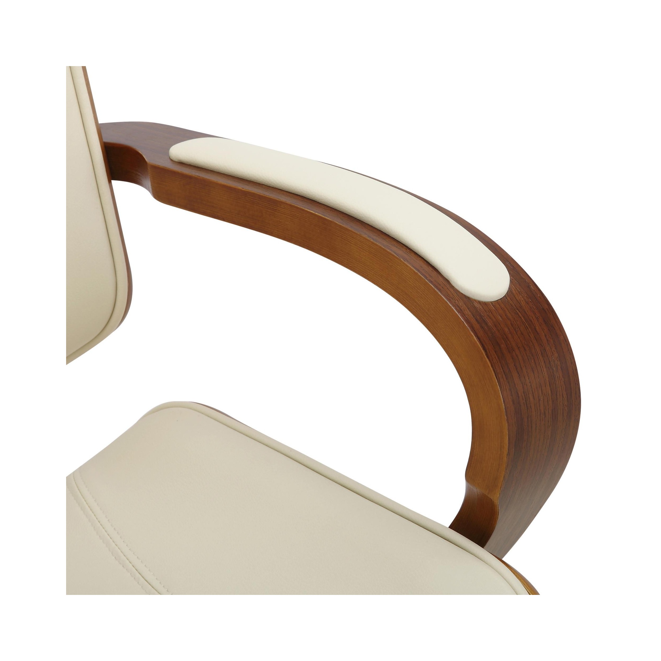 Los materiales elegidos para la fabricación de esta silla son de primera calidad. Tanto su estructura de madera como su base metálica son muy robustas y resistentes. Además, está tapizada en piel sintética de gran calidad con costuras vistas que destaca por su fácil cuidado y limpieza.