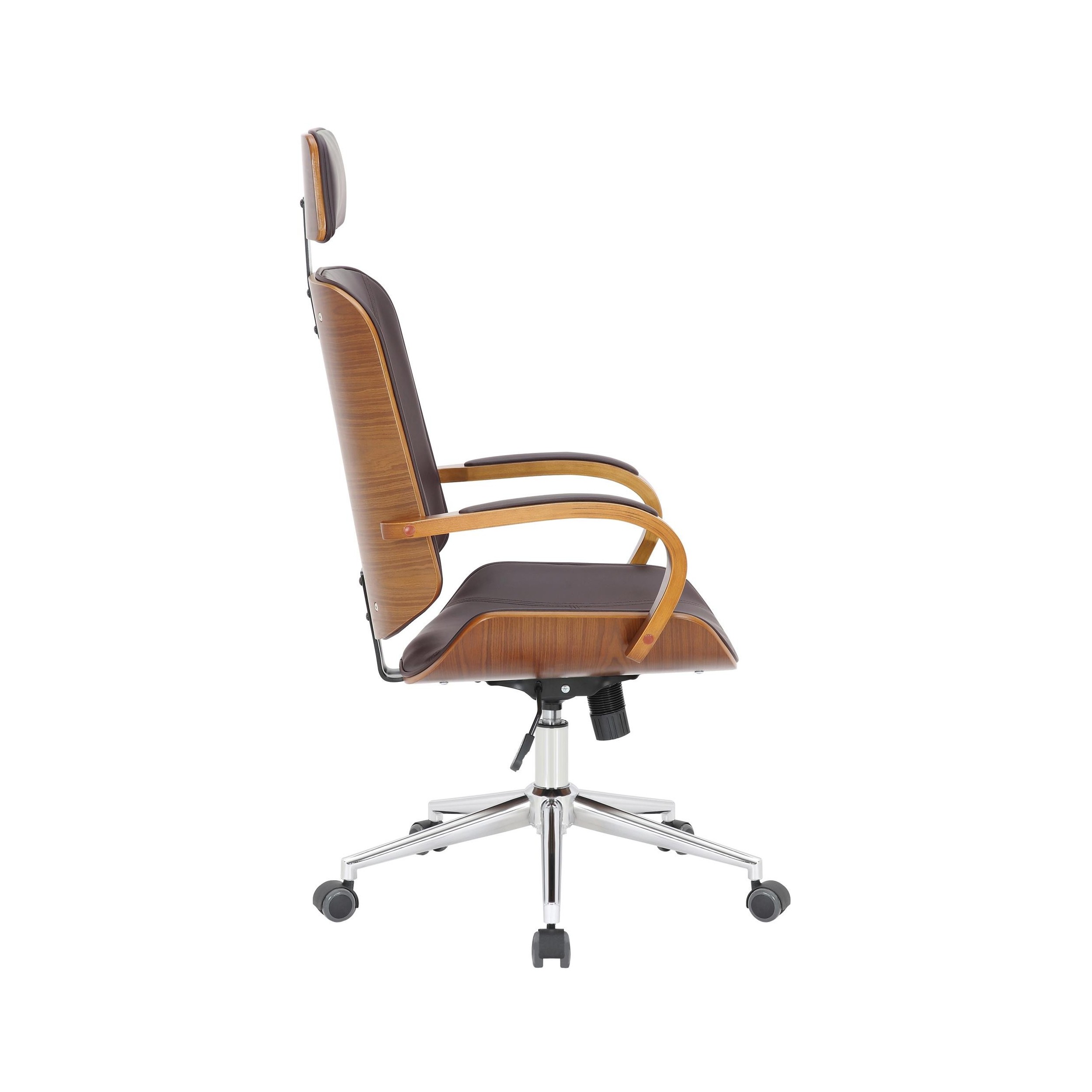 Silla de Oficina JUTTA, Gran Acolchado, Elegante Diseño en Madera y Piel color Negro