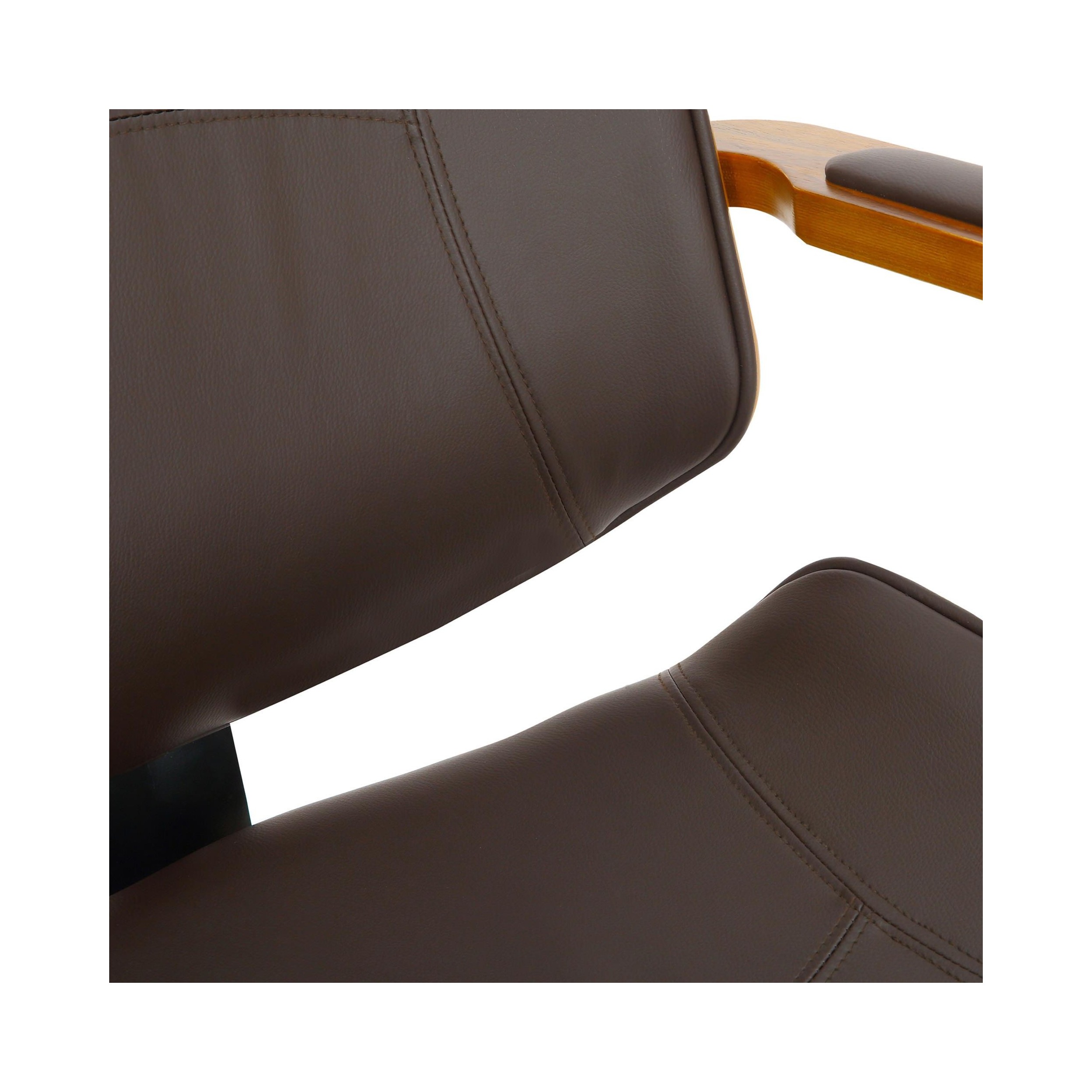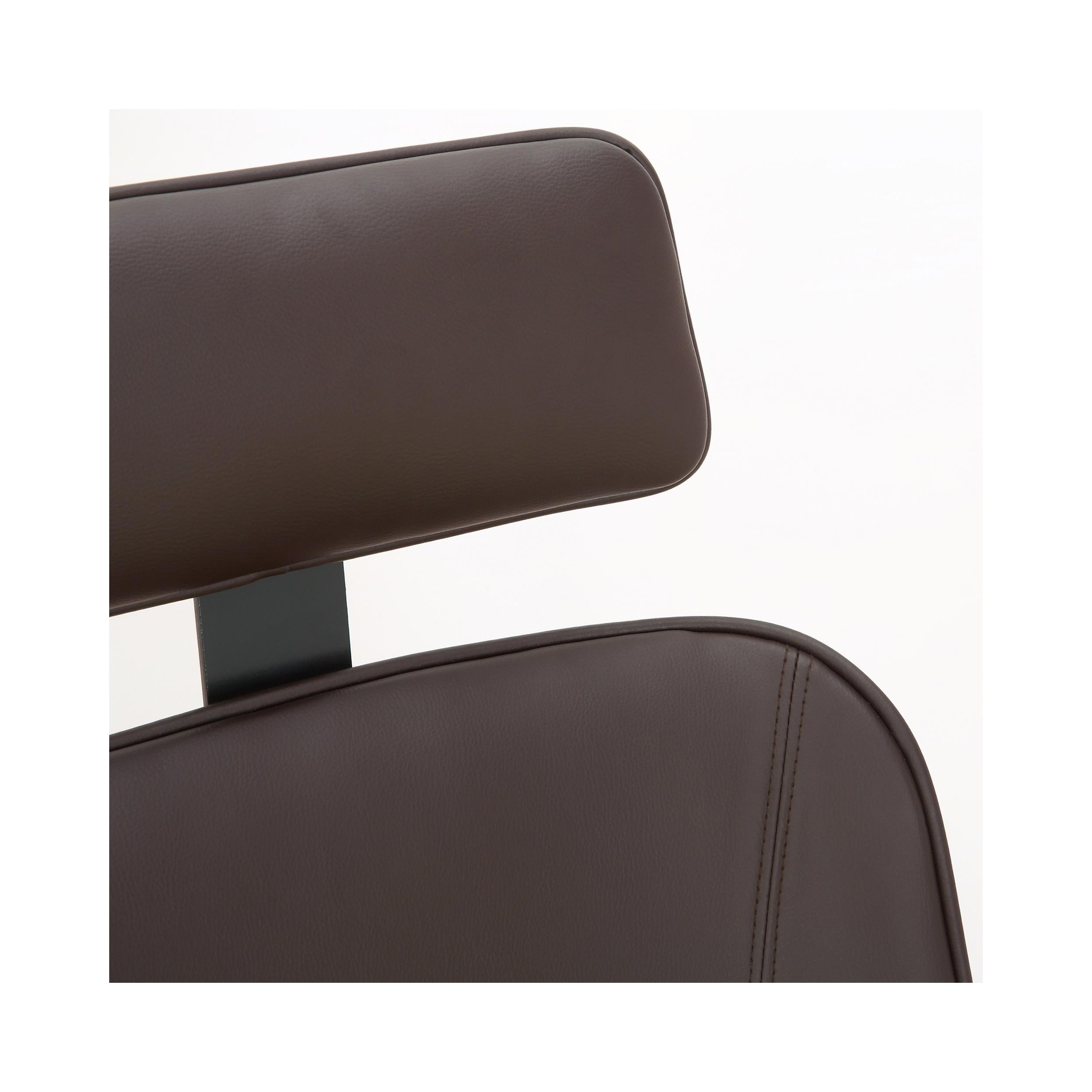 Los materiales elegidos para la fabricación de esta silla son de primera calidad. Tanto su estructura de madera como su base metálica son muy robustas y resistentes. Además, está tapizada en piel sintética de gran calidad con costuras vistas que destaca por su fácil cuidado y limpieza.