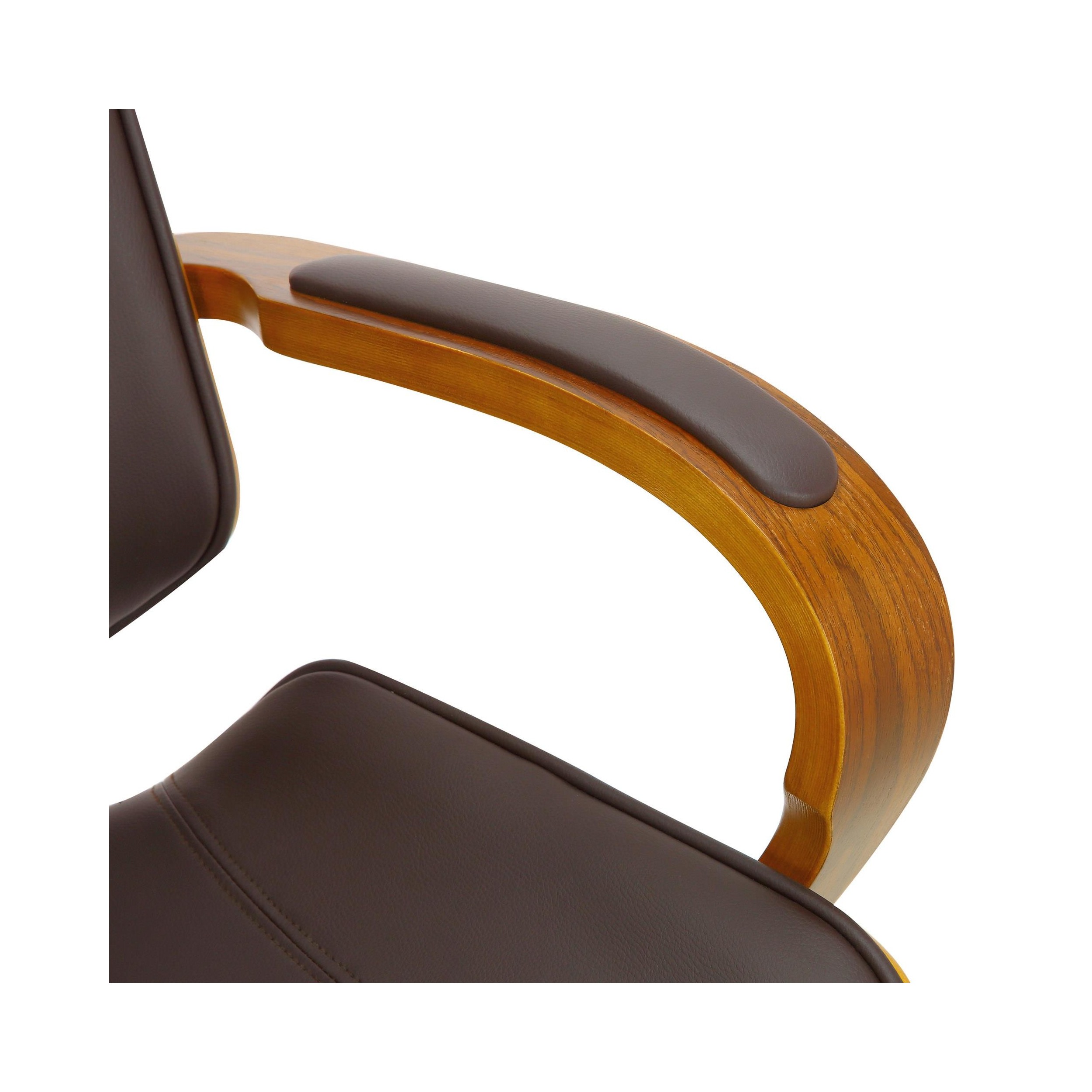 Espectacular silla de diseño JUTTA con revestimiento de madera color nogal y tapizada en piel sintética de gran calidad disponible en varios colores.
