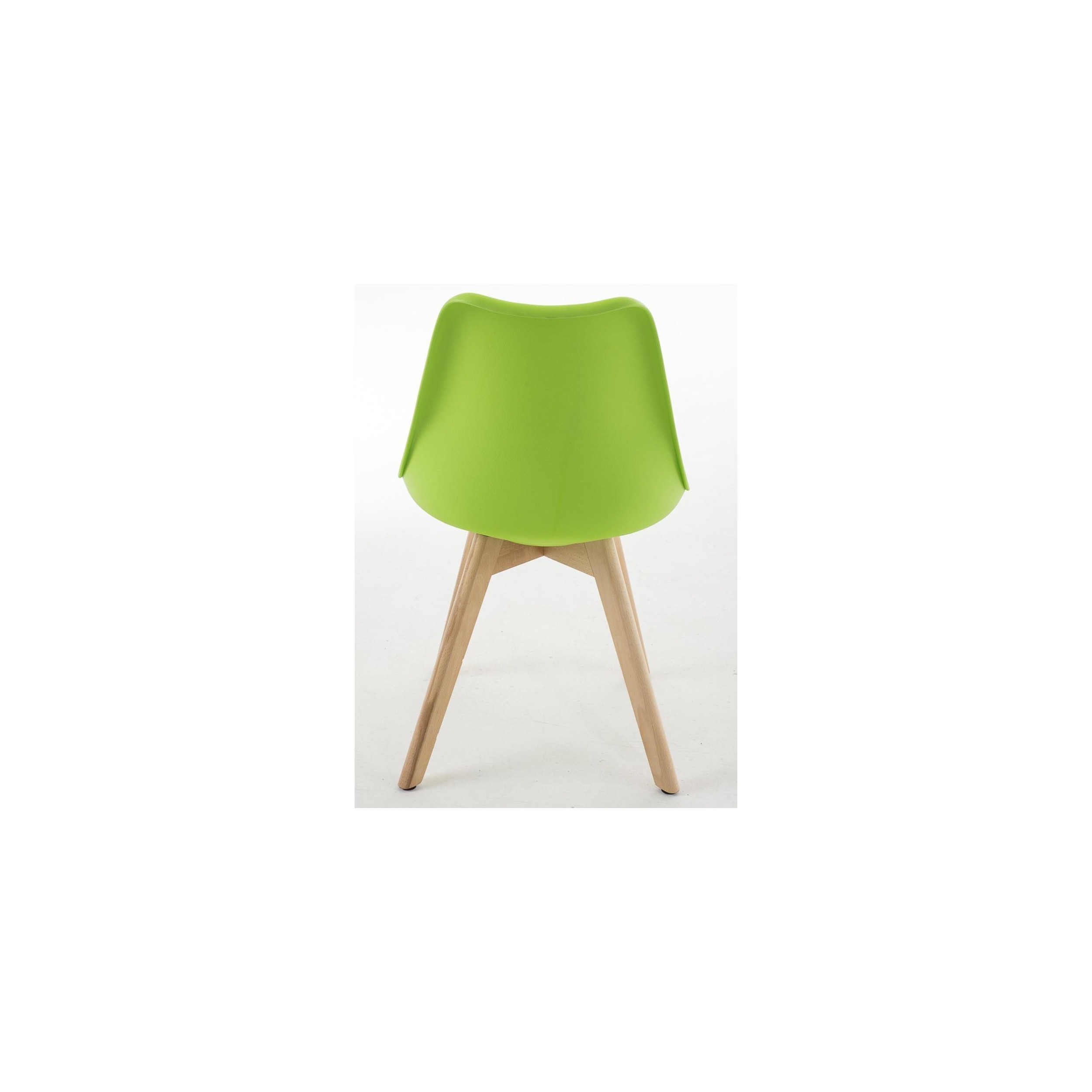 Las patas son de madera maciza y del asiento y respaldo en plastico muy resistente formado un robusto armazón. Como podrás ver en las fotografías, el original acabado redondeado de las patas es muy bonito y queda perfectamente integrado en el diseño de la silla.