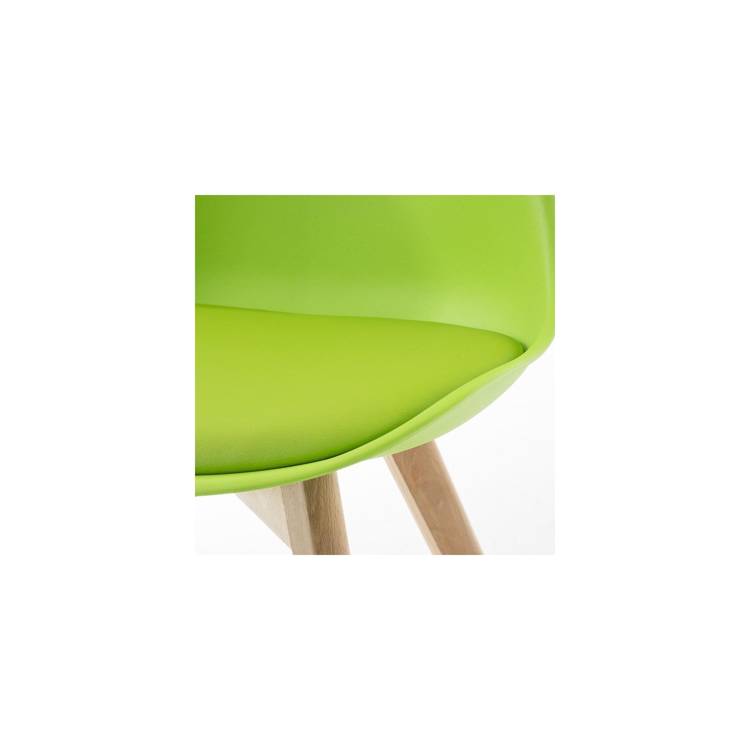 También cabe destacar que se trata de una silla de excepcional calidad, ya que los materiales con los que fabrica son de primera categoría. Sus patas de madera maciza de haya en color claro son muy robustas y resistentes, con un diseño y estilo muy peculiar. La carcasa de asiento y respaldo es de plástico sólido, formando un robusto armazón. El asiento está tapizado en piel sintética de la mejor calidad. En definitiva, es una silla concebida para durar muchos años.